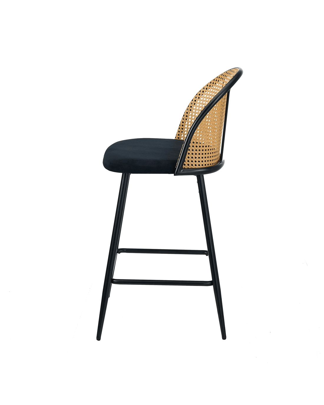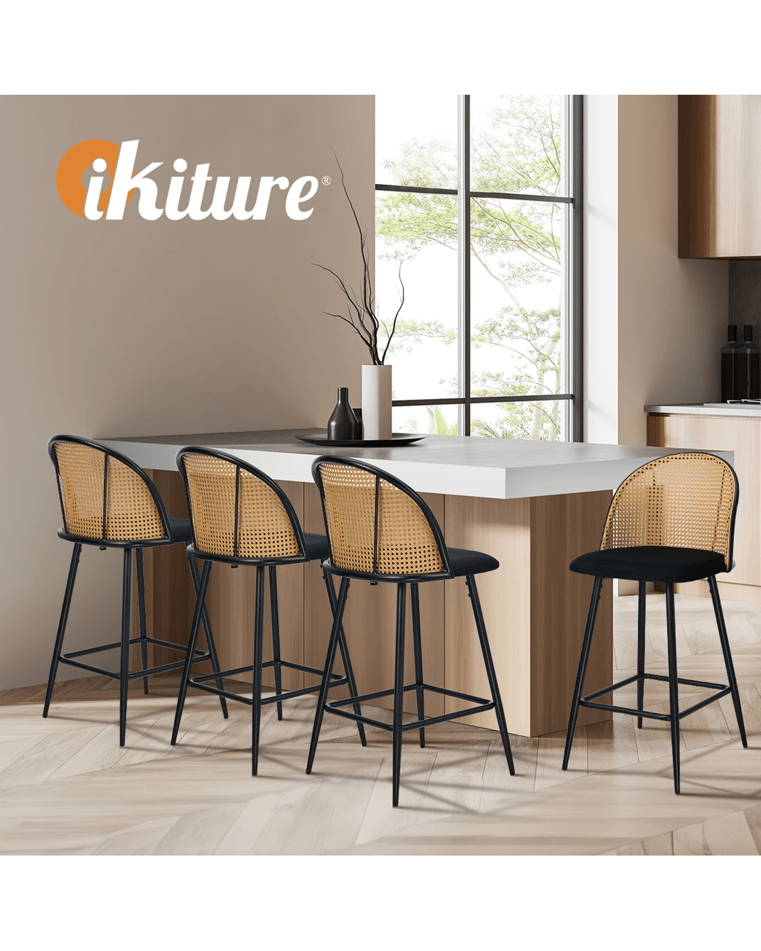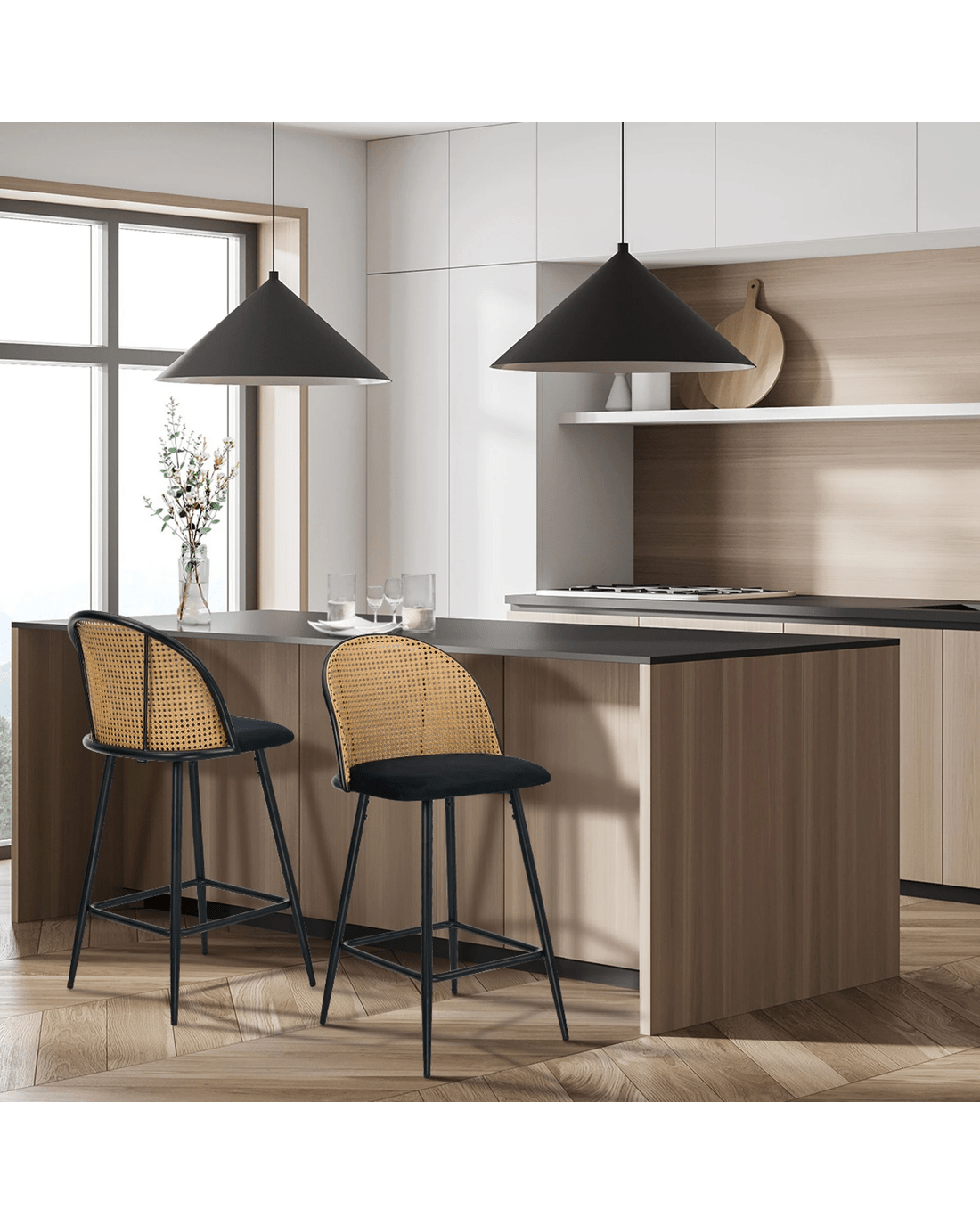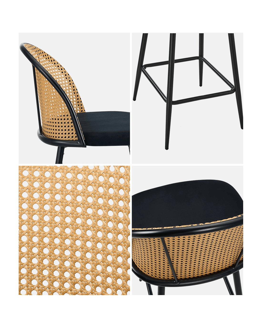 Sold by Kamprad's Oikos 1943Oikiture Bar Stools Kitchen Counter Stool Rattan Dining Chair Velvet X2 - Black