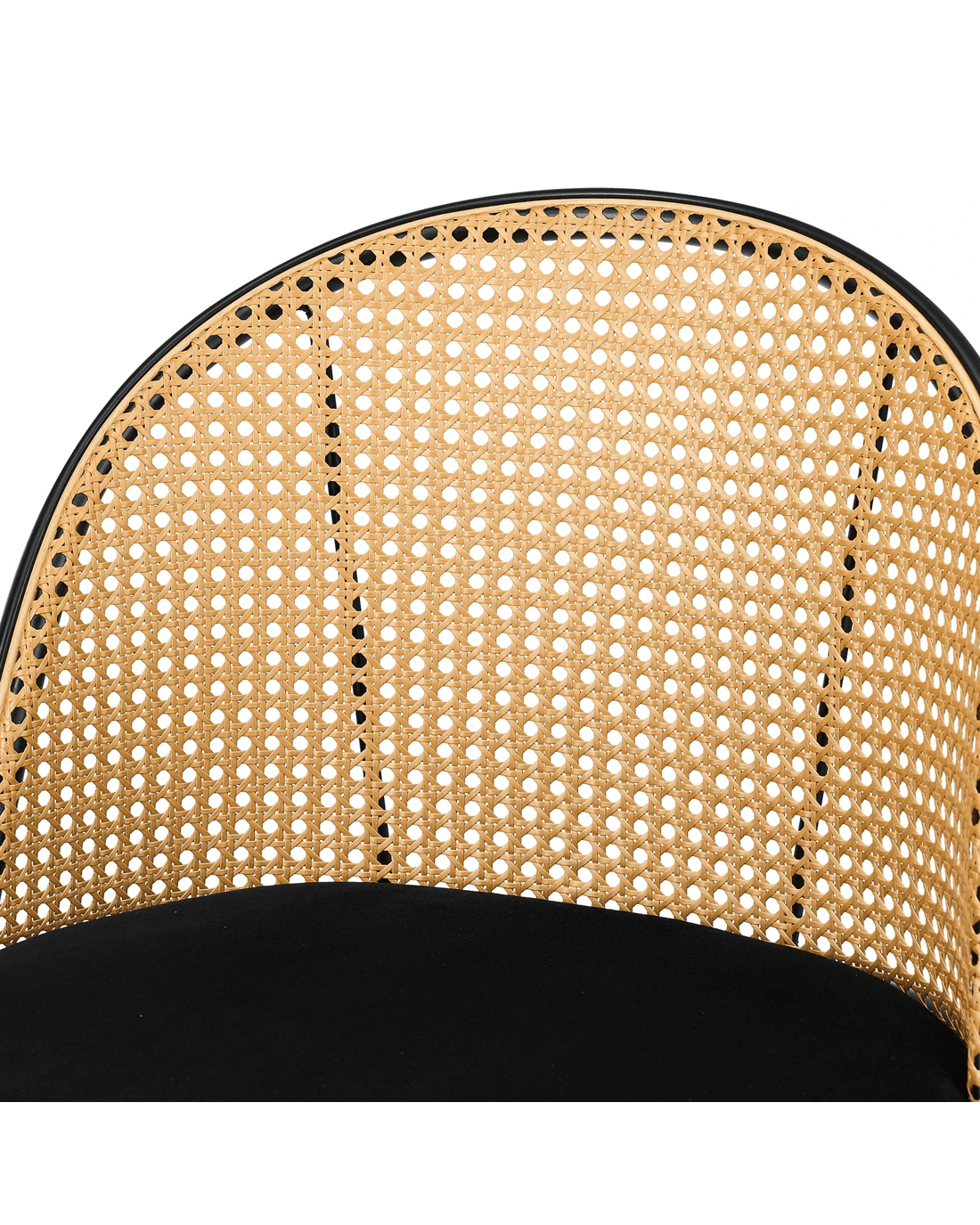 Appreciating the finer things in life, the cosy velvet fabric upholstered seat is meticulously finished with near-flawless workmanship and padded with rich comfort. The finesse is in all the details. You will also appreciate the wide seat and supportive PU rattan backrest while you sit back and chill out with your favourite beverage.