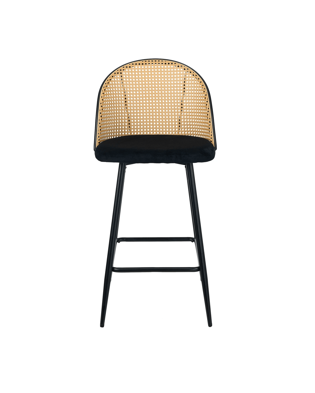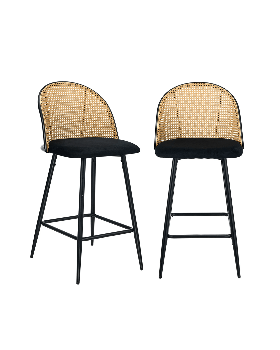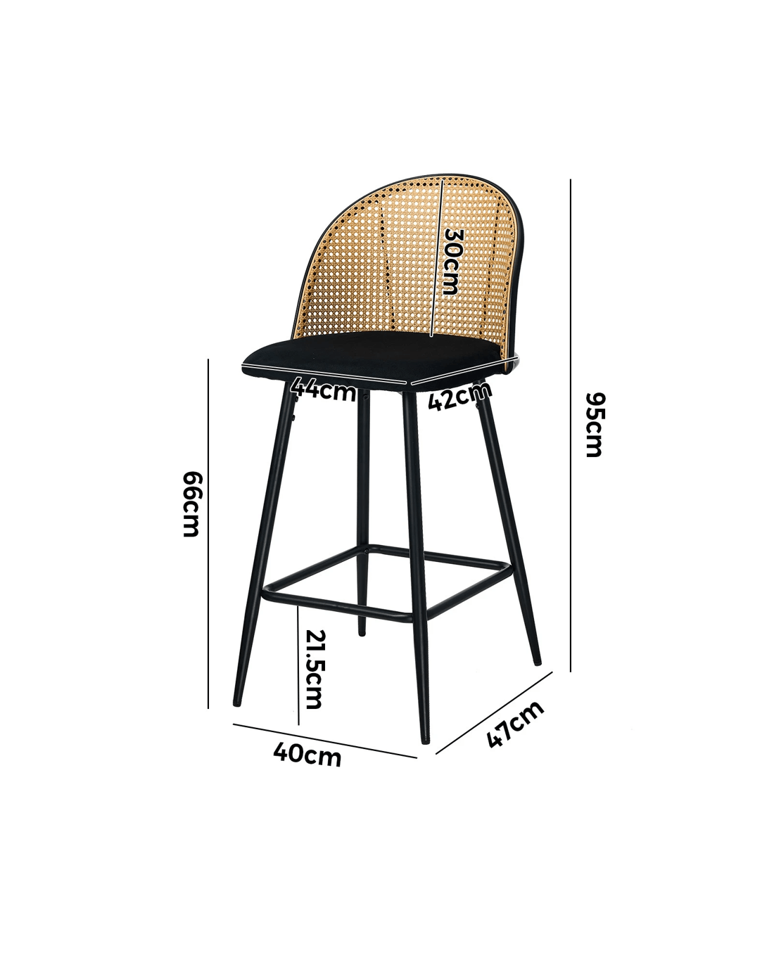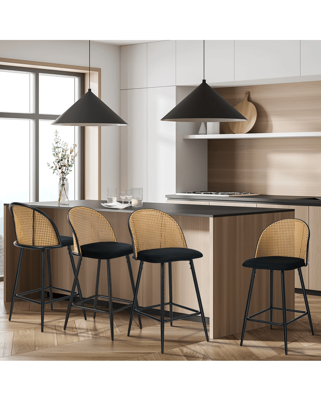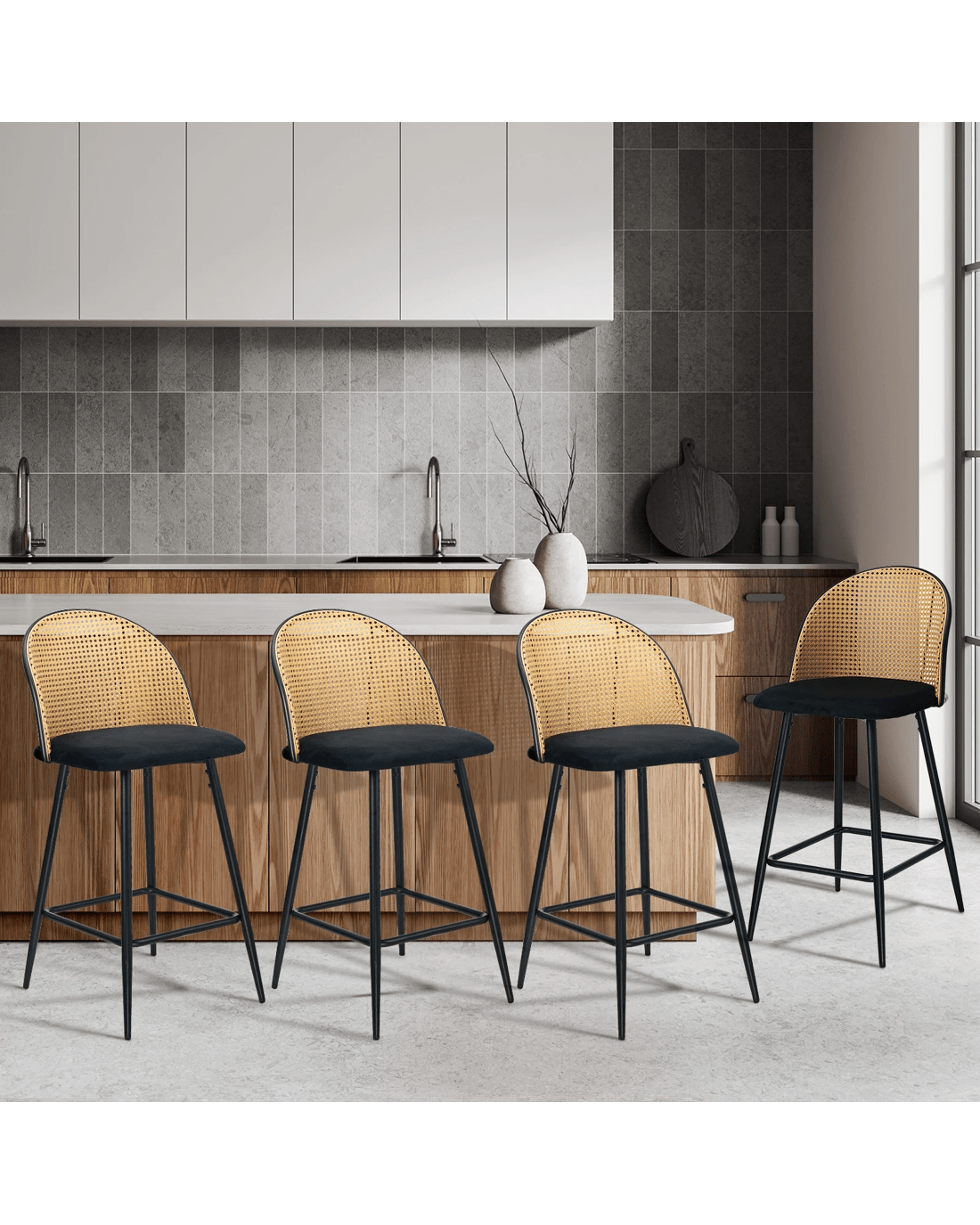 Sold by Kamprad's Oikos 1943Oikiture Bar Stools Kitchen Counter Stool Rattan Dining Chair Velvet X4 - Black