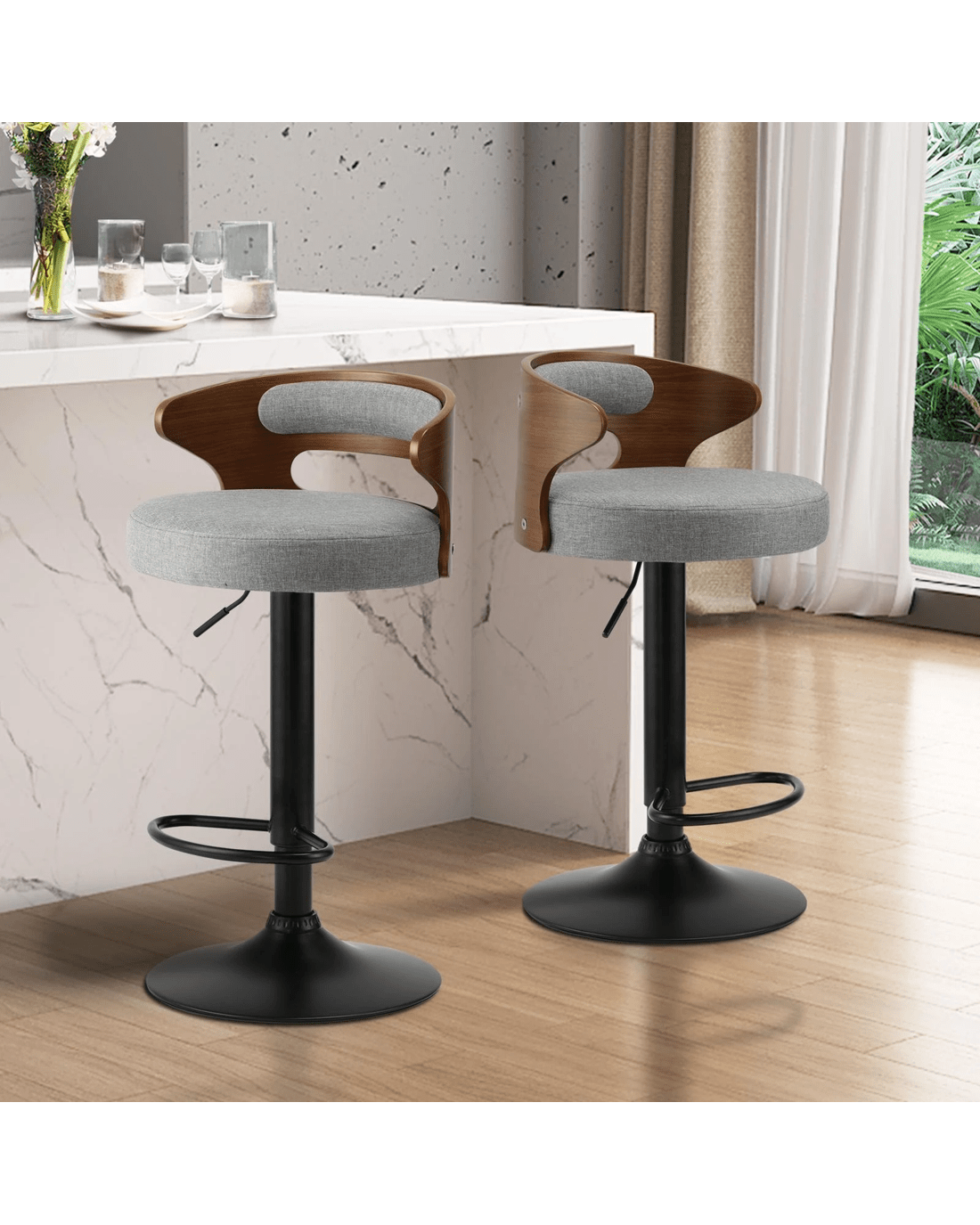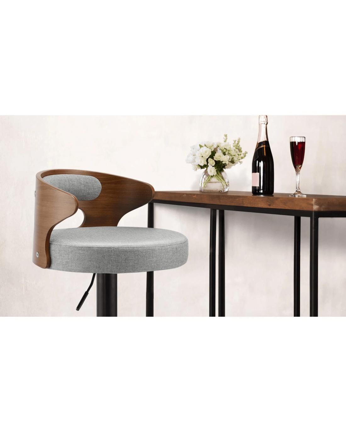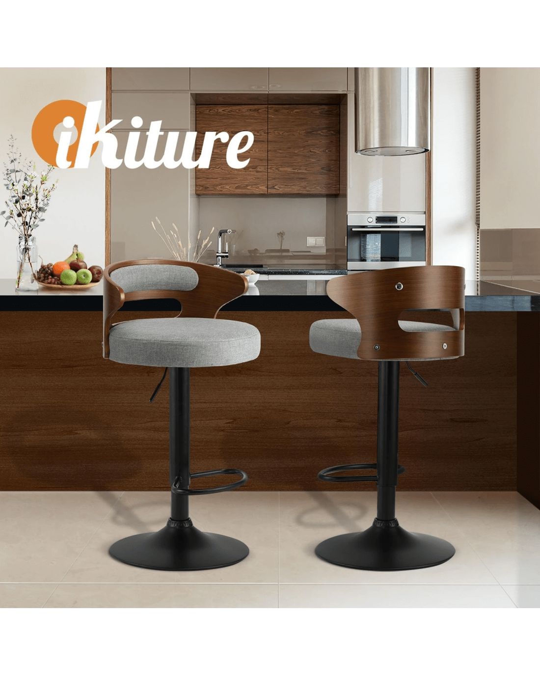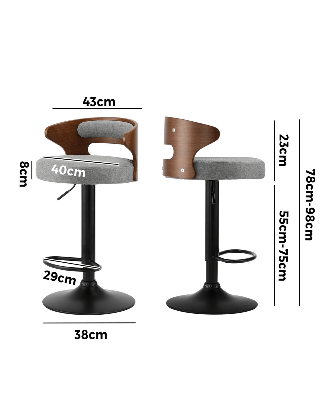 Sold by Kamprad's Oikos 1943Oikiture Bar Stools Kitchen Gas Lift Swivel Chairs Stool Wooden Barstool X2 - Grey
