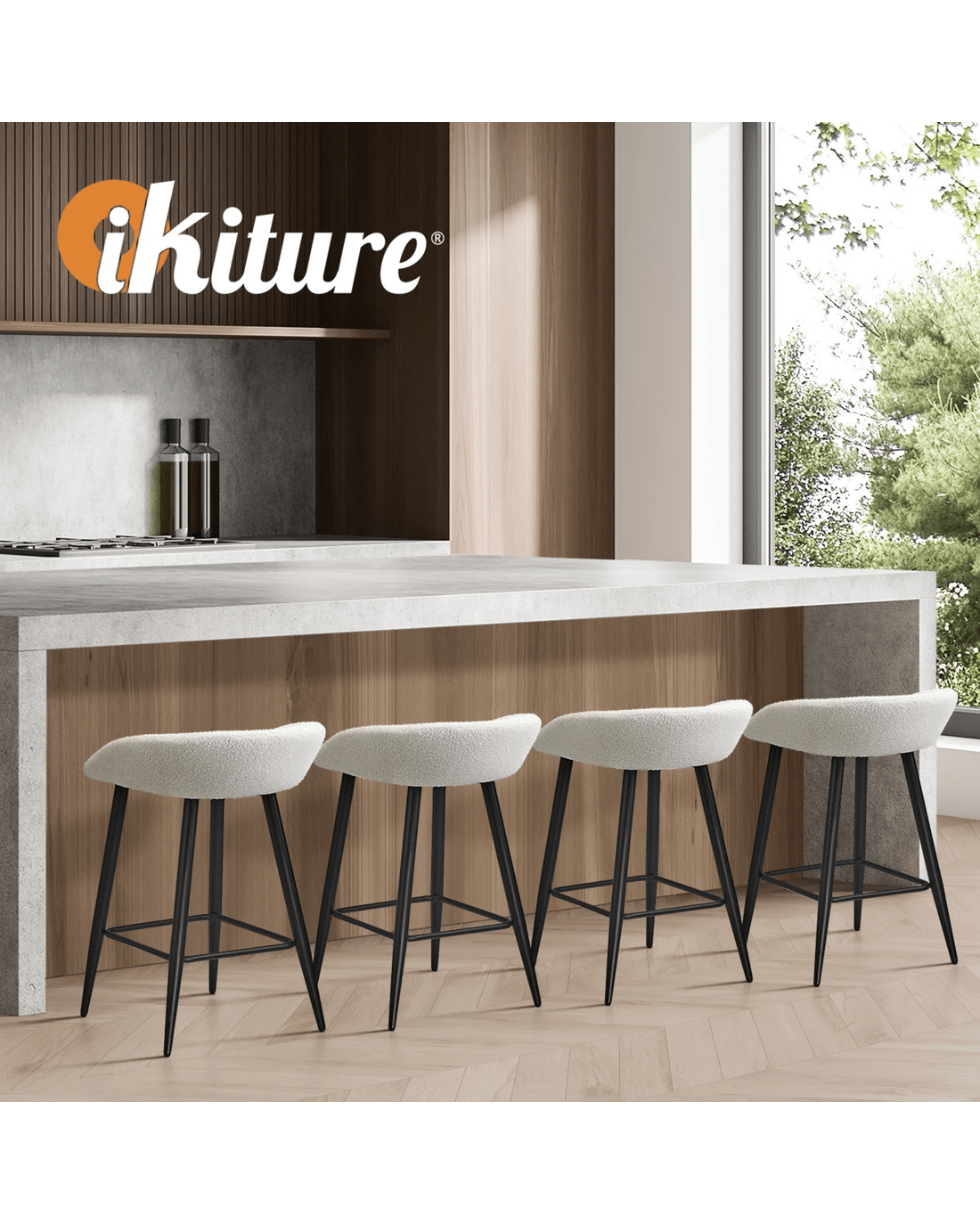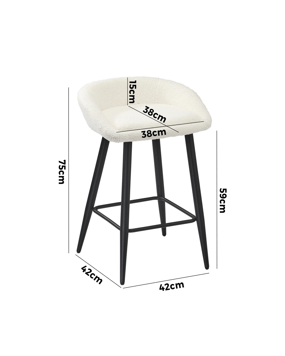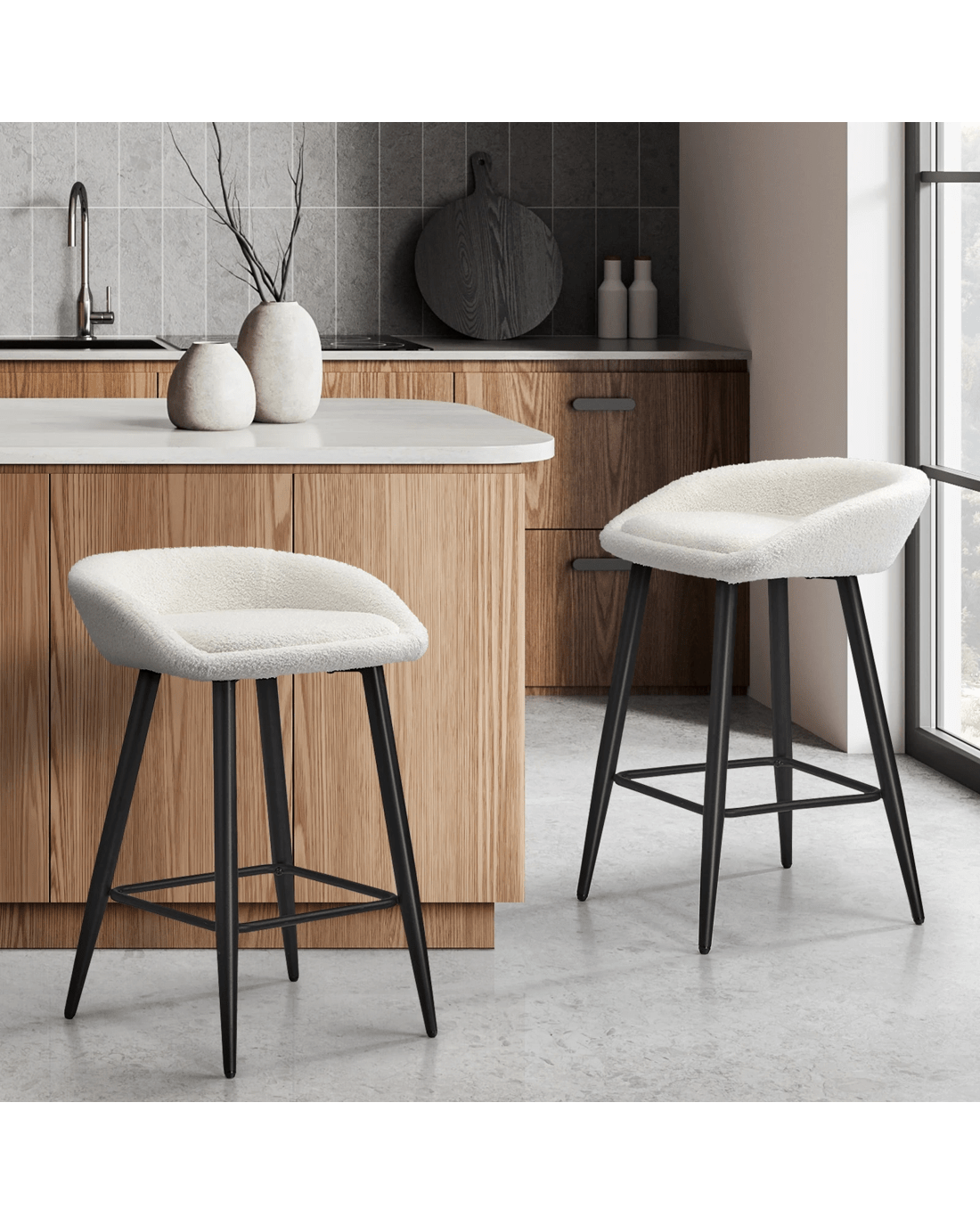 Sold by Kamprad's Oikos 1943Oikiture Bar Stools Set Of 2 Kitchen Dining Chairs Counter Stool Boucle - White