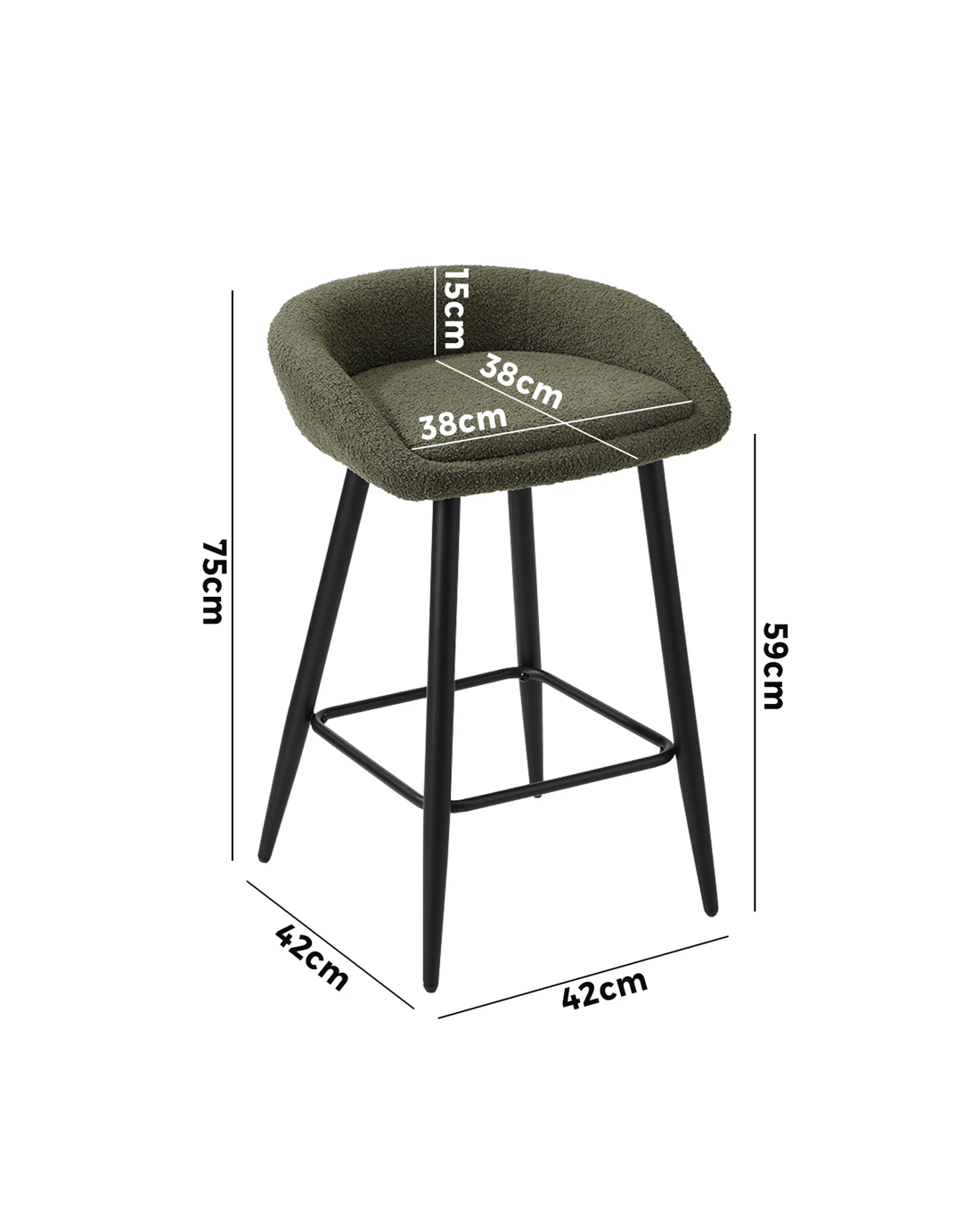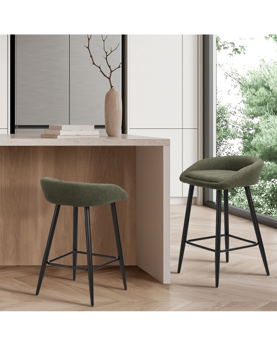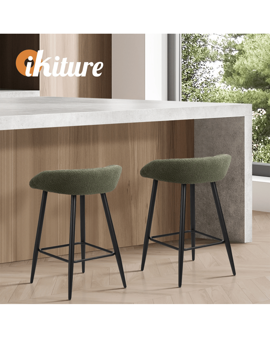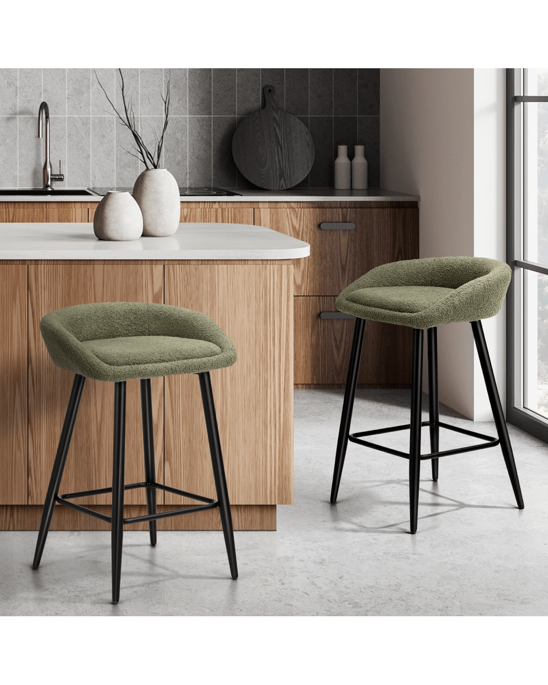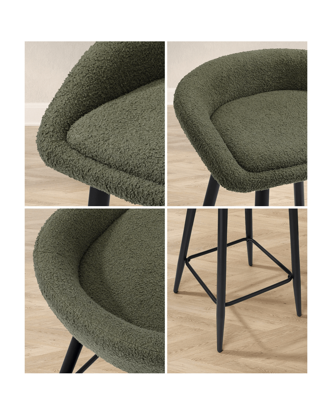 Sold by Kamprad's Oikos 1943Oikiture Bar Stools Set Of 2 Kitchen Dining Chairs Counter Stools Boucle - Green