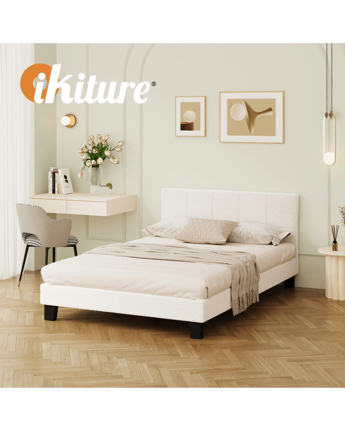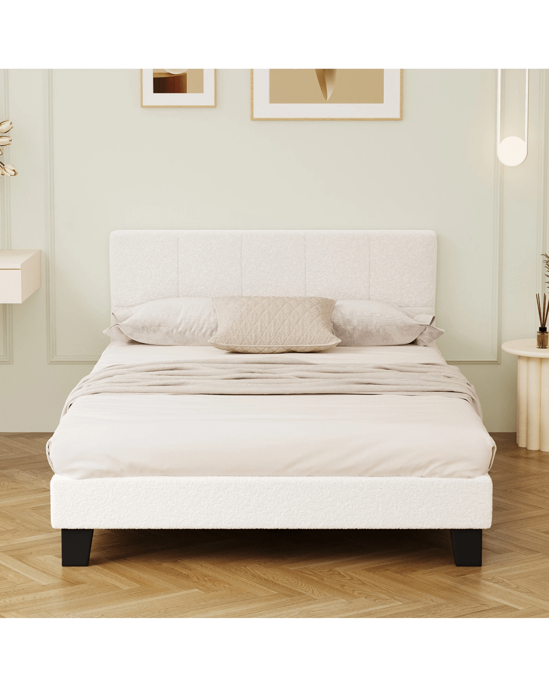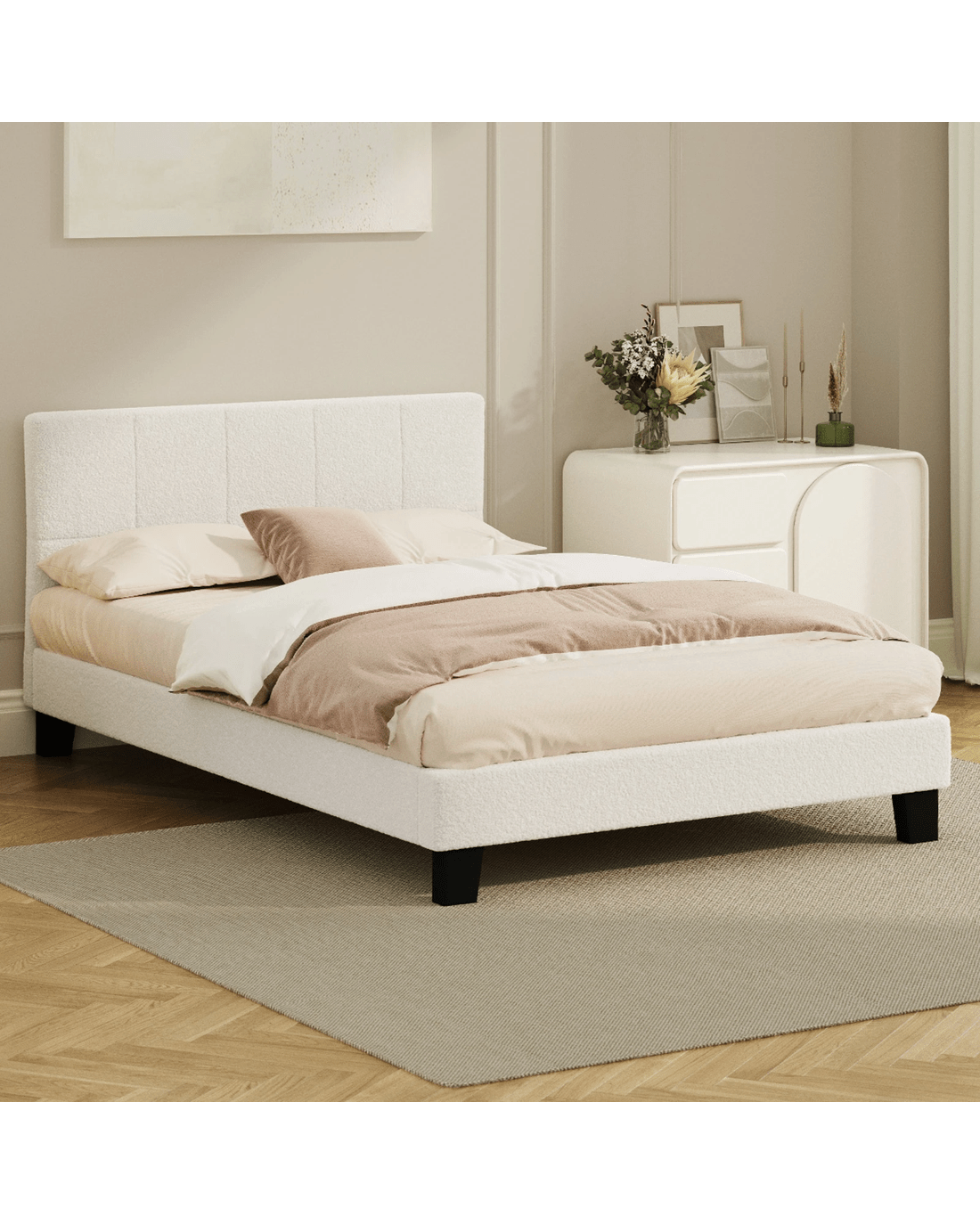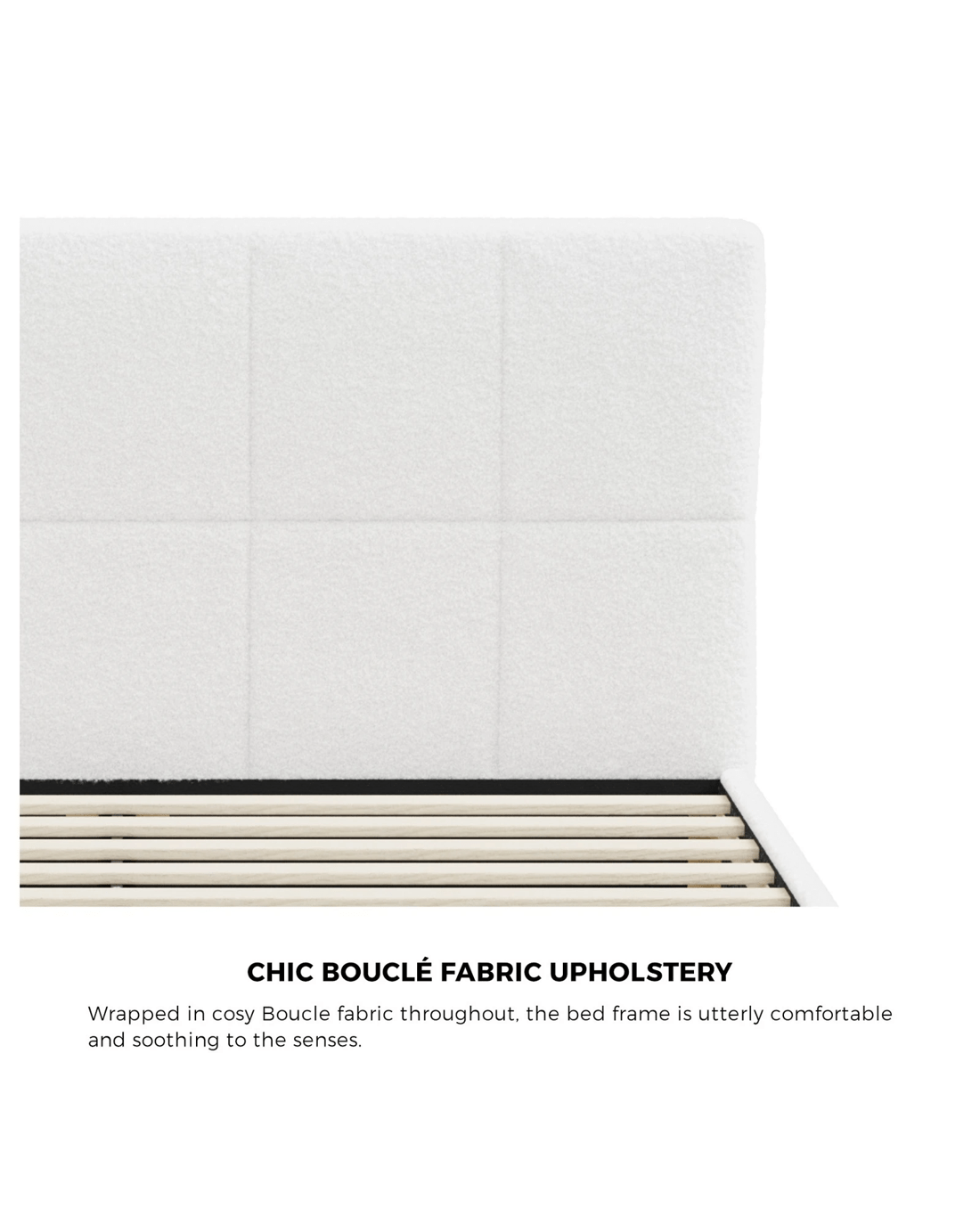 Sold by Kamprad's Oikos 1943Oikiture Bed Frame Double Size Base White Boucle Tofu - White