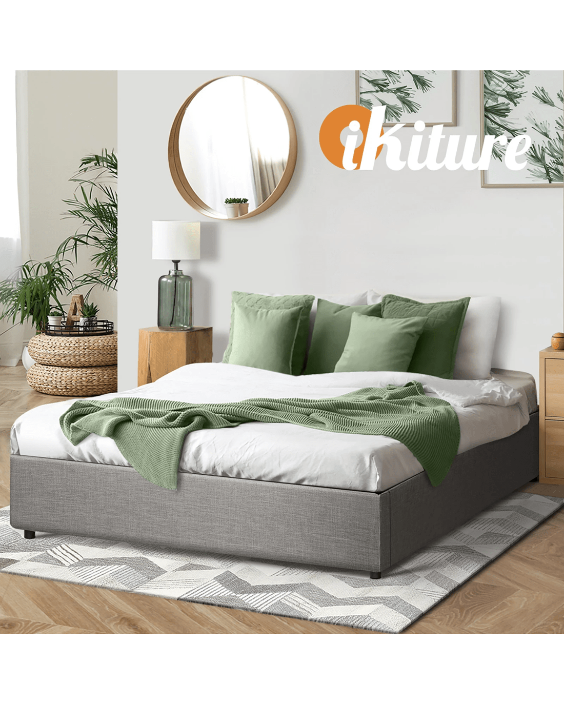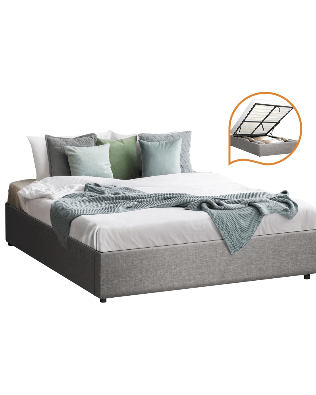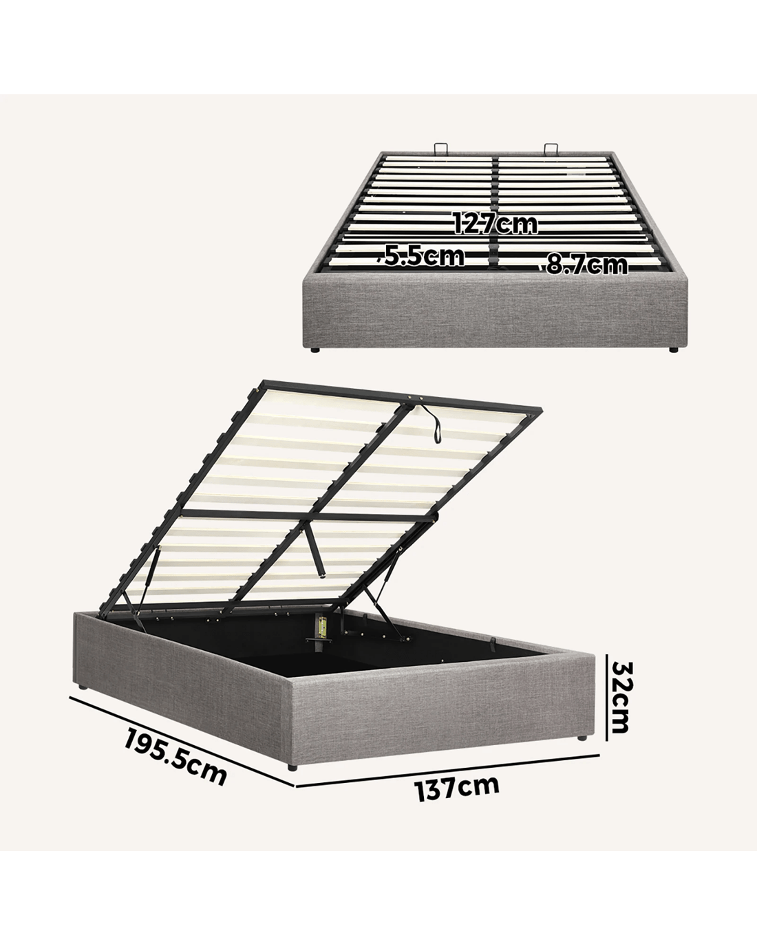Oikiture Bed Frame Double Size Gas Lift Base With Storage - Grey