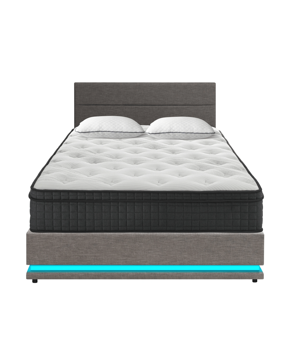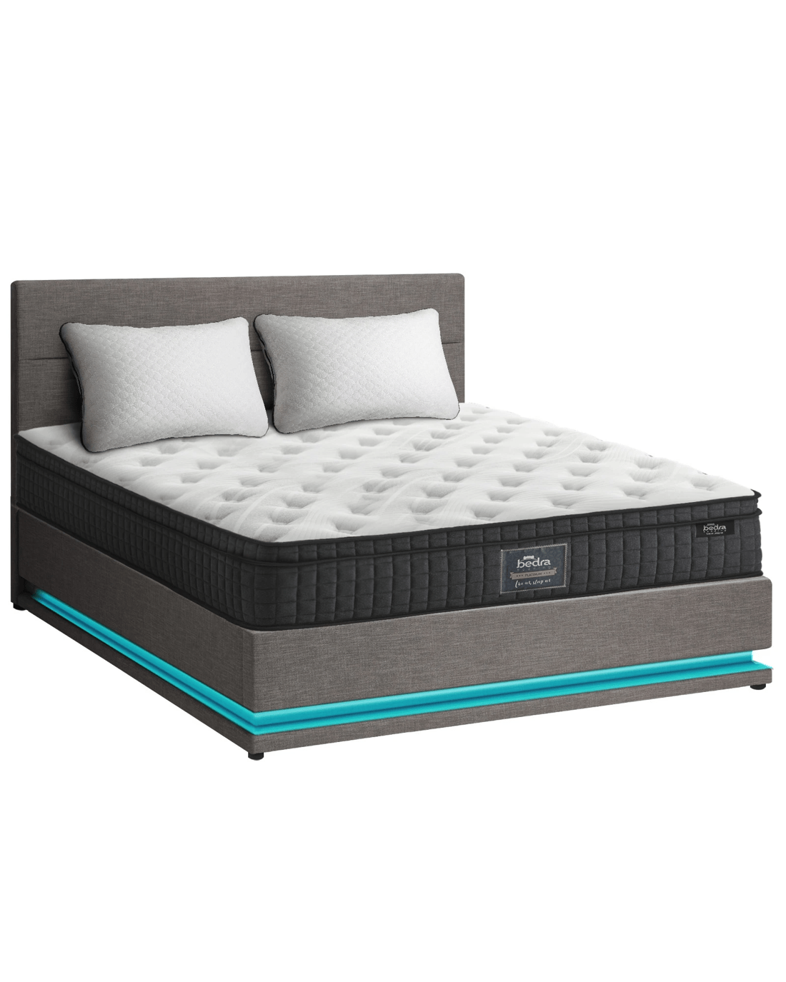 Sold by Kamprad's Oikos 1943Oikiture Bed Frame Double Size LED with Gas Lift Storage Mattress Set LAYZ - Grey