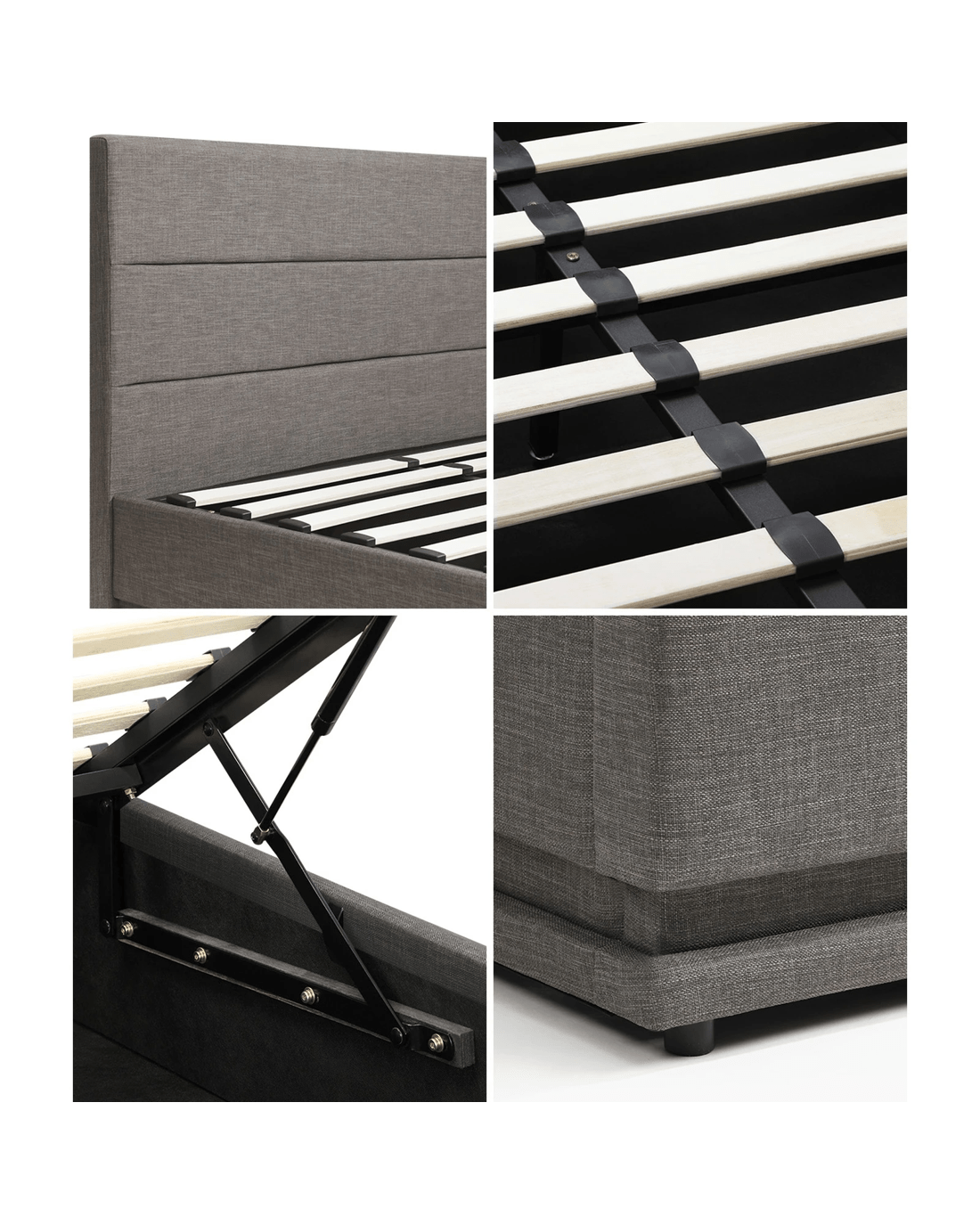 Featuring a well-padded 3-D bedhead and bed end design with premium fabric upholstery, the Oikiture Gas- Lift Bed Frame exudes bespoke elegance and adds a luxurious presence to any bedroom decor. Soft to the touch that lends a swank and intimate aura to accompany your calm and restful sleep.