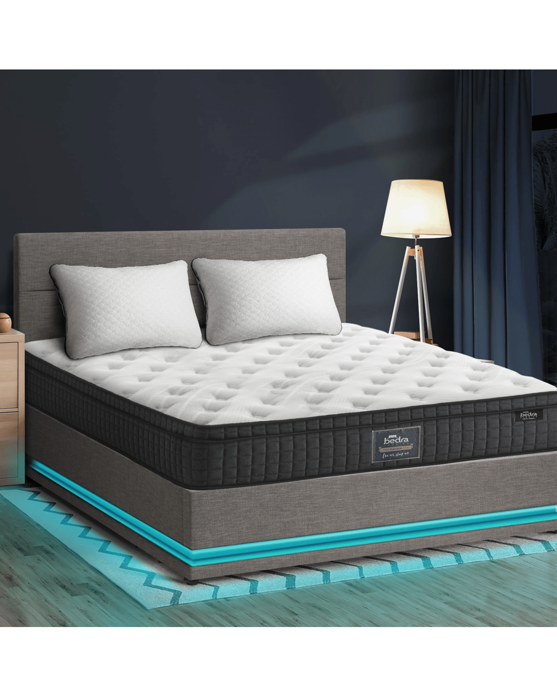 Best of all, the stylish bed frame also includes a comfortable Bedra Bedding Pocket Springs mattress to complete the set. This high-quality spring mattress features all the benefits of an independent pocket springs system that provides reinforced edging, motion isolation, anti-disturbance and full body support. Naturally, the highly breathable mattress complies with all required standards and certification and is hygienically safe from top to bottom and everything else in between.