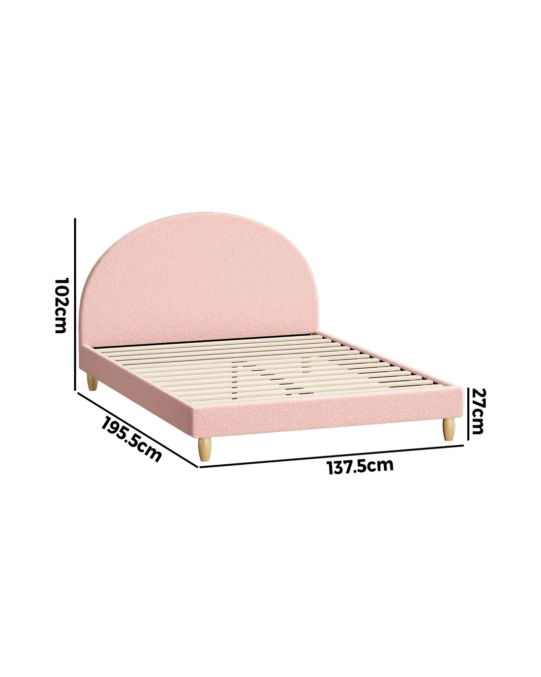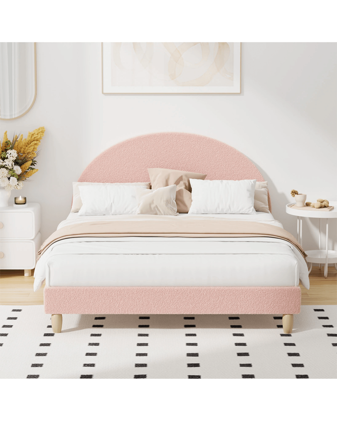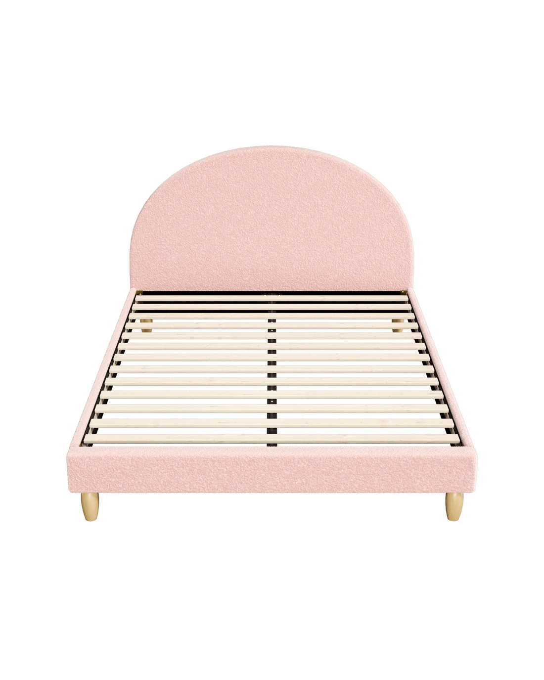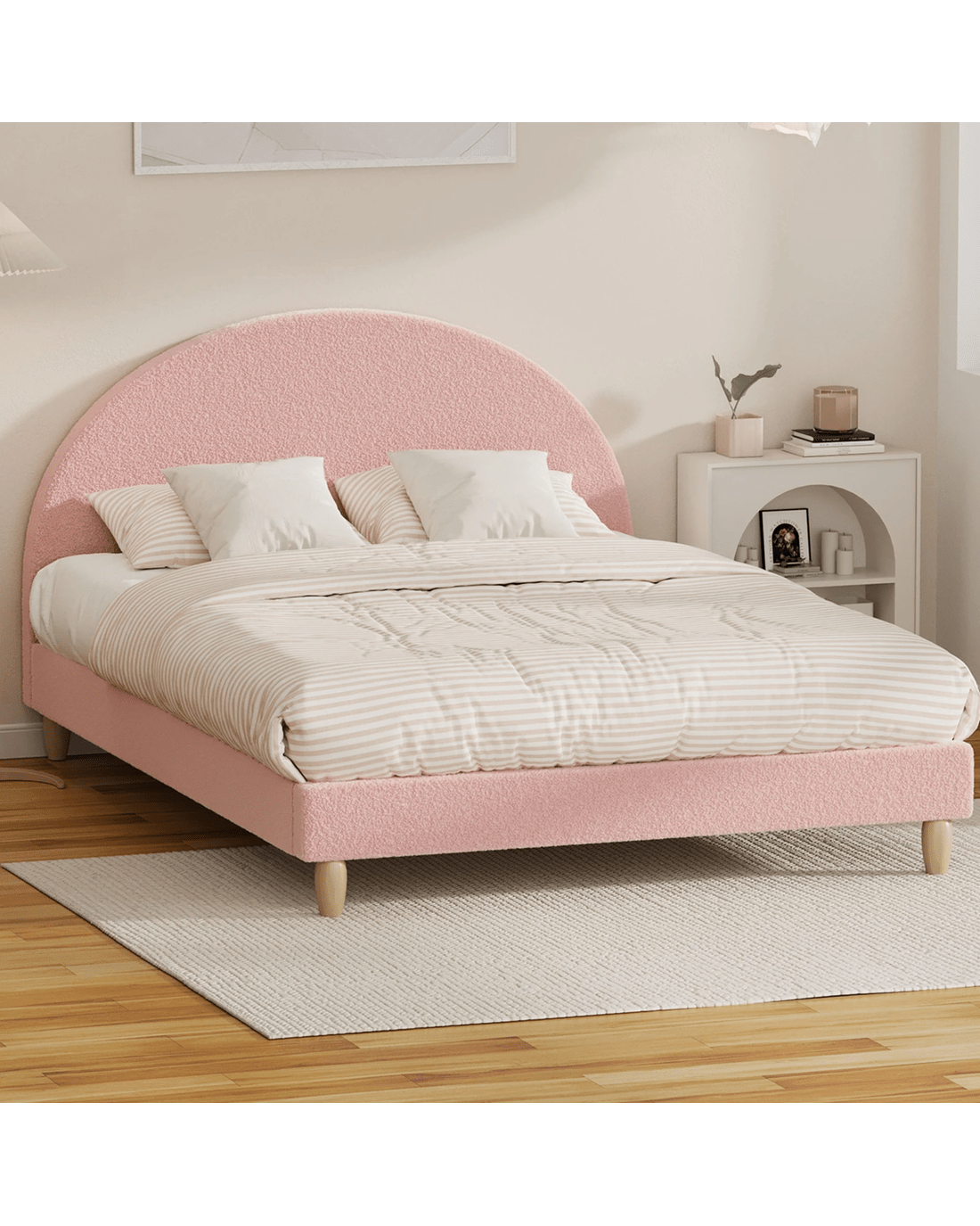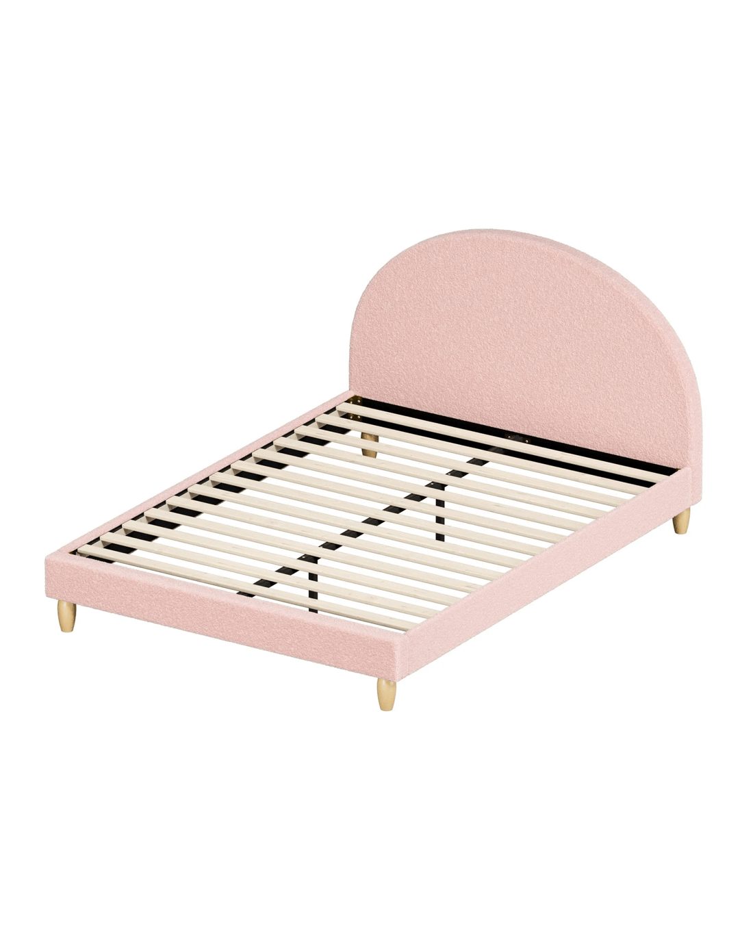 Sold by Kamprad's Oikos 1943Oikiture Bed Frame Double Size Platform Base Arched Bedhead Boucle - Pink