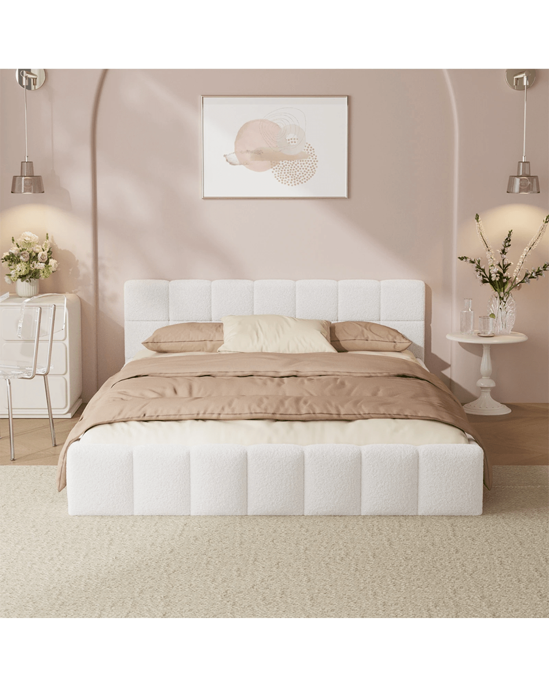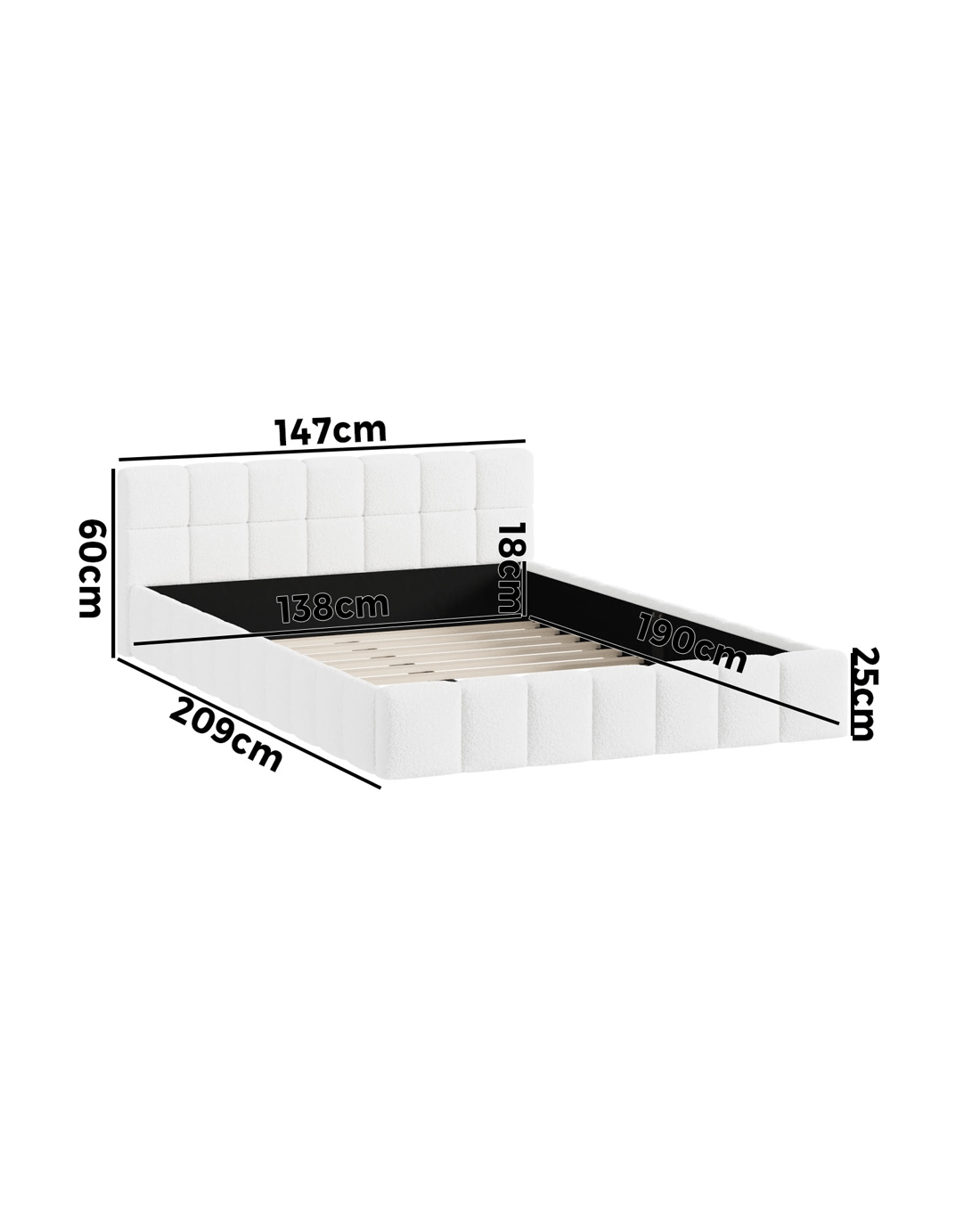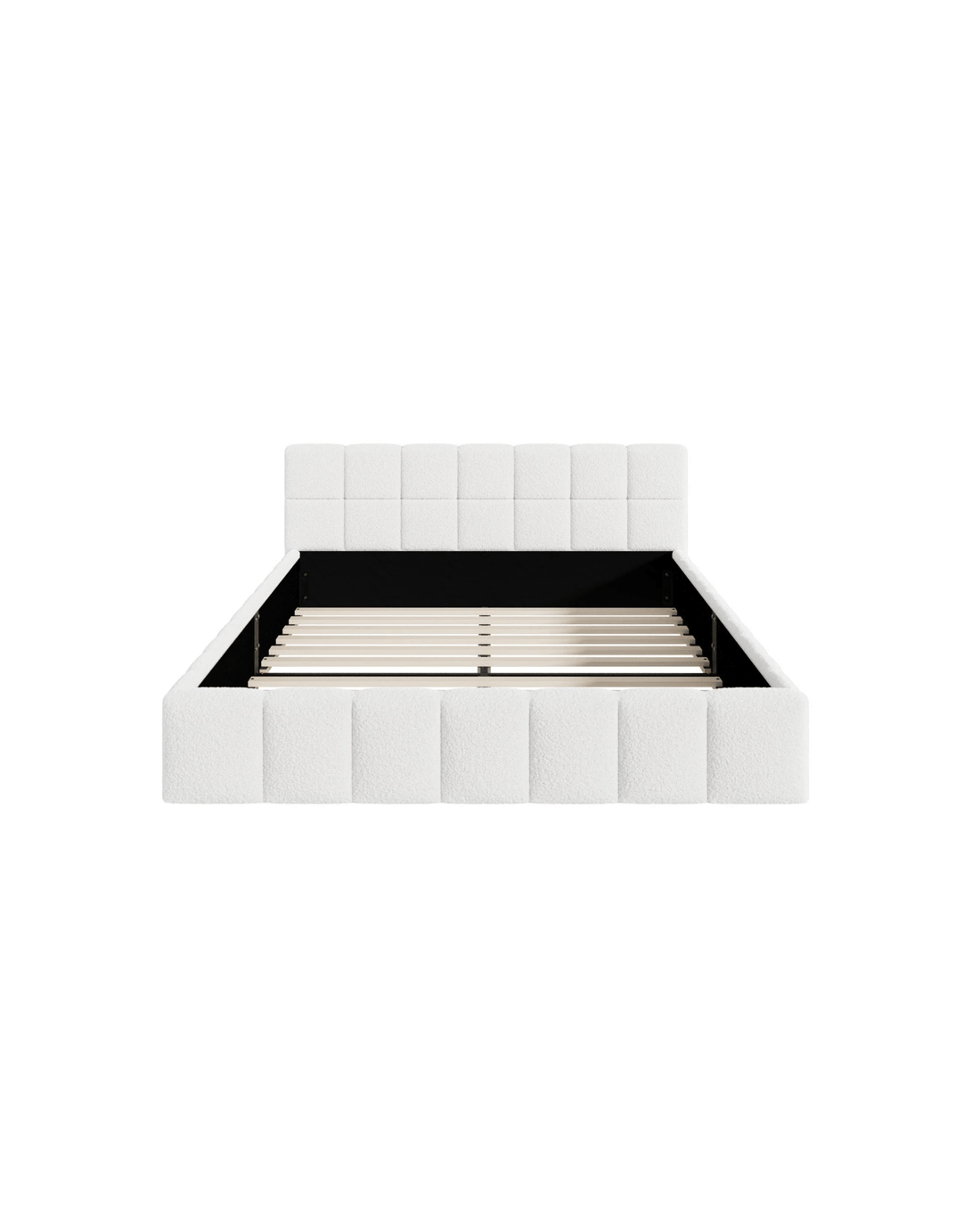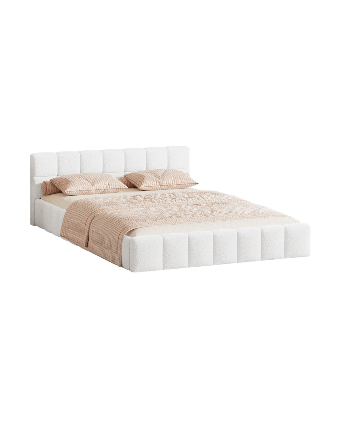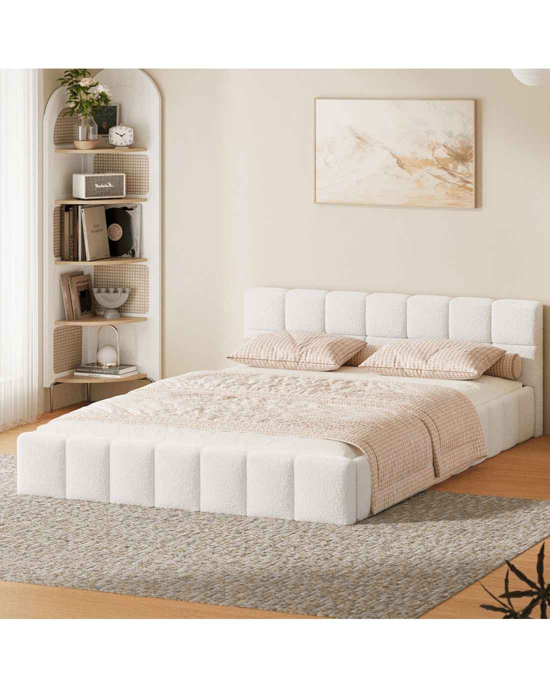 Oikiture Bed Frame Double Size Tufted Headboard Boucle - White