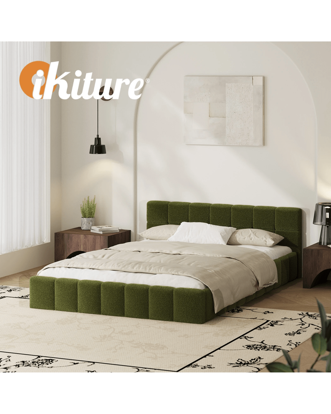 Featuring a unique legless bed design that sits flushed to the ground, the Oikiture Bed Frame exudes style and manifests a luxurious presence to any bedroom decor. Even more so is the plush factor with its premium boucle upholstery that covers the bed frame from head to end.