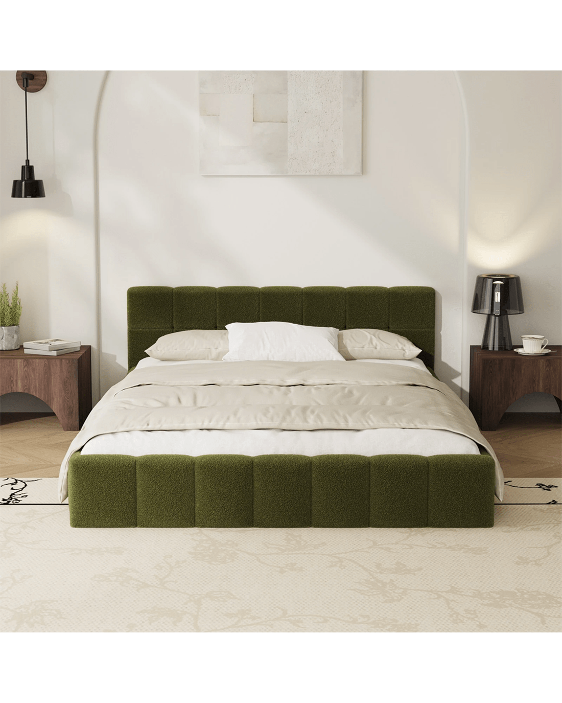 Sold by Kamprad's Oikos 1943Oikiture Bed Frame Double Size Tufted Headboard Green Boucle - Green