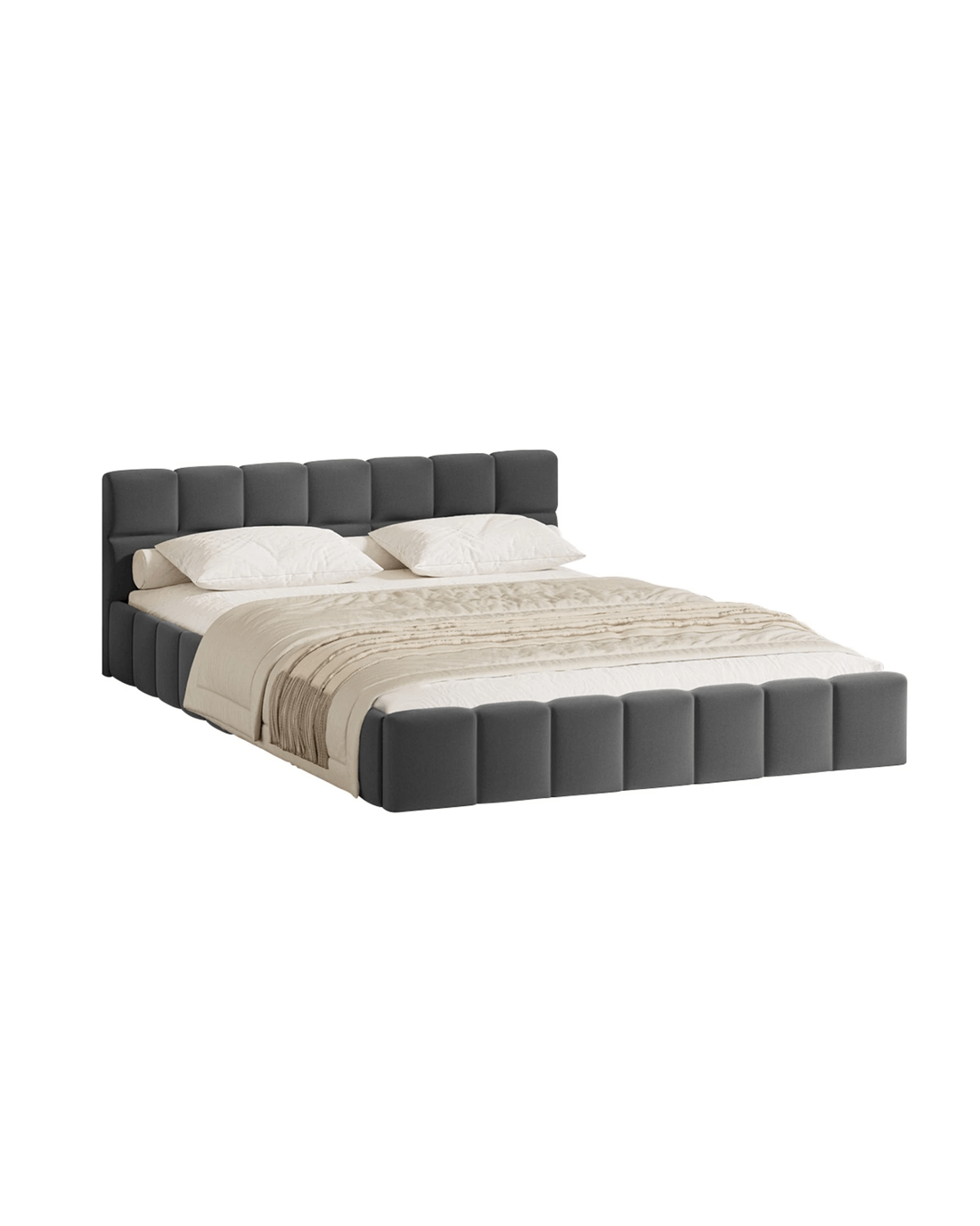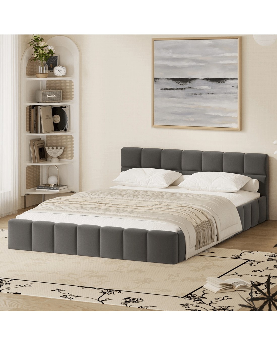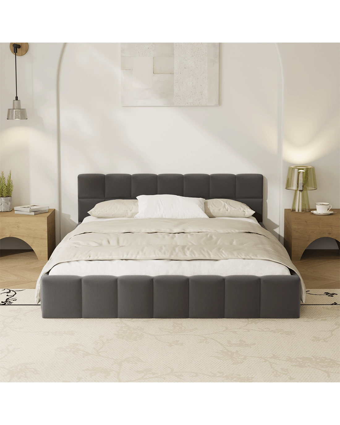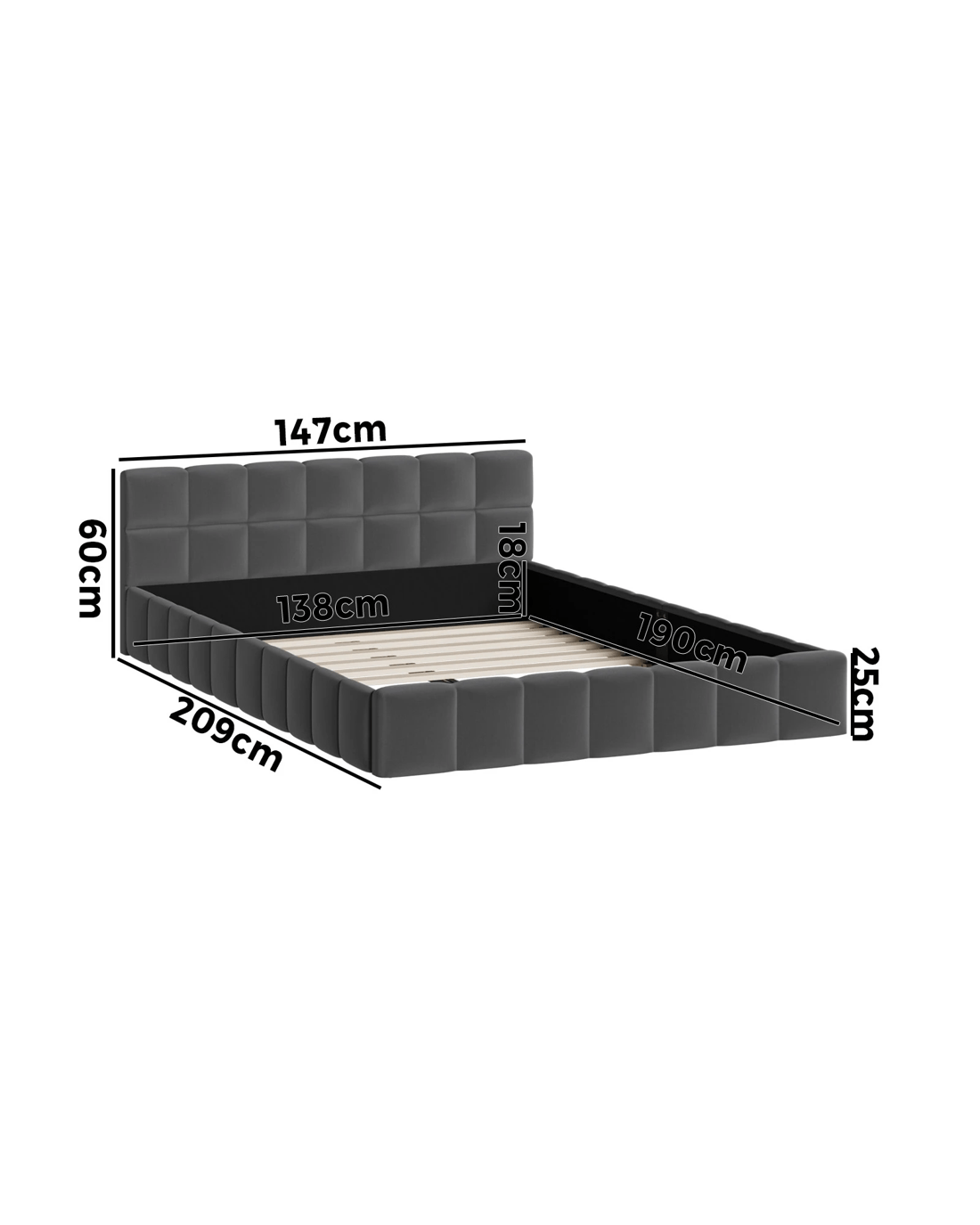 Oikiture Bed Frame Double Size Tufted Headboard Velvet - Grey
