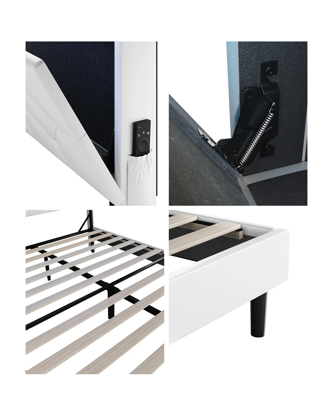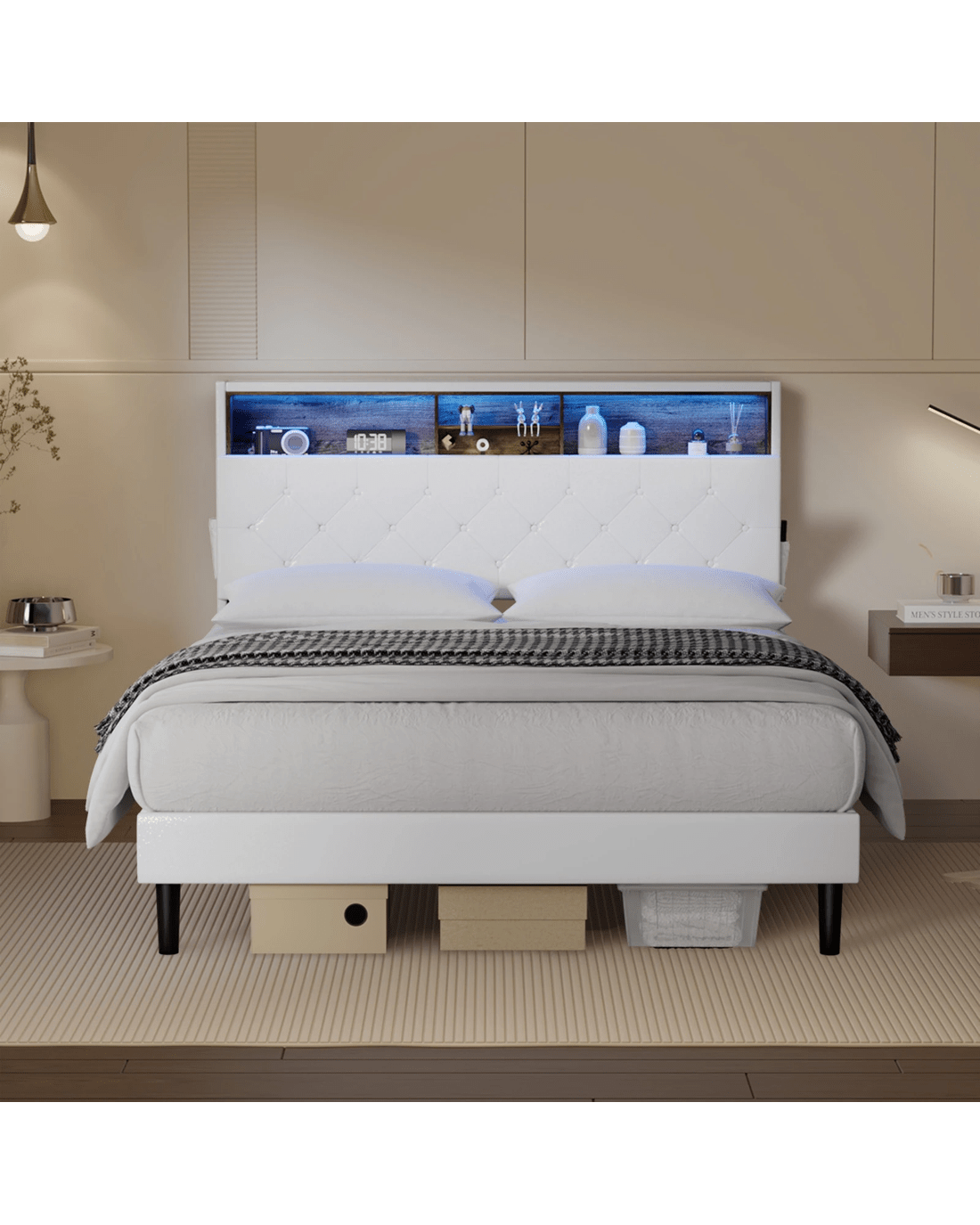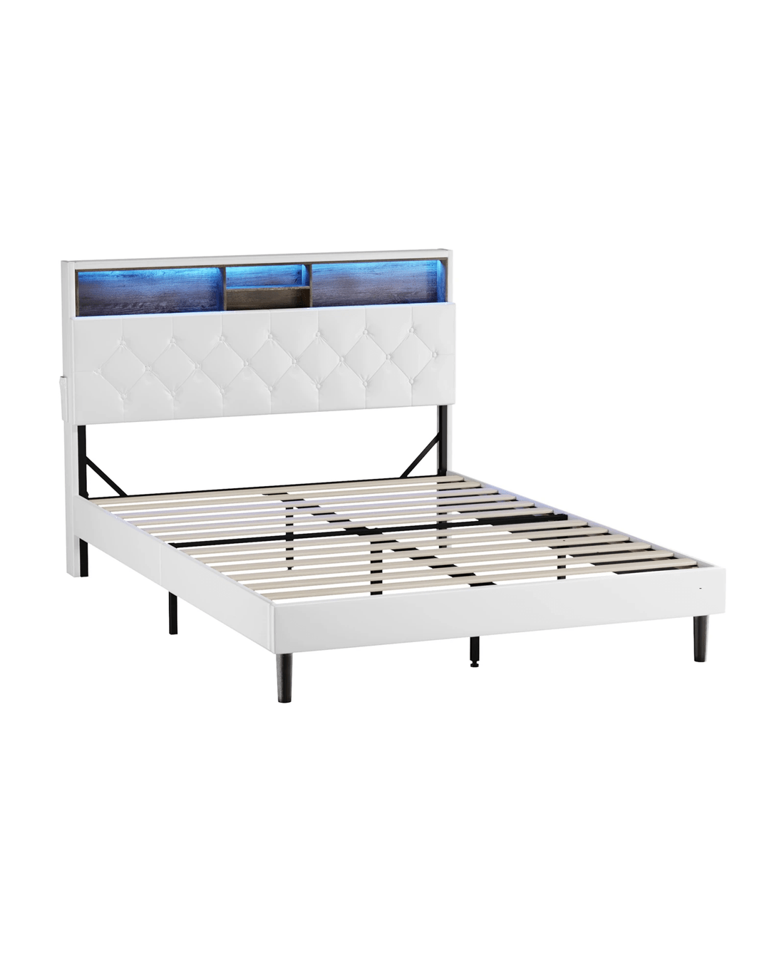 Sold by Kamprad's Oikos 1943Oikiture Bed Frame Double Size with LED Storage Bedhead - White