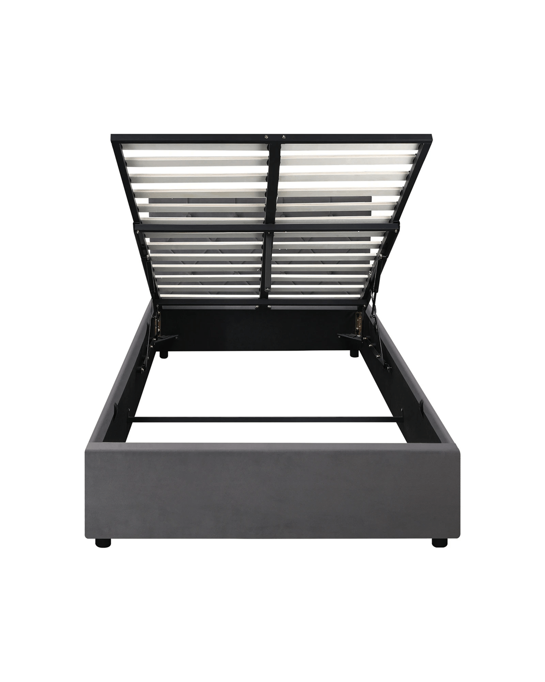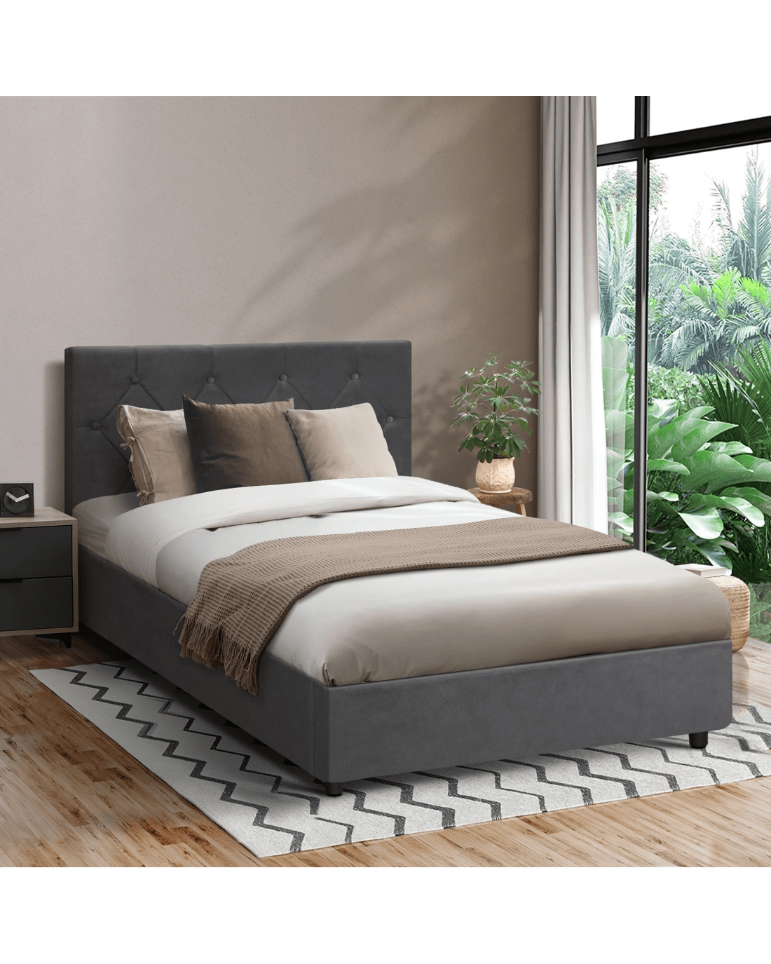 Oikiture Bed Frame King Single Gas Lift Storage Base Velvet COTI - Grey