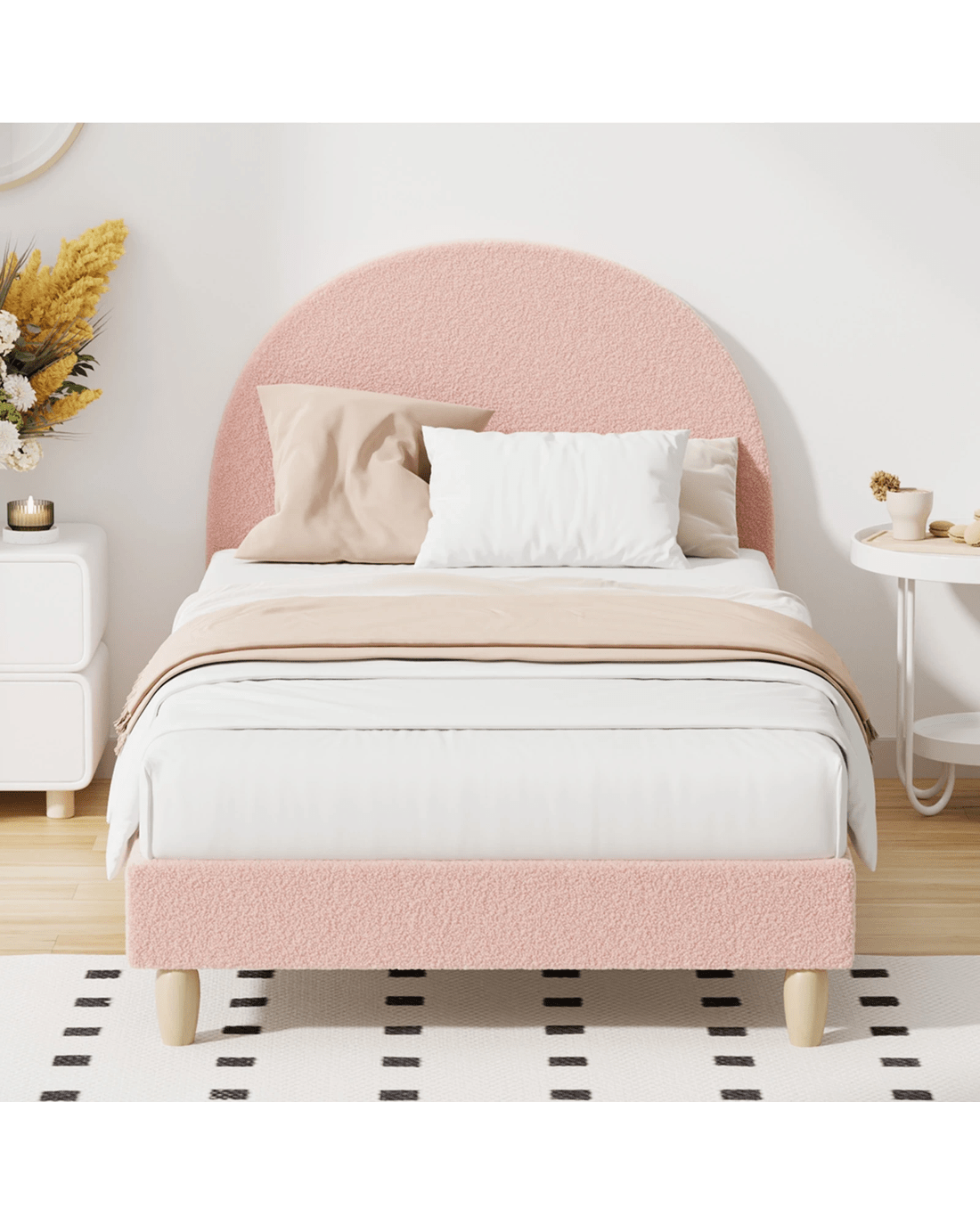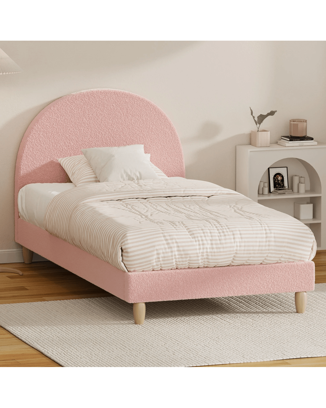 Sold by Kamprad's Oikos 1943Oikiture Bed Frame King Single Size Boucle - Pink