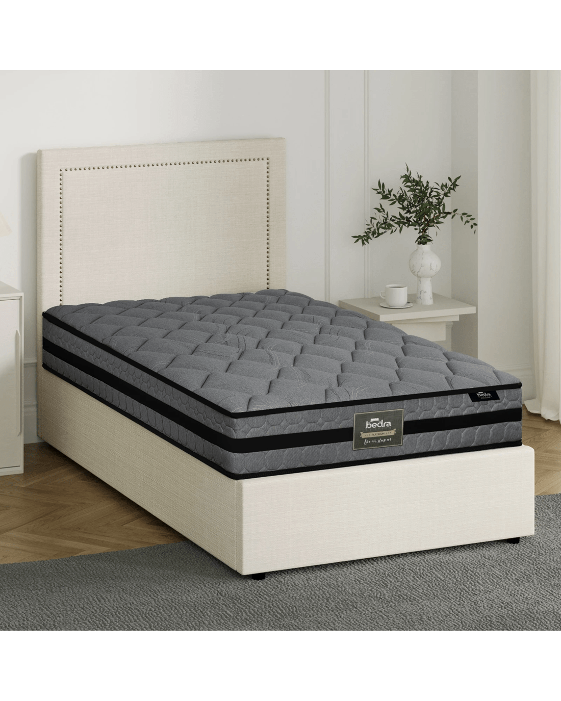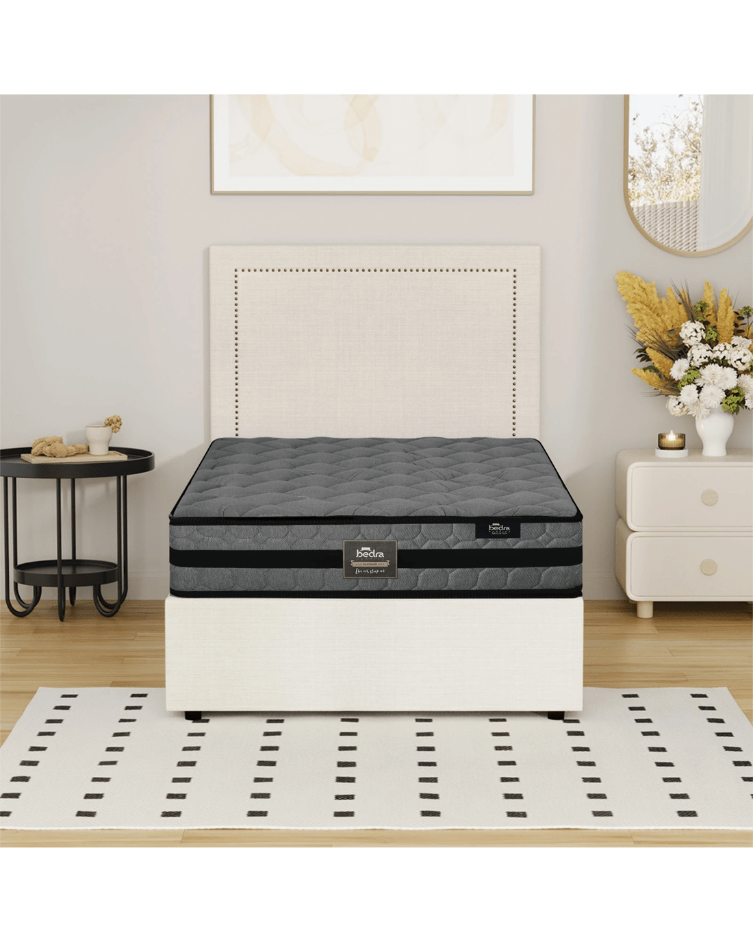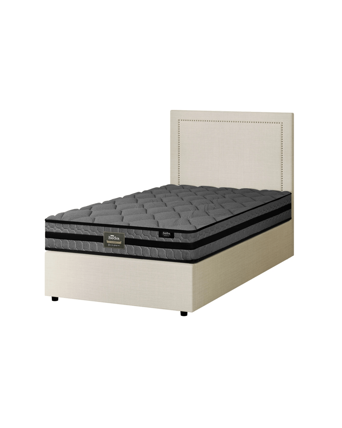 Best of all, the stylish bed frame also includes a comfortable Bedra Bedding Pocket Springs mattress to complete the set. This high-quality silver-ions knitted fabric spring mattress comprises a 7-zone body support system and features all the benefits of an independent pocket springs system that provides reinforced edging, motion isolation, anti-disturbance and medium-firm support. Naturally, the highly breathable mattress complies with all required standards and certification and is hygienically safe from top to bottom and everything else in between.