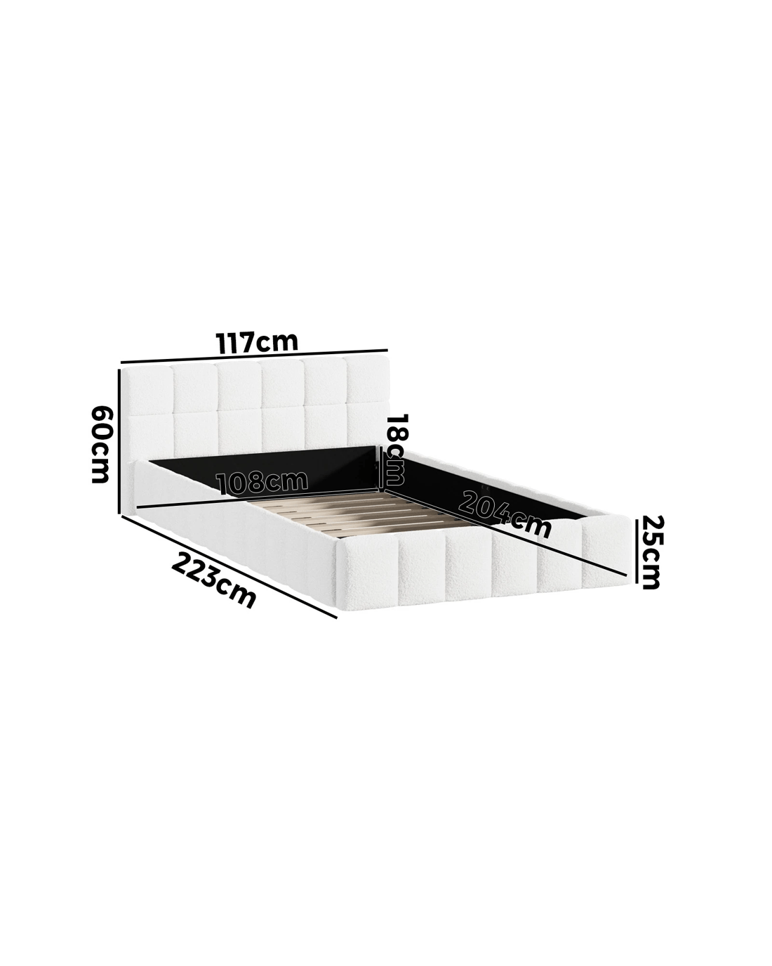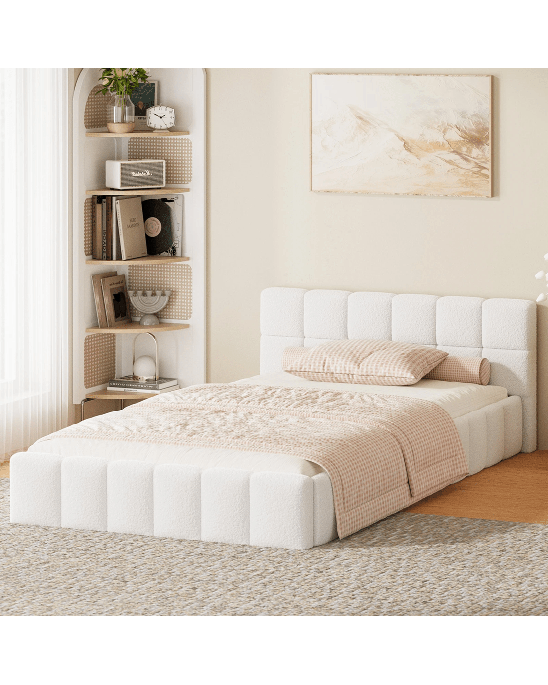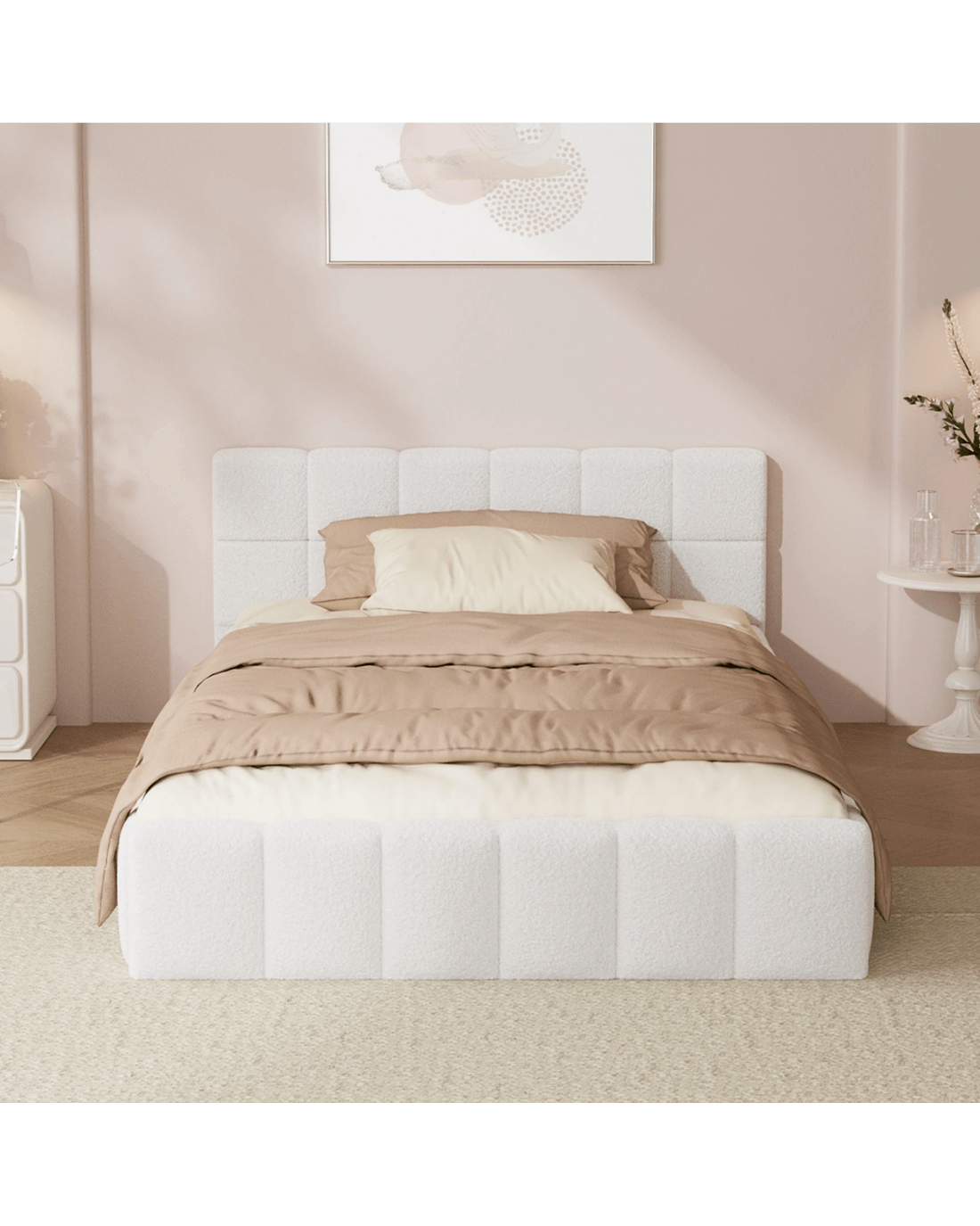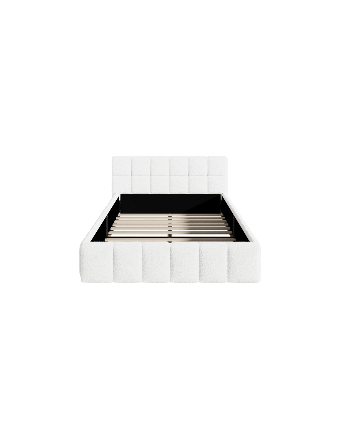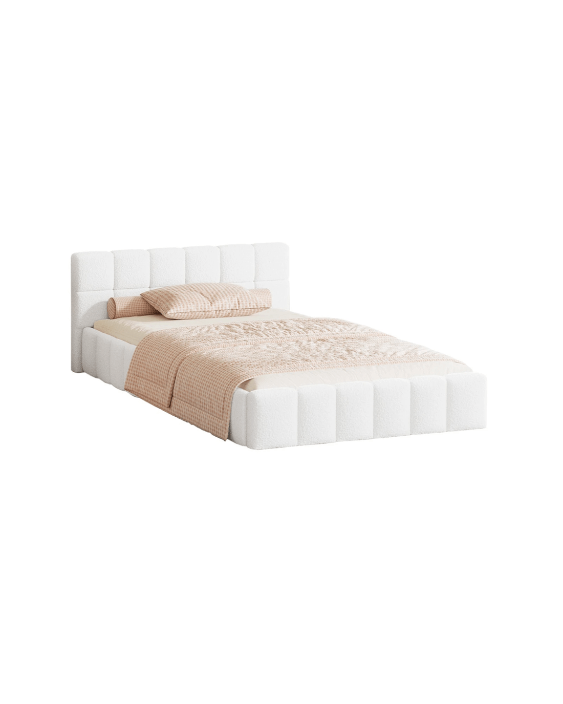 Oikiture Bed Frame King Single Size Tufted Headboard Boucle - White