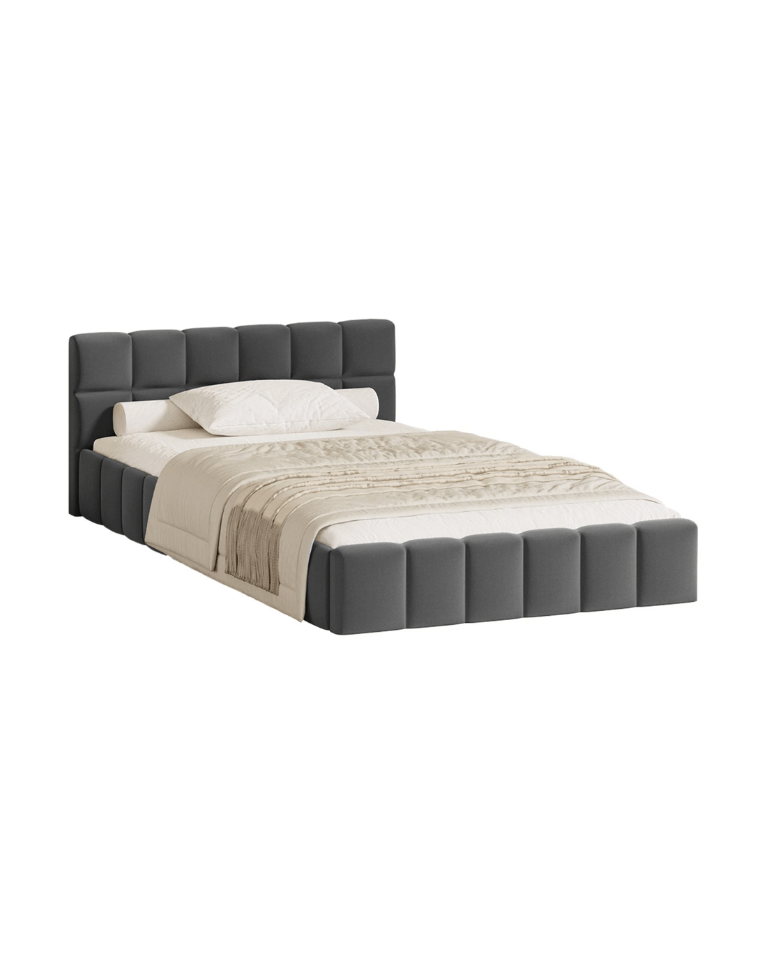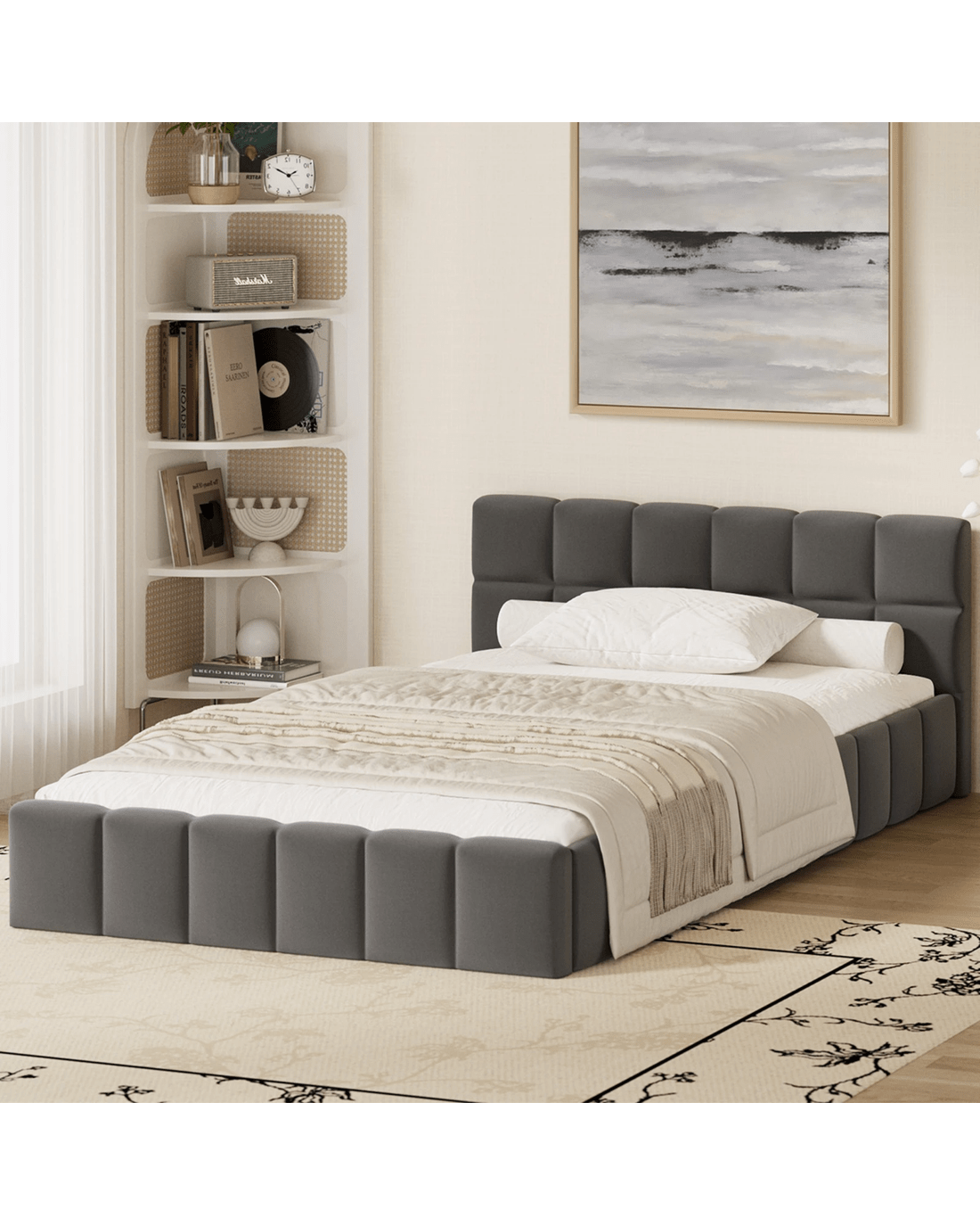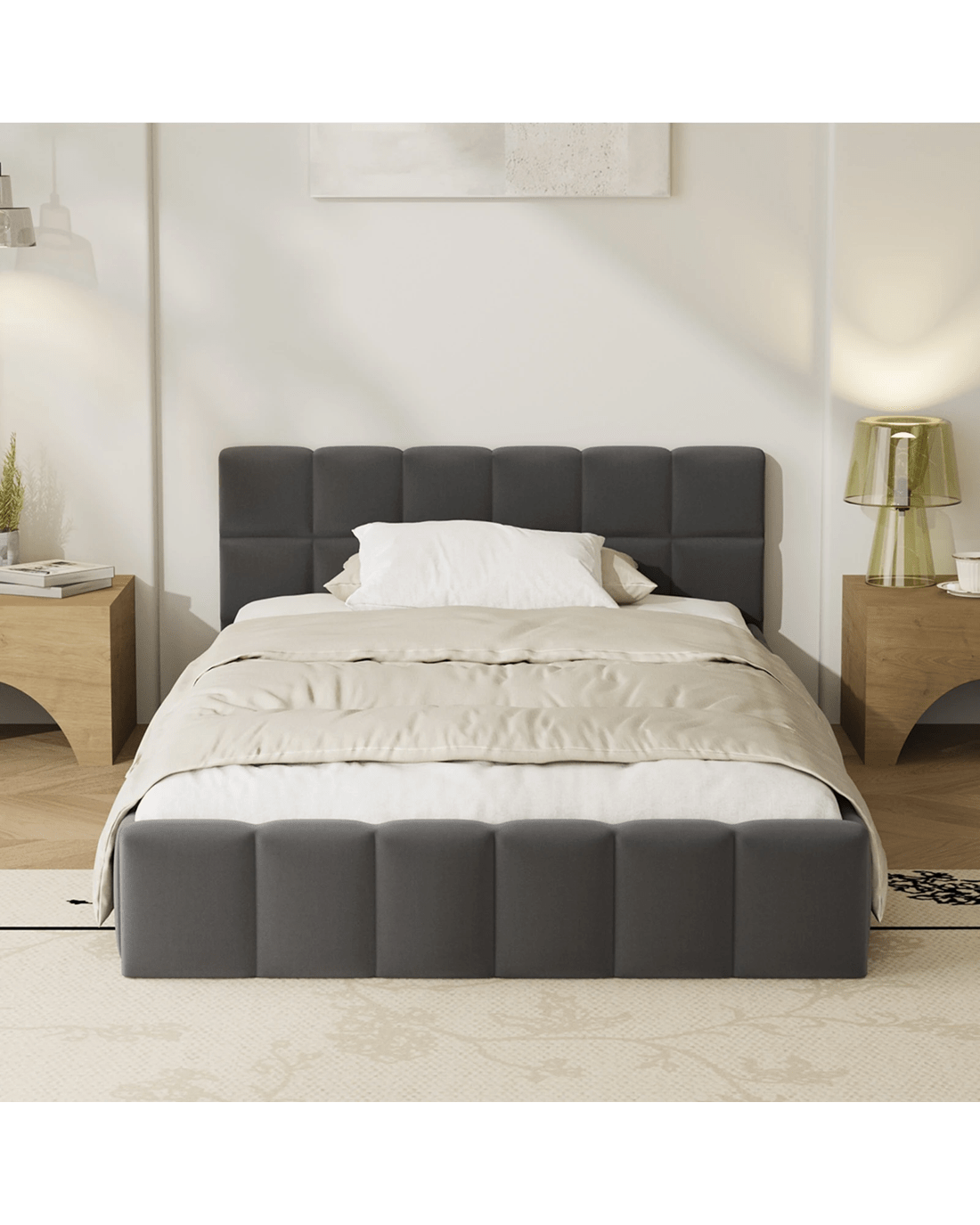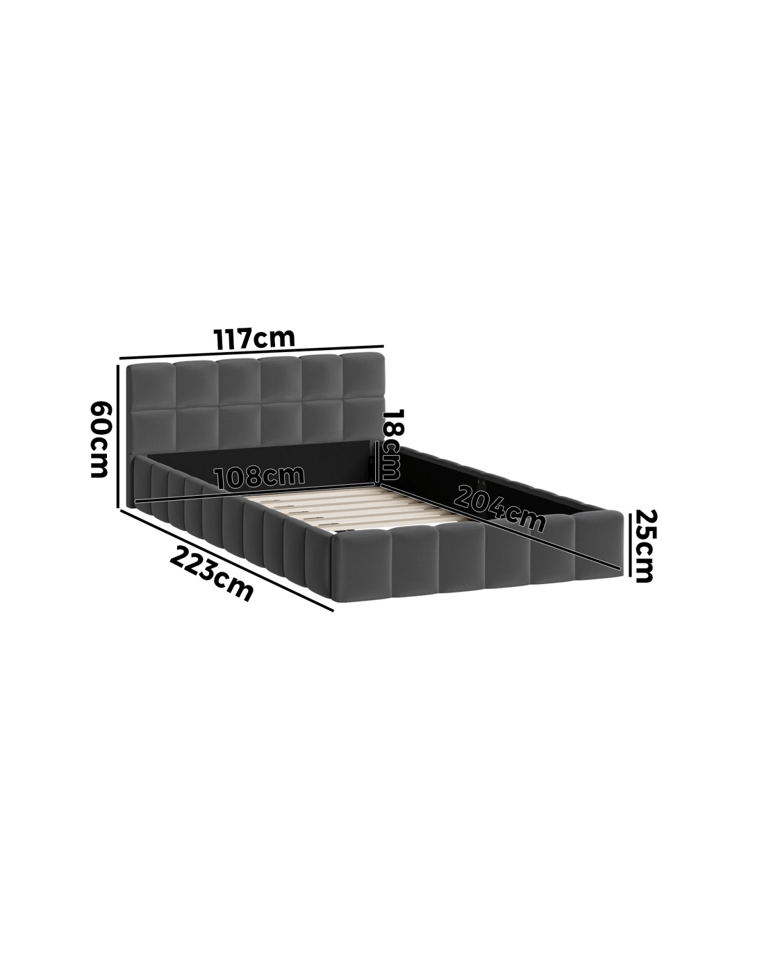 Oikiture Bed Frame King Single Size Tufted Headboard Velvet - Grey