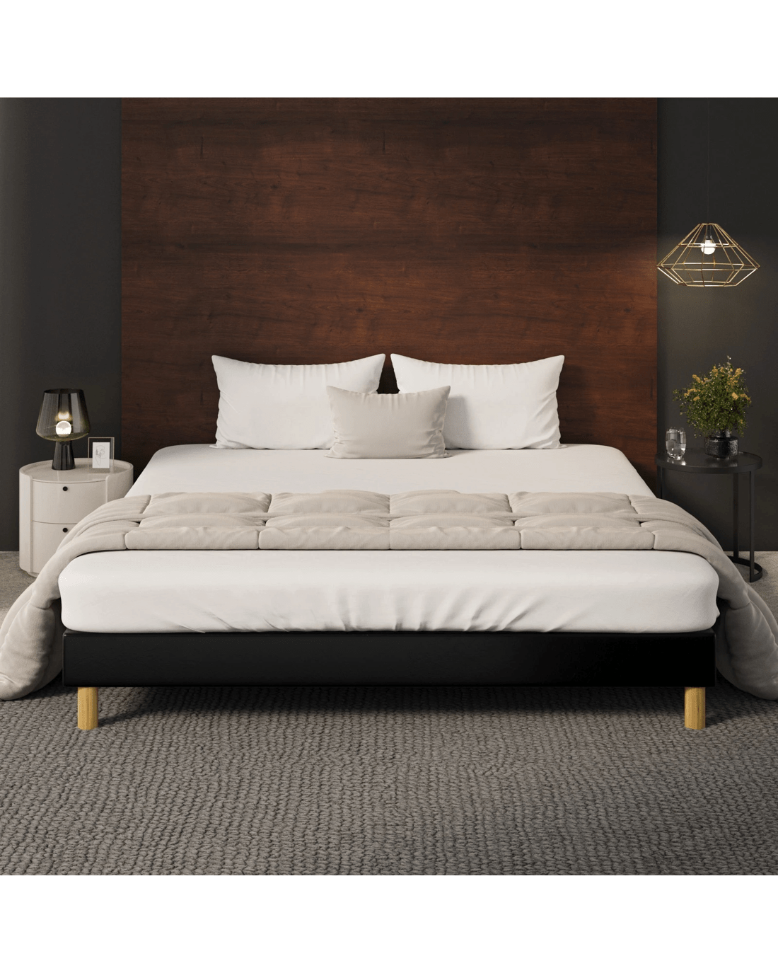 The Oikiture Como Bed Frame oozes a blend of classic elegance and contemporary flair to add to any bedroom decor. All around, the cosy PU Leather upholstery covers the bed frame from head to end is soft to the touch and creates a plush and intimate aura to accompany your calm and restful sleep.