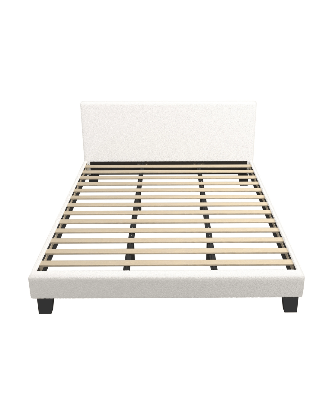 Create a calming bedroom with our Boucle Fabric series bed frame. Fitted with solid legs and plywood slats that designed with Velcro to hold it on the platform bed in place, this bed brings you the extra security that you need to get a good sleep throughout the night.