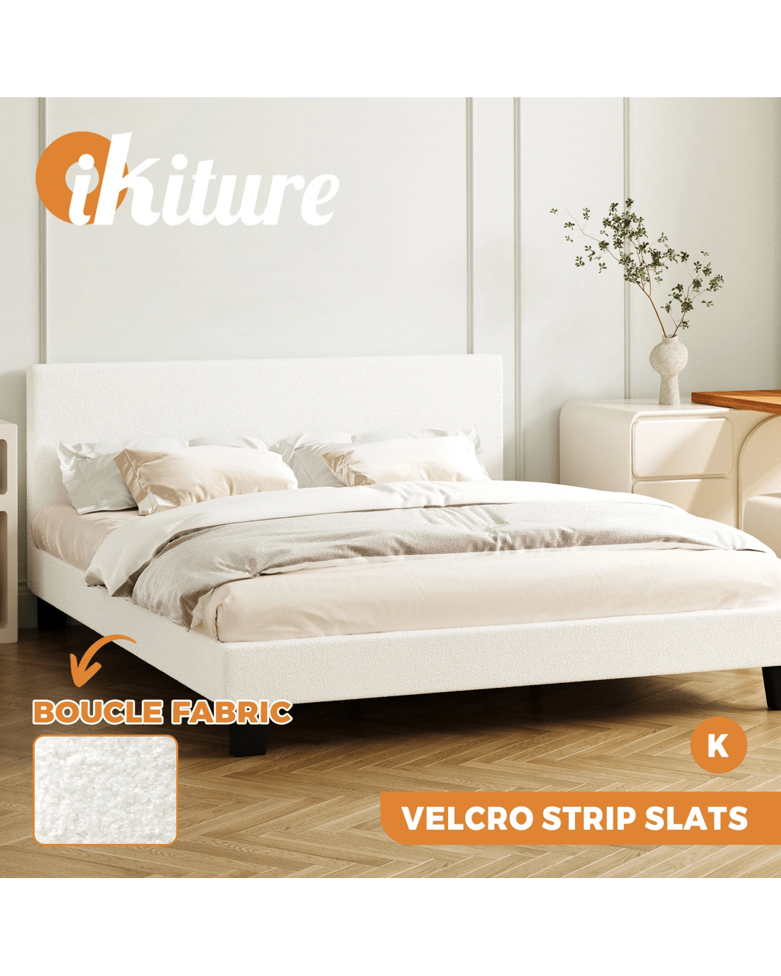 Sold by Kamprad's Oikos 1943Oikiture Bed Frame King Size Boucle - White