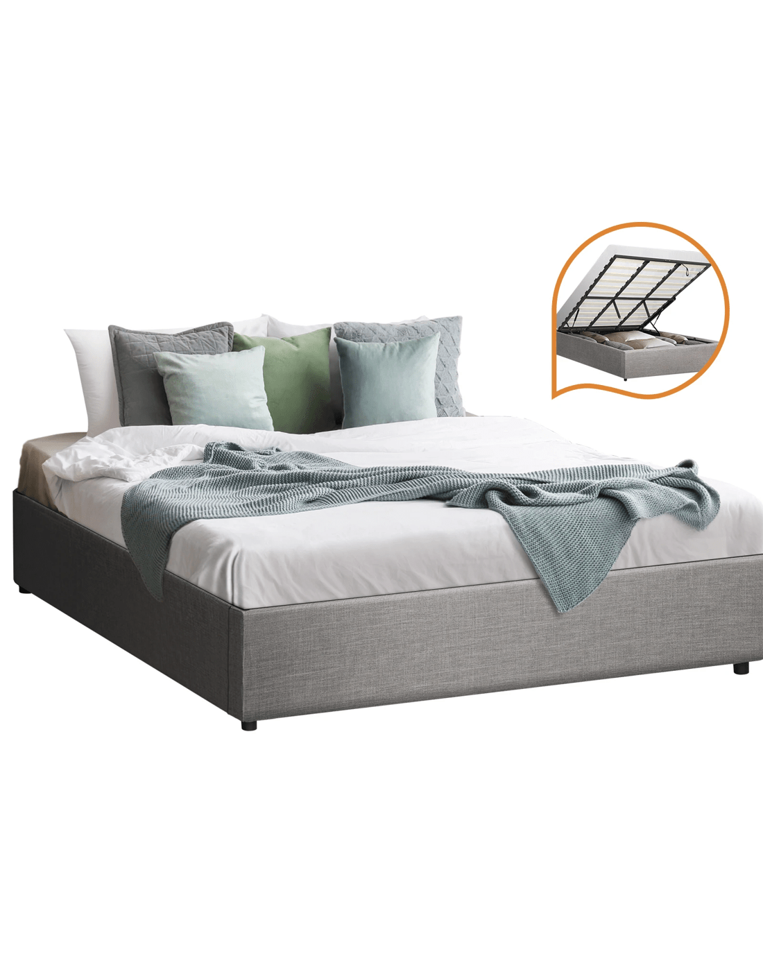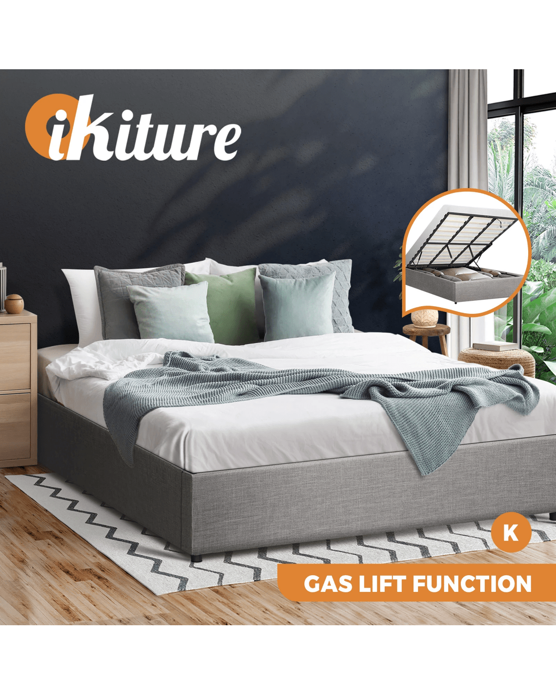 Get the ultimate space saver with Oikiture Gas Lift Bed Frame that is a contemporary and classic piece that give you room an instant lift of elegance and style. Upholstered with premium fabric and great attention to details, it's going for the perfect designer look.