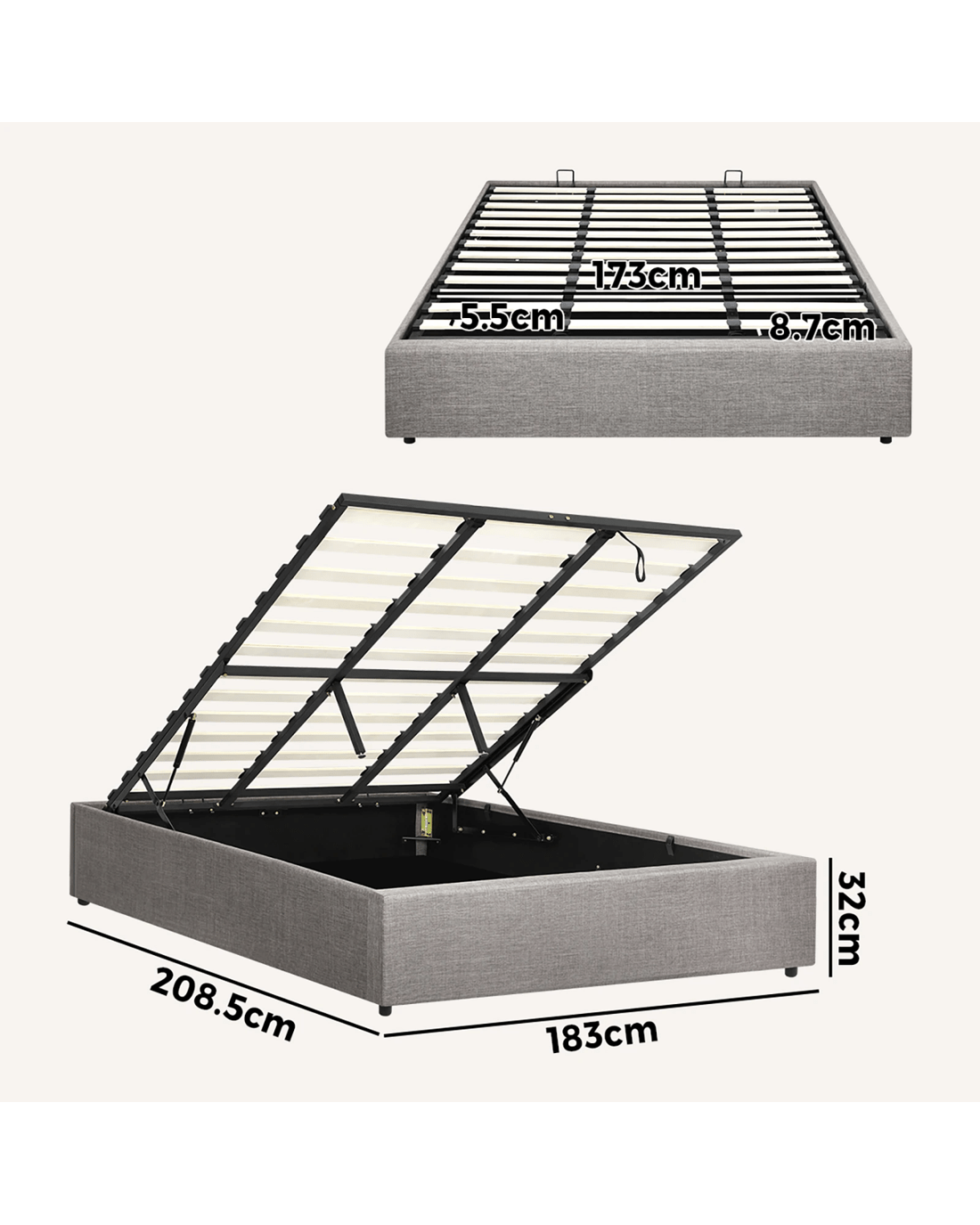 Sold by Kamprad's Oikos 1943Oikiture Bed Frame King Size Gas Lift Base With Storage - Grey