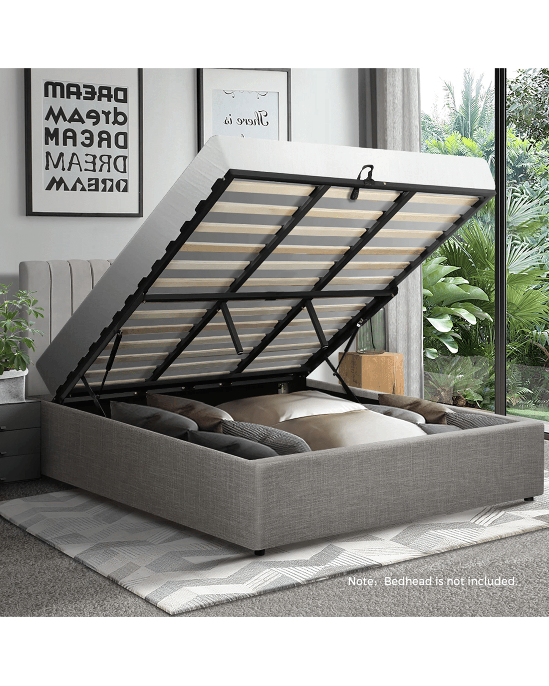 With a hidden storage area that is easily accessed by simple gas lift function, you'll find ample amounts of space to store away items that you do not use daily. Built with solid wooden slats and base, it offers excellent support for the perfect night's sleep.