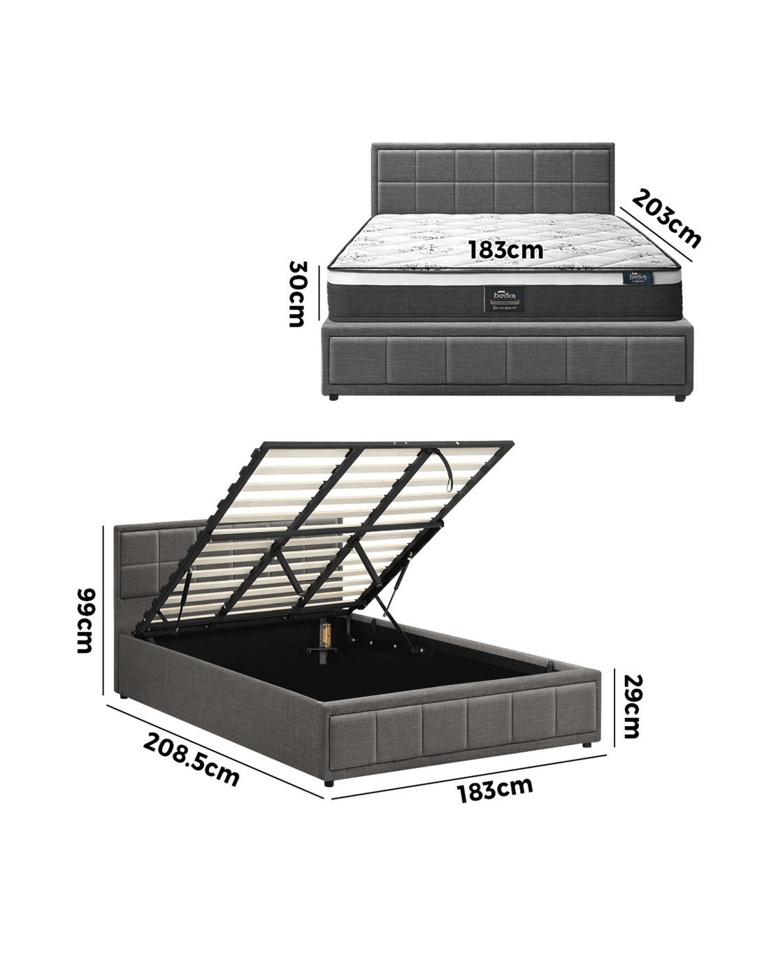 Sold by Kamprad's Oikos 1943Oikiture Bed Frame King Size Gas Lift Storage With Mattress Set BOSS - Grey
