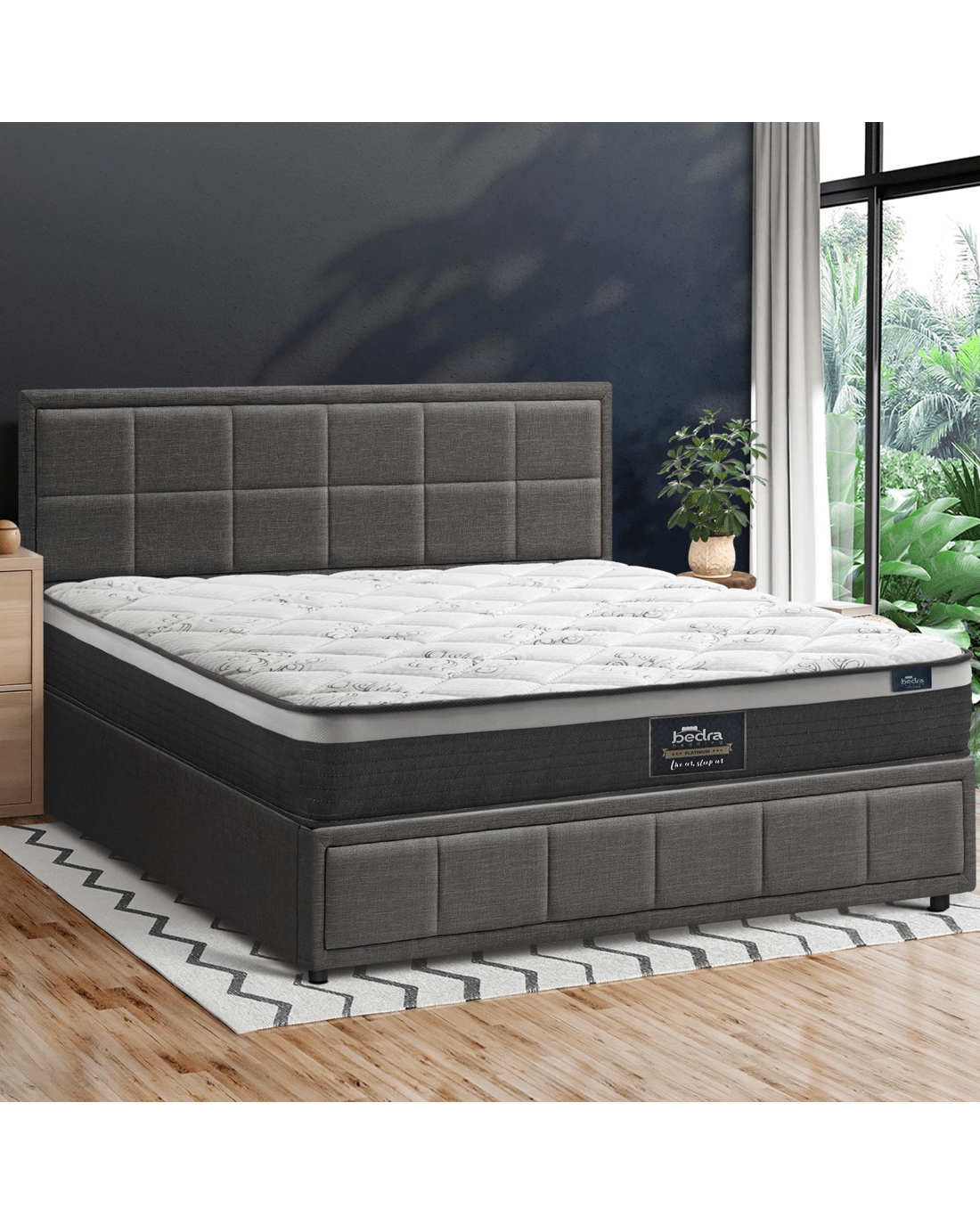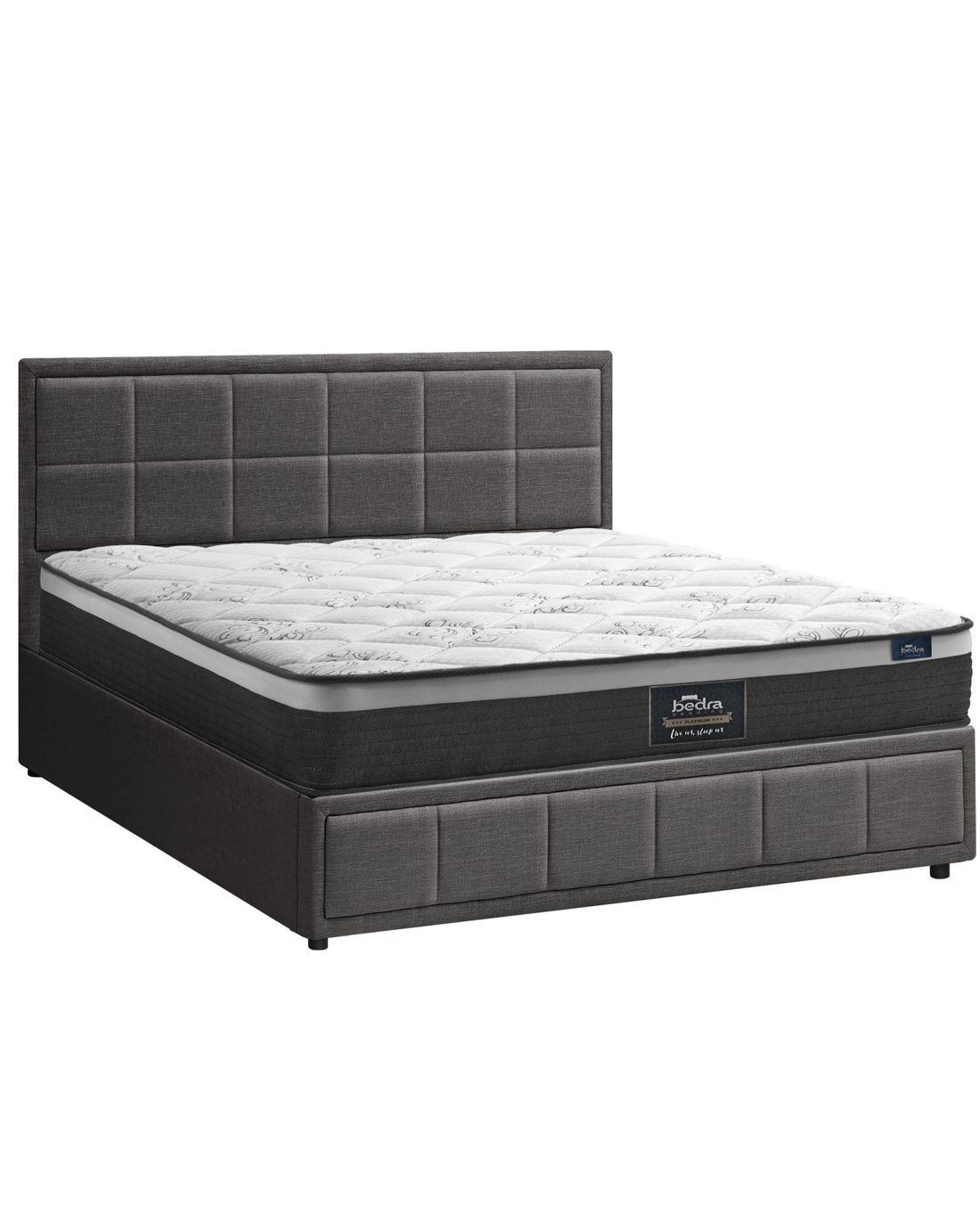 Best of all, the stylish bed frame also includes a comfortable Bedra Bedding Pocket Springs mattress to complete the set. This high-quality spring mattress features all the benefits of an independent pocket springs system that provides reinforced edging, motion isolation, anti-disturbance and full body support. Naturally, the highly breathable mattress complies with all required standards and certification and is hygienically safe from top to bottom and everything else in between.