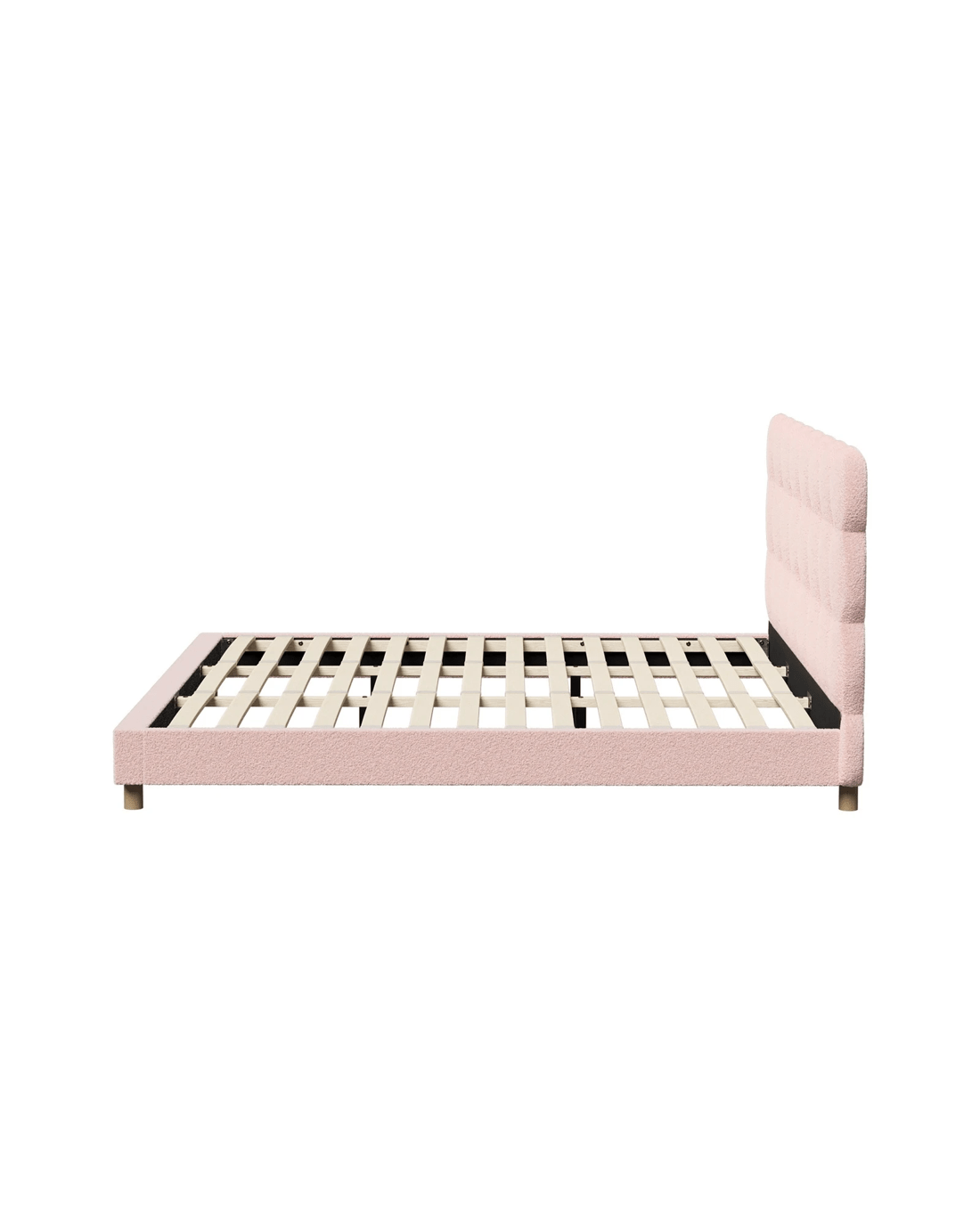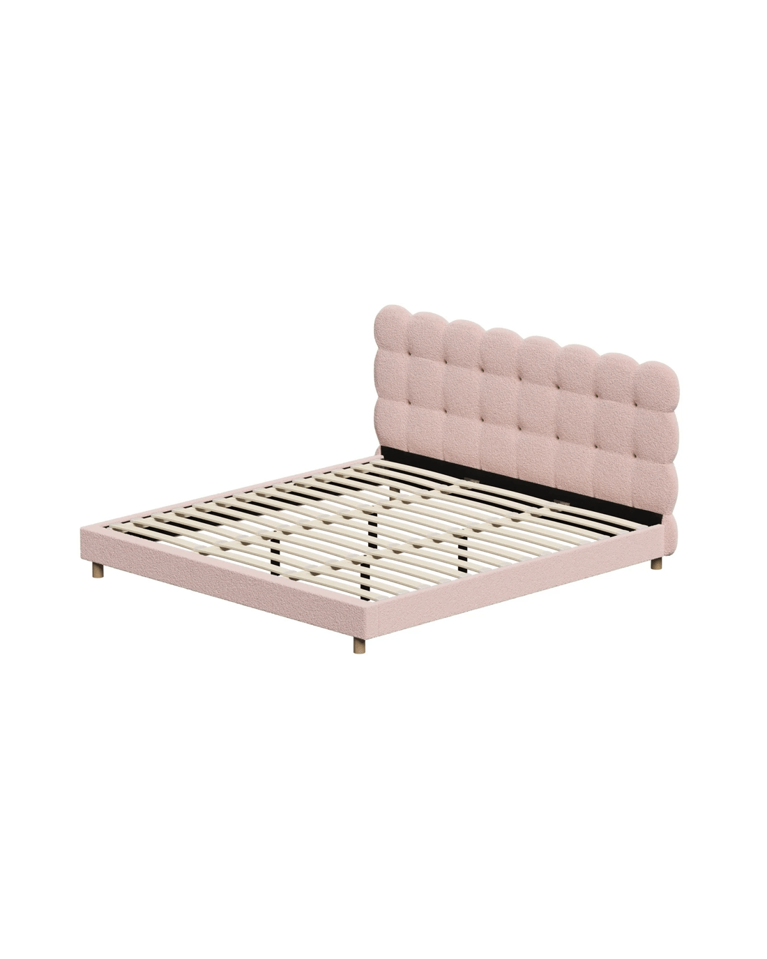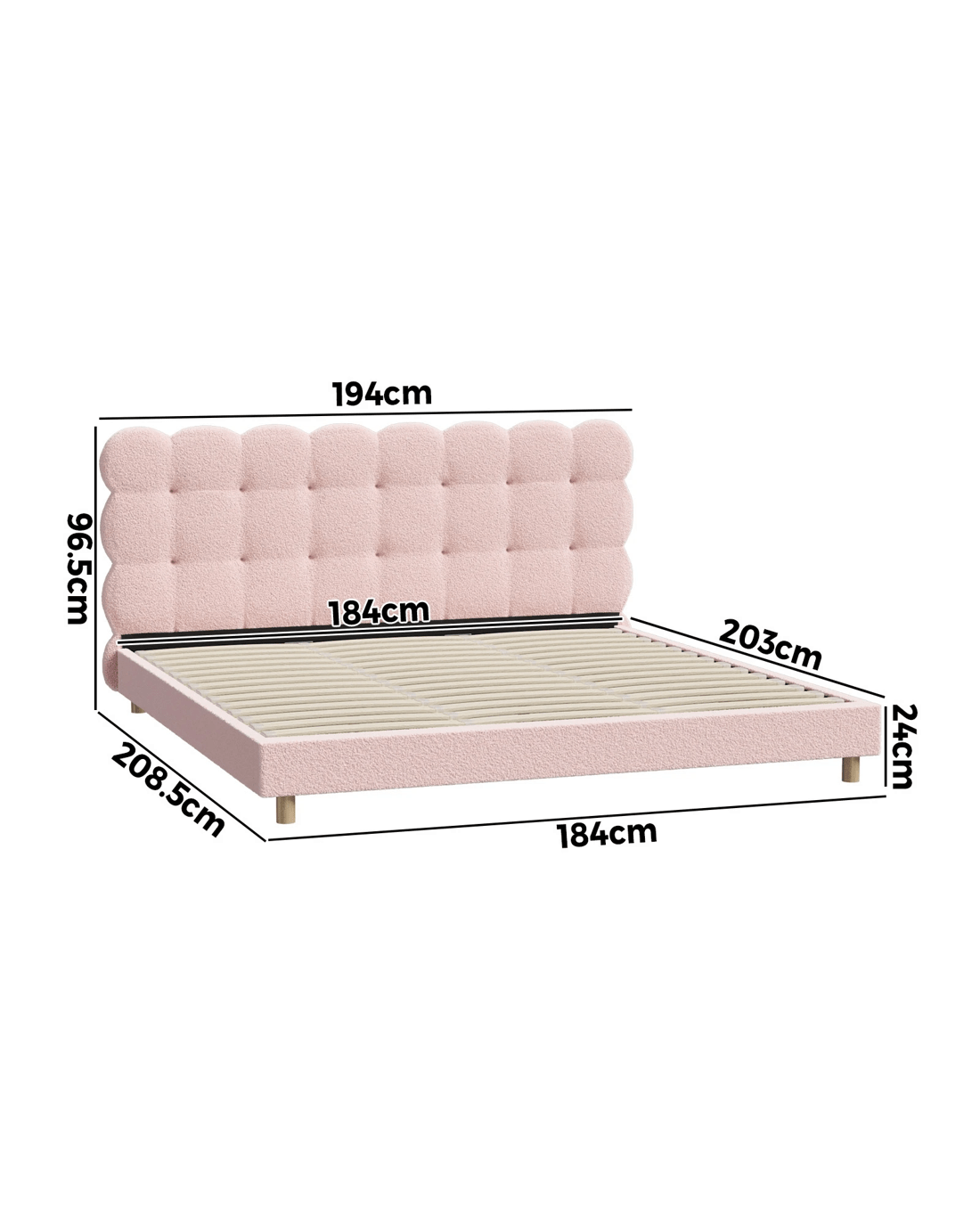 Sold by Kamprad's Oikos 1943Oikiture Bed Frame King Size Tufted Bedhead Boucle Fabric - Pink