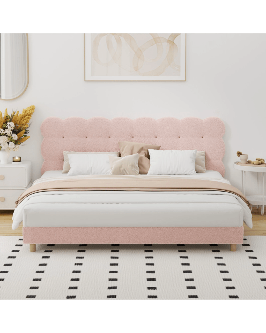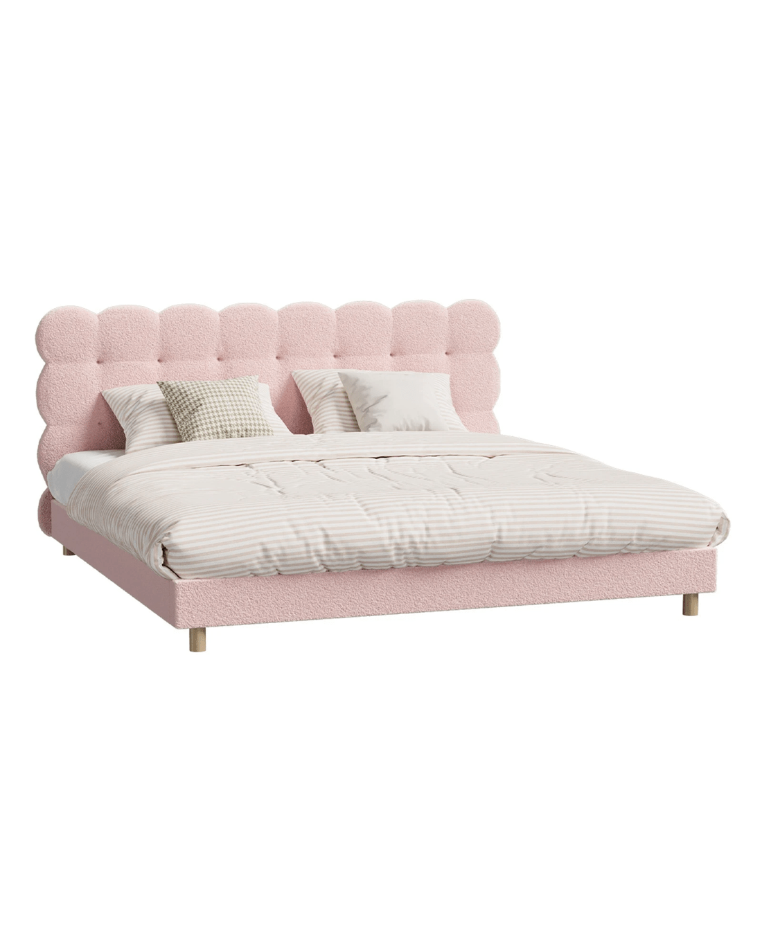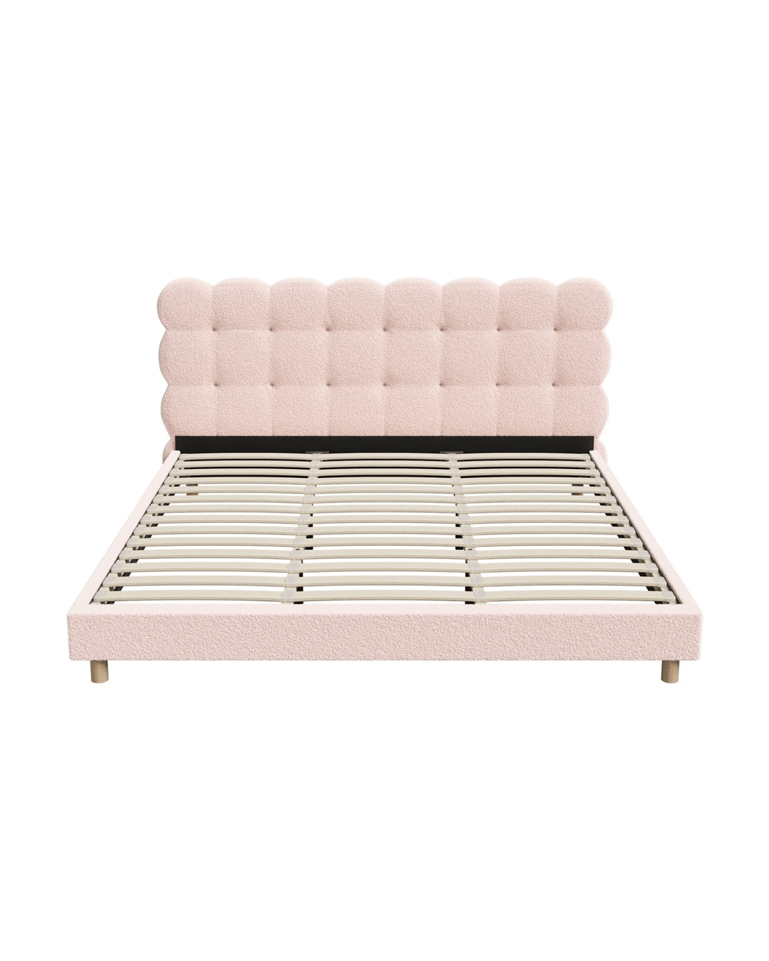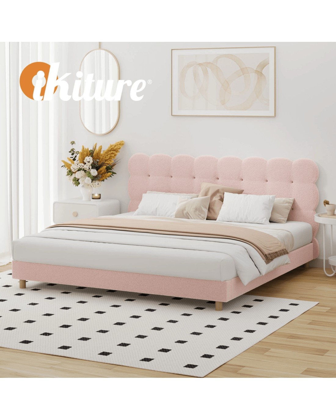 Sold by Kamprad's Oikos 1943Oikiture Bed Frame King Size Tufted Bedhead Boucle Fabric - Pink