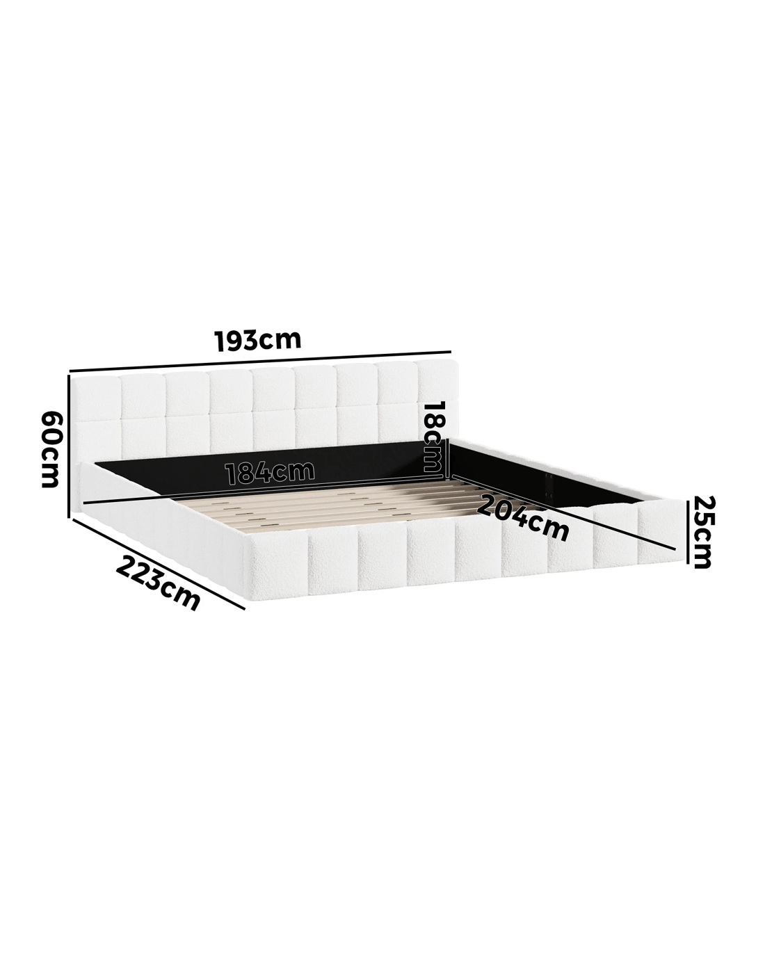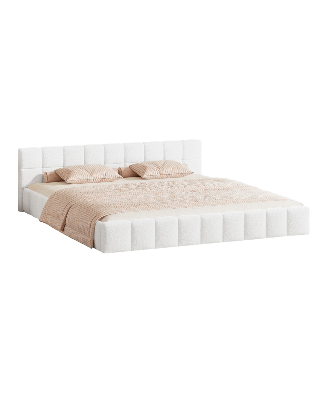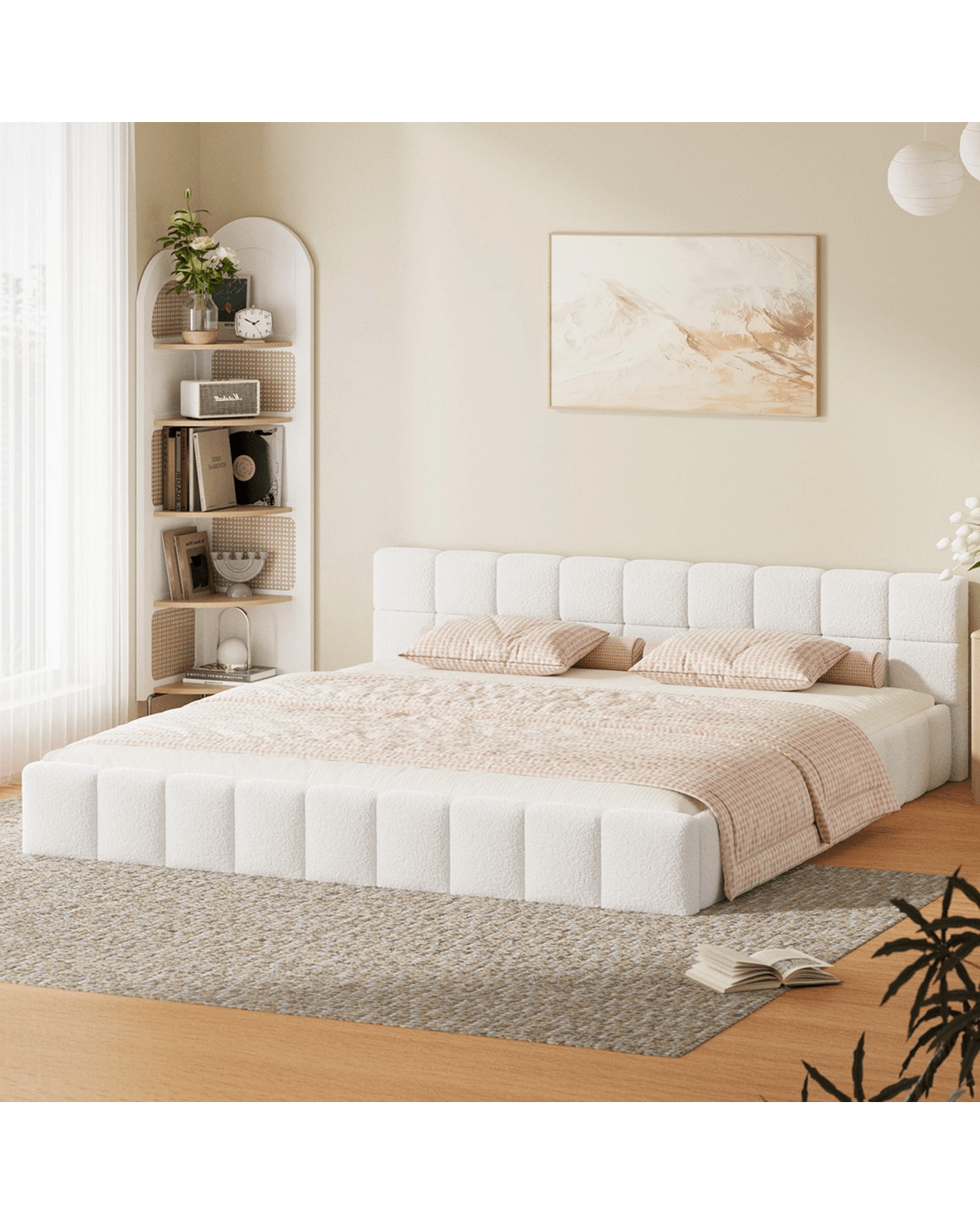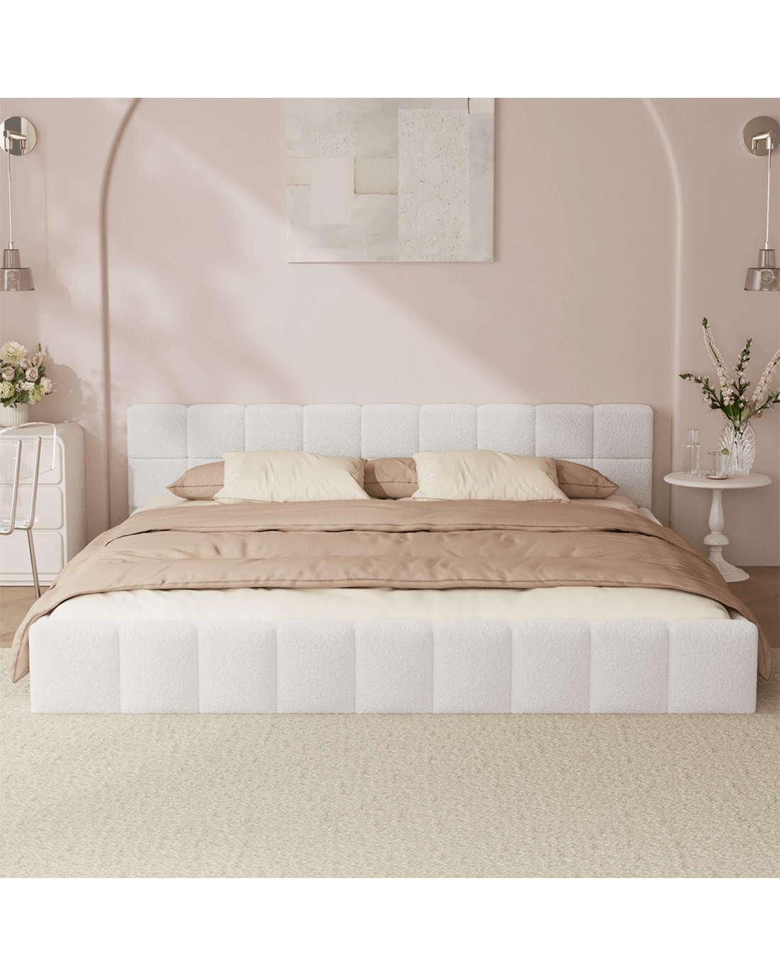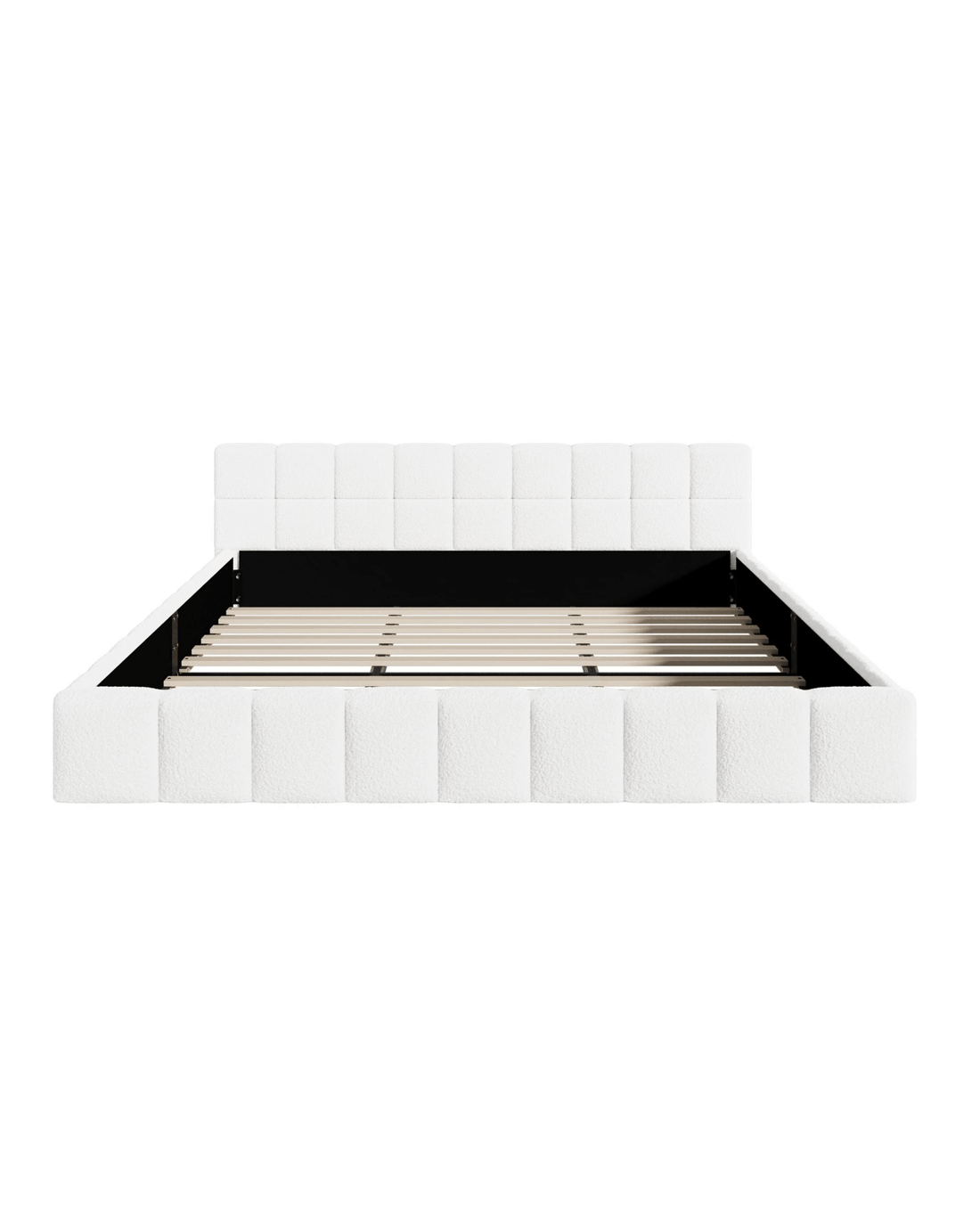 Oikiture Bed Frame King Size Tufted Headboard Boucle - White