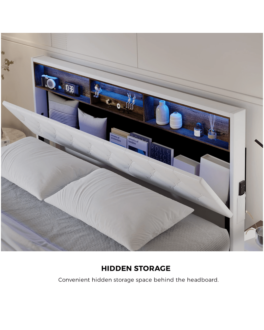 Hidden headboard storage