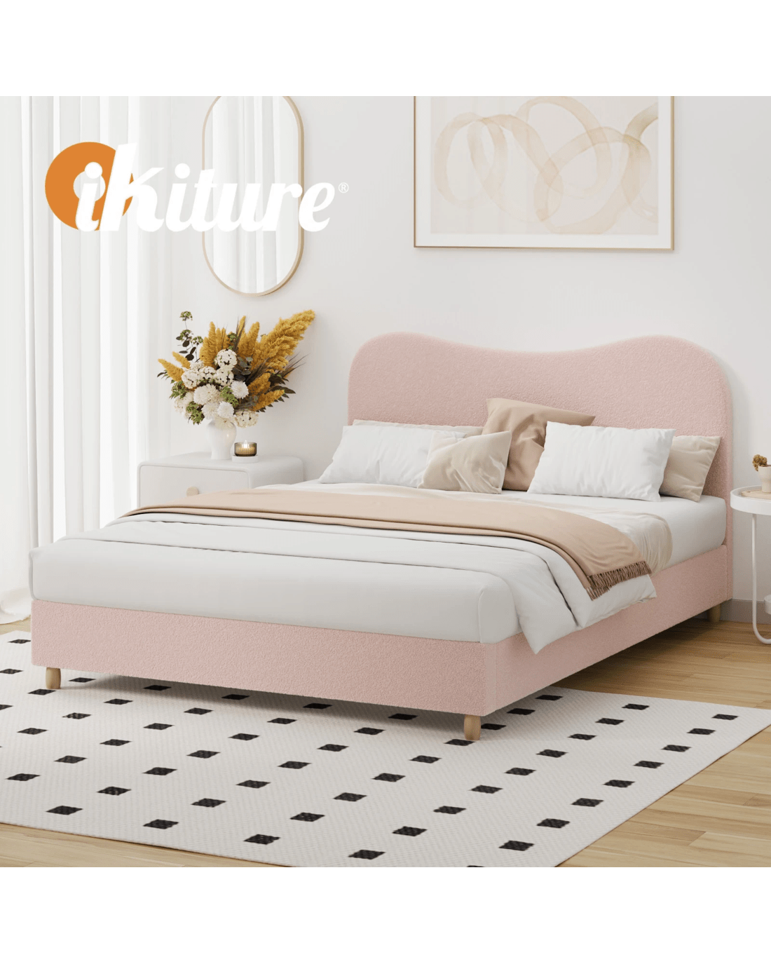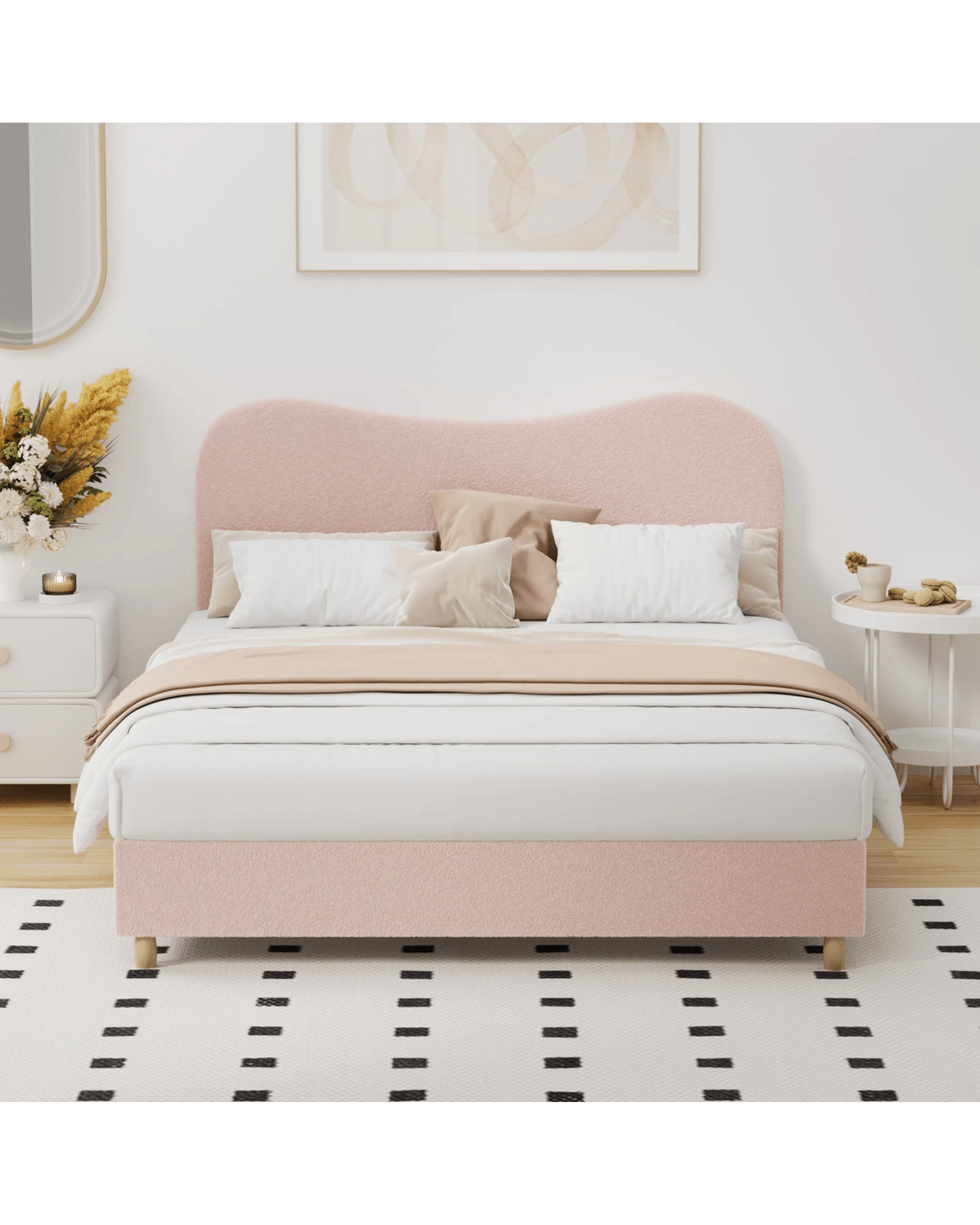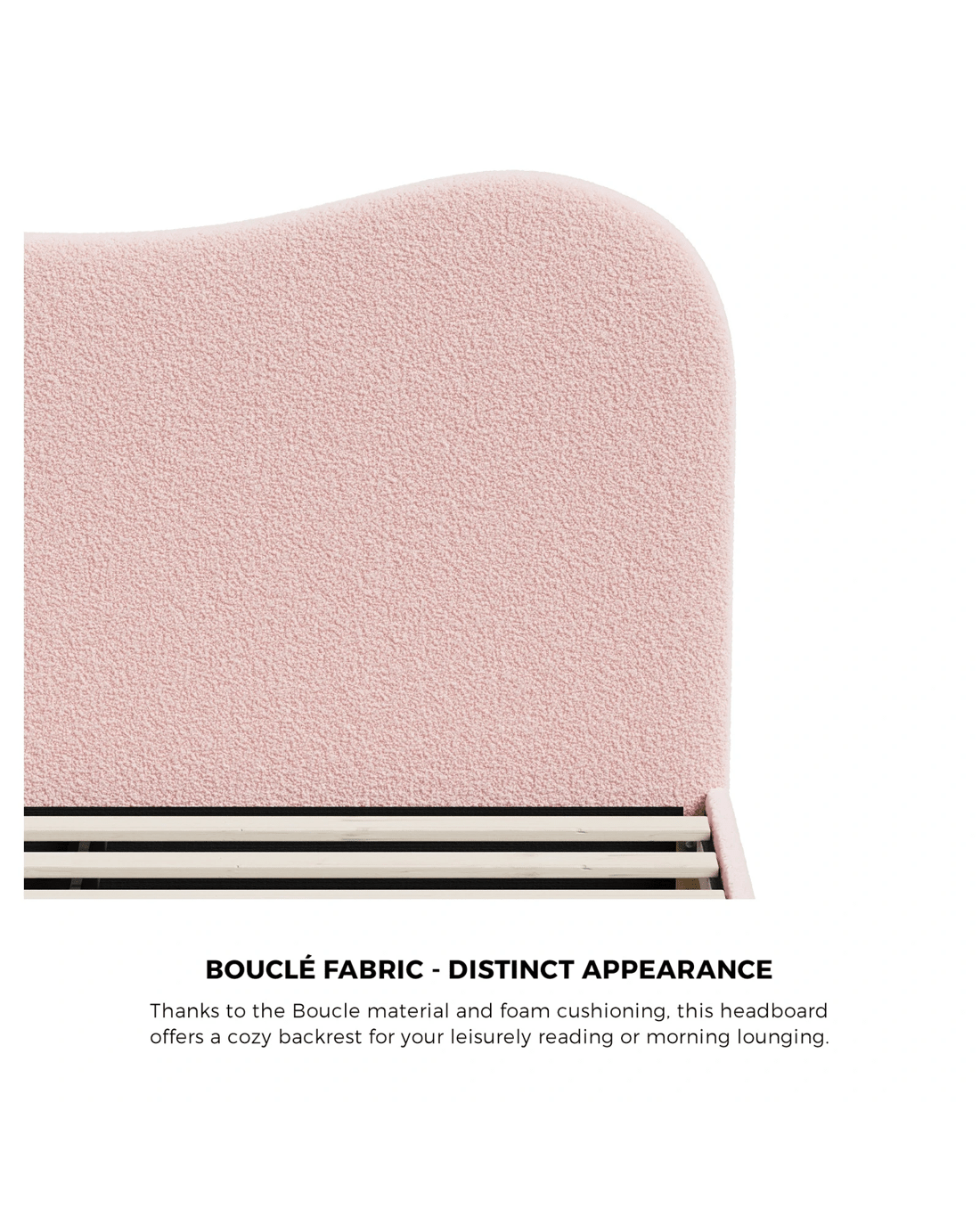 Sold by Kamprad's Oikos 1943Oikiture Bed Frame Queen Size Boucle Cloud Shape Headboard - Pink