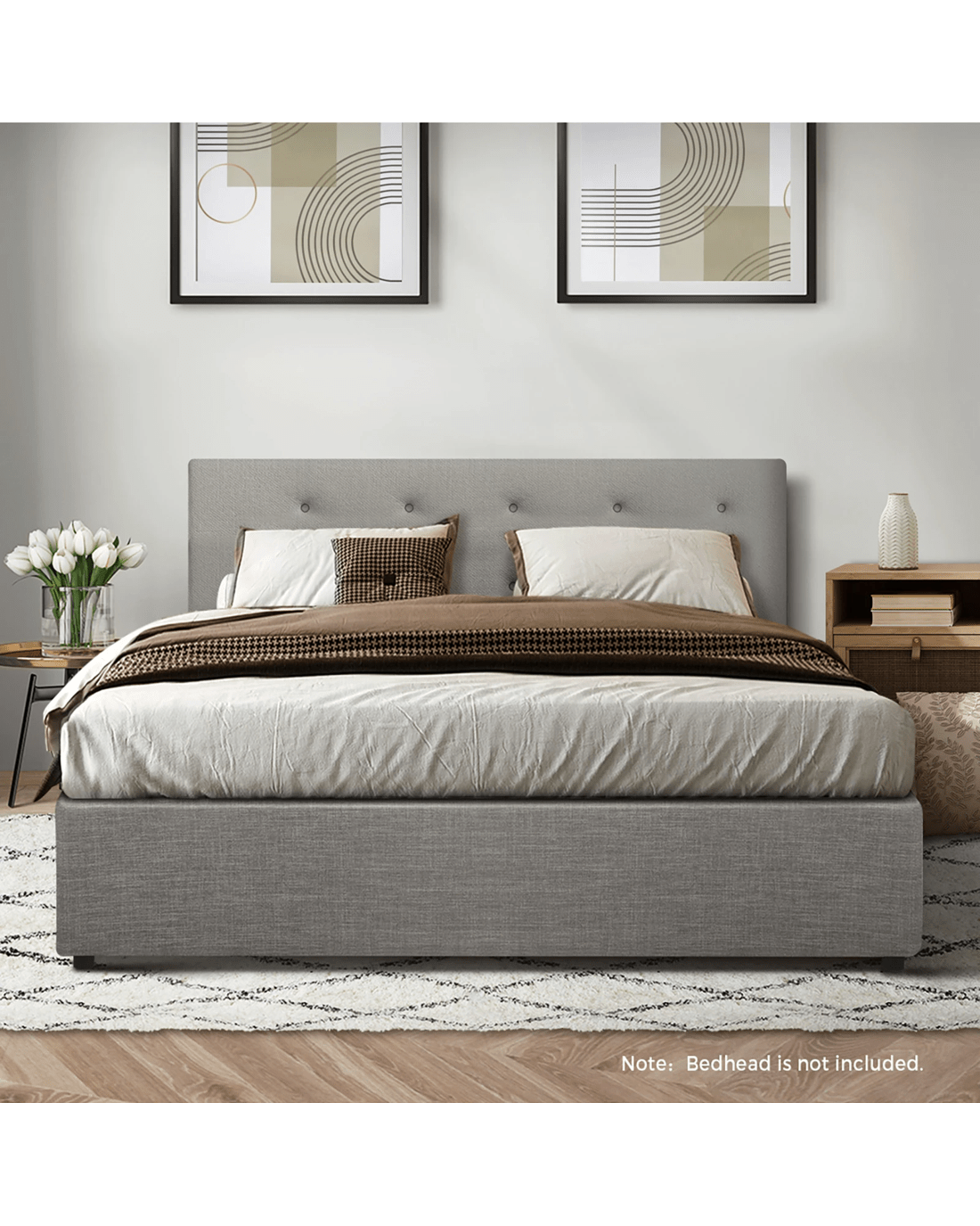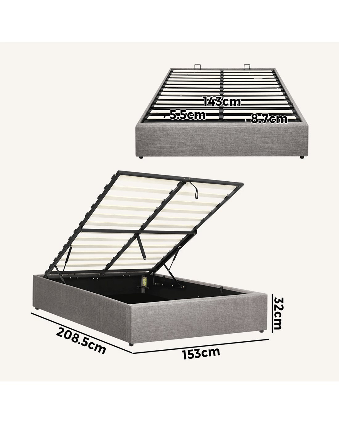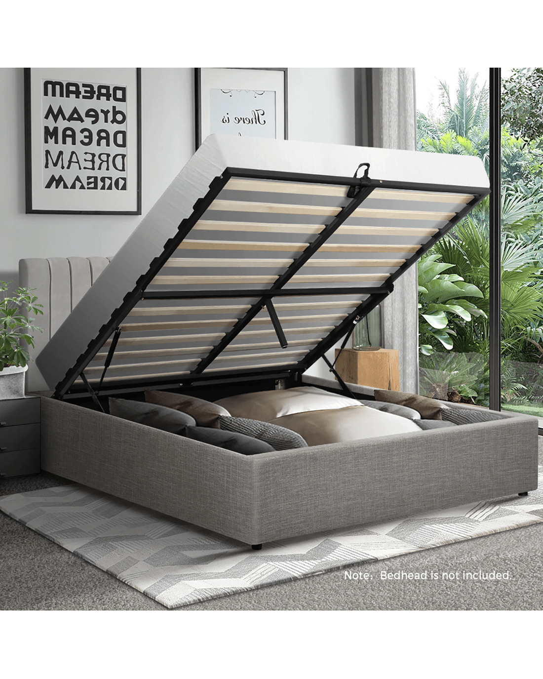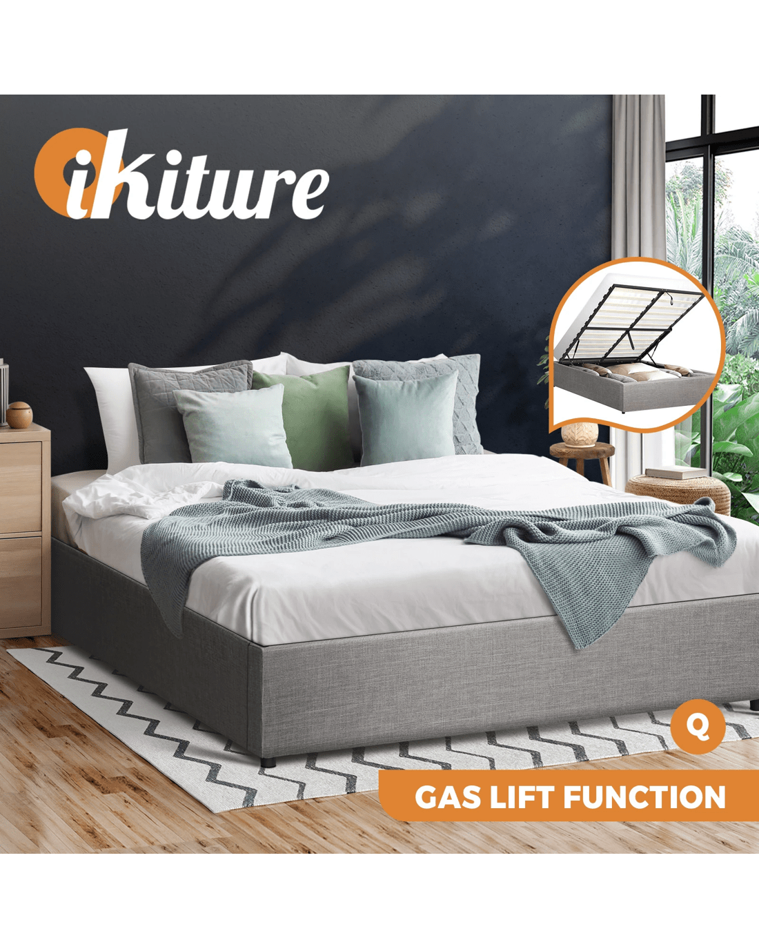 Sold by Kamprad's Oikos 1943Oikiture Bed Frame Queen Size Gas Lift Base With Storage - Grey