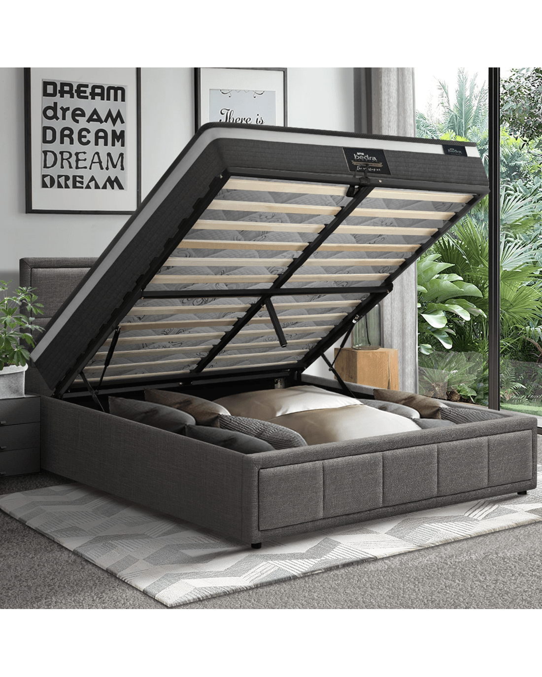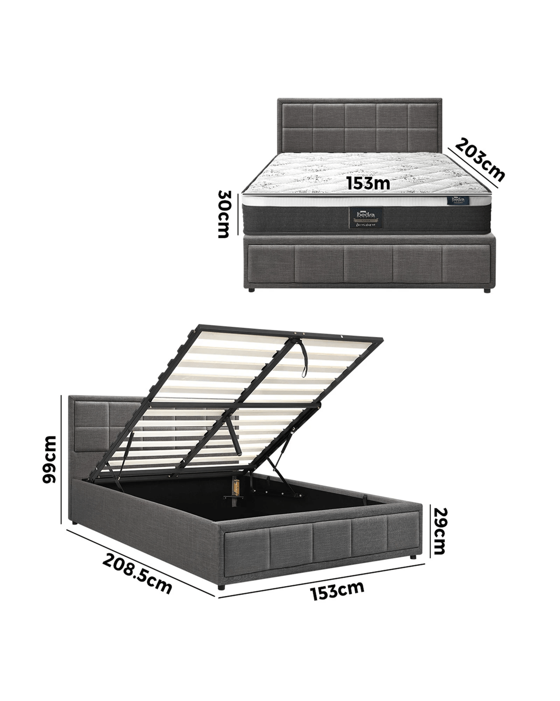 Sold by Kamprad's Oikos 1943Oikiture Bed Frame Queen Size Gas Lift Storage With Mattress Set BOSS - Grey