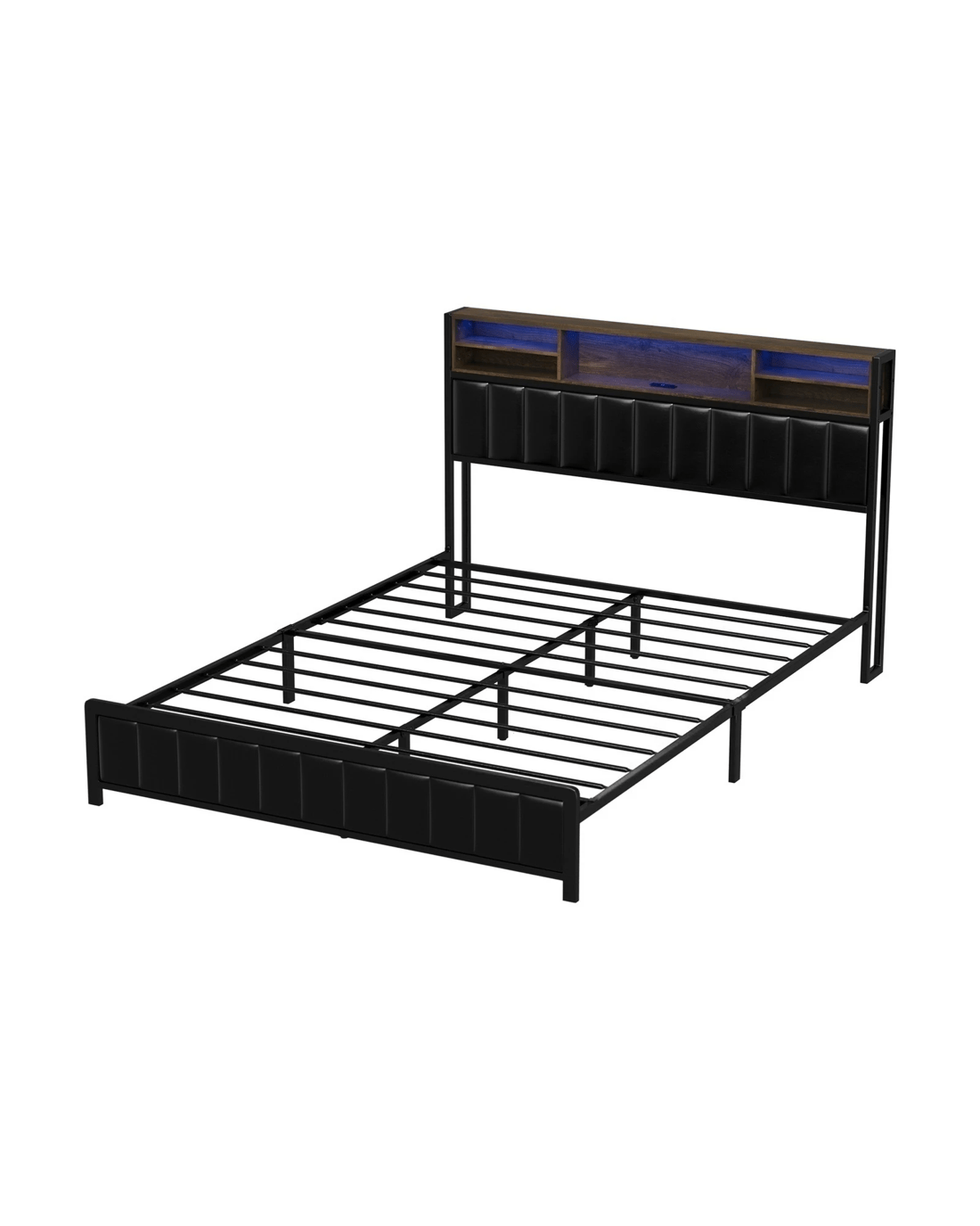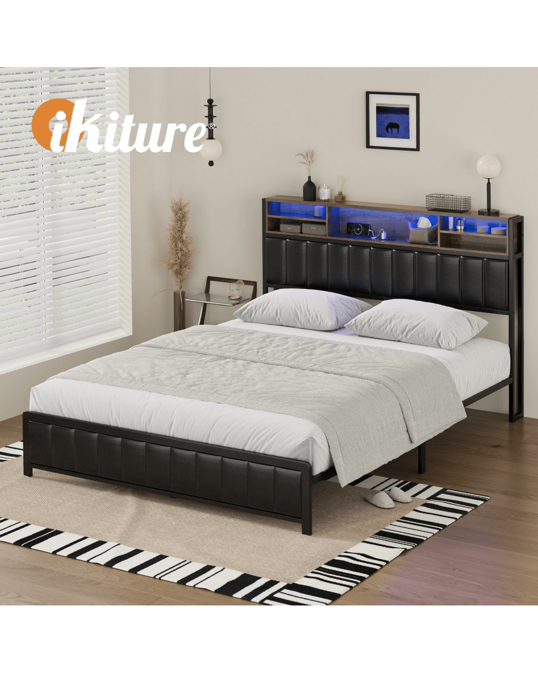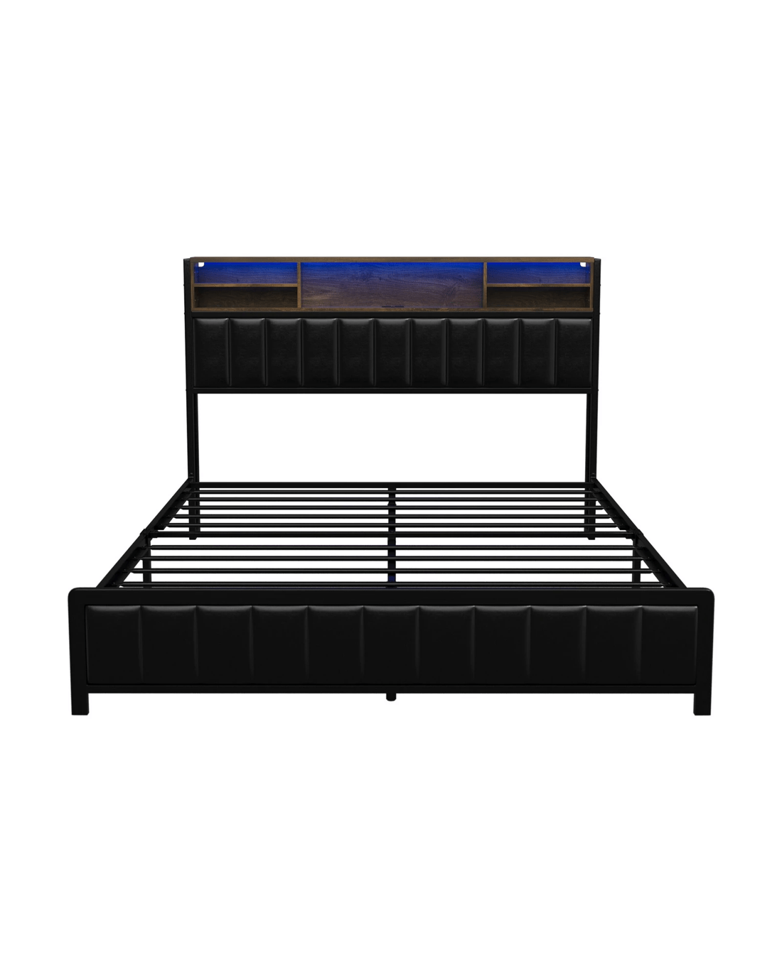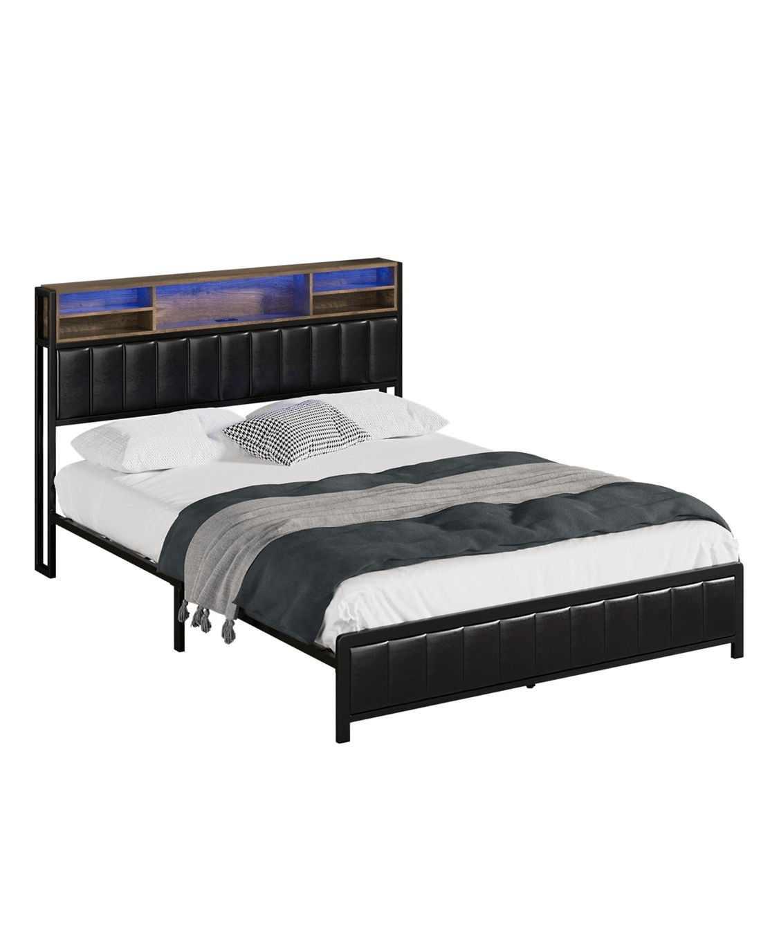 Sold by Kamprad's Oikos 1943Oikiture Bed Frame Queen Size LED Storage Headboard With USB Charge - Black