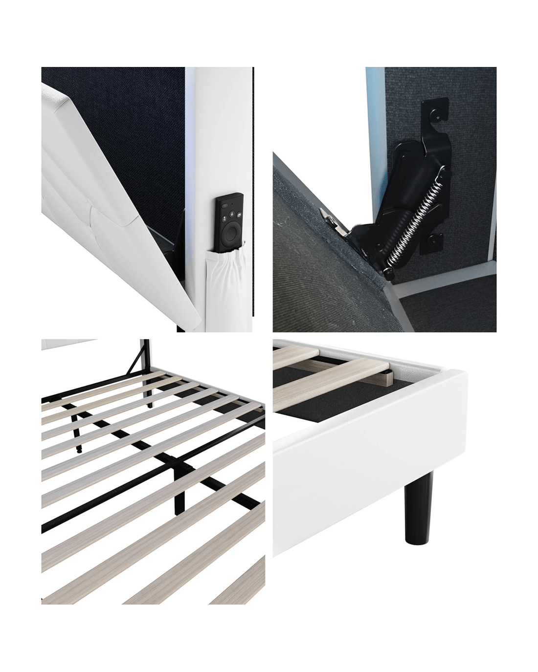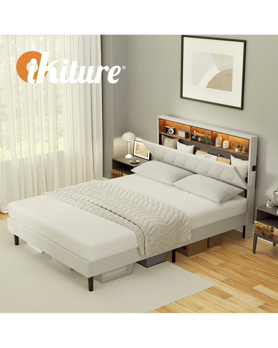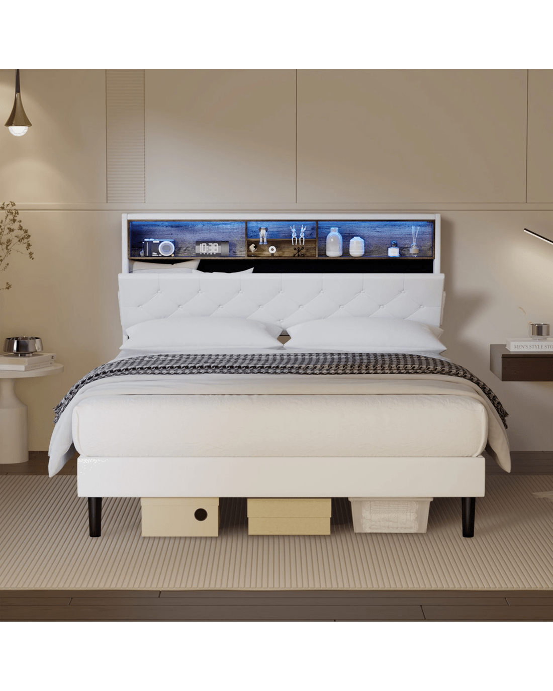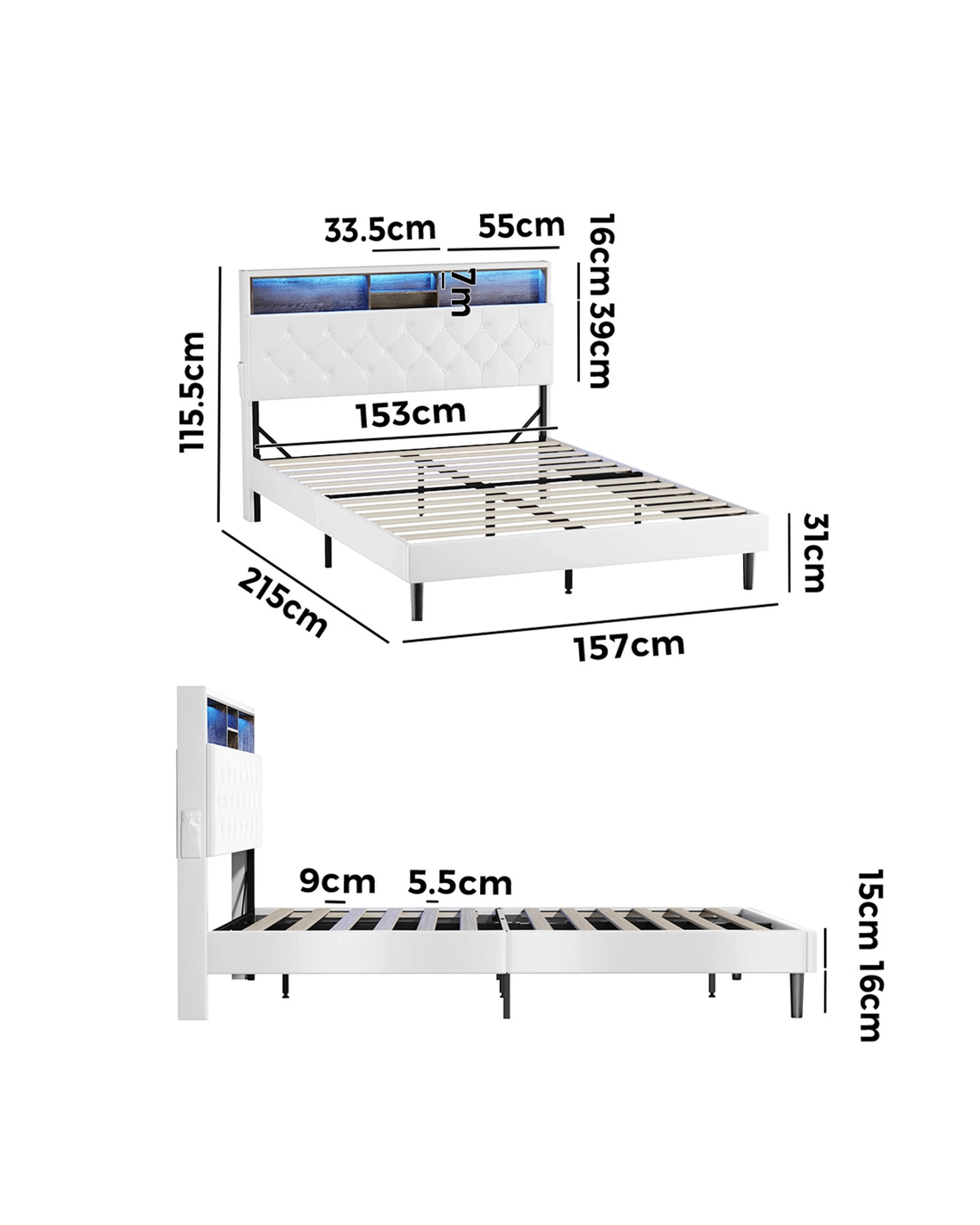 Sold by Kamprad's Oikos 1943Oikiture Bed Frame Queen Size with LED Storage Bedhead - White