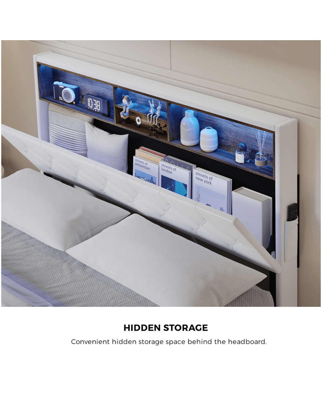 Hidden headboard storage