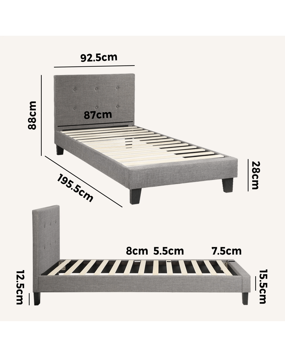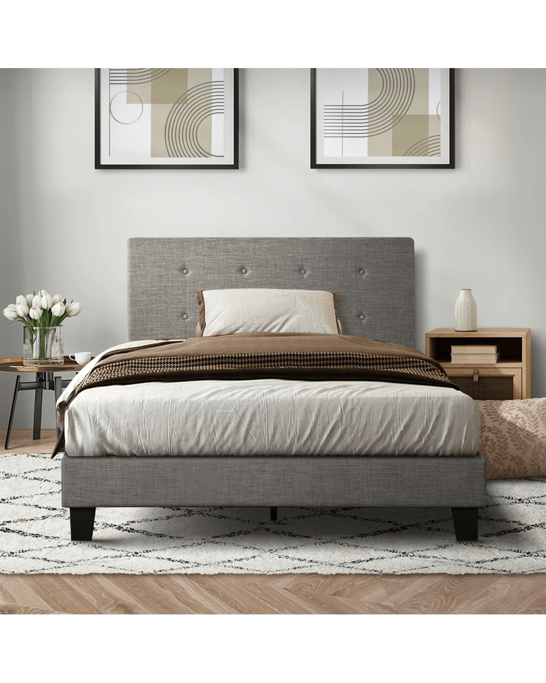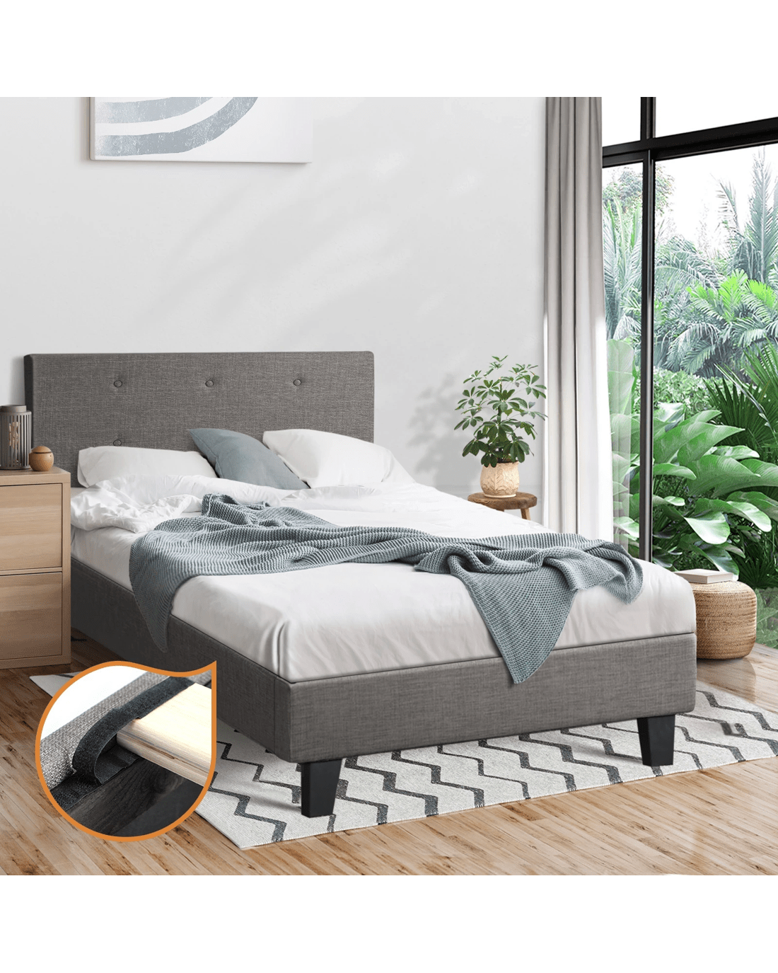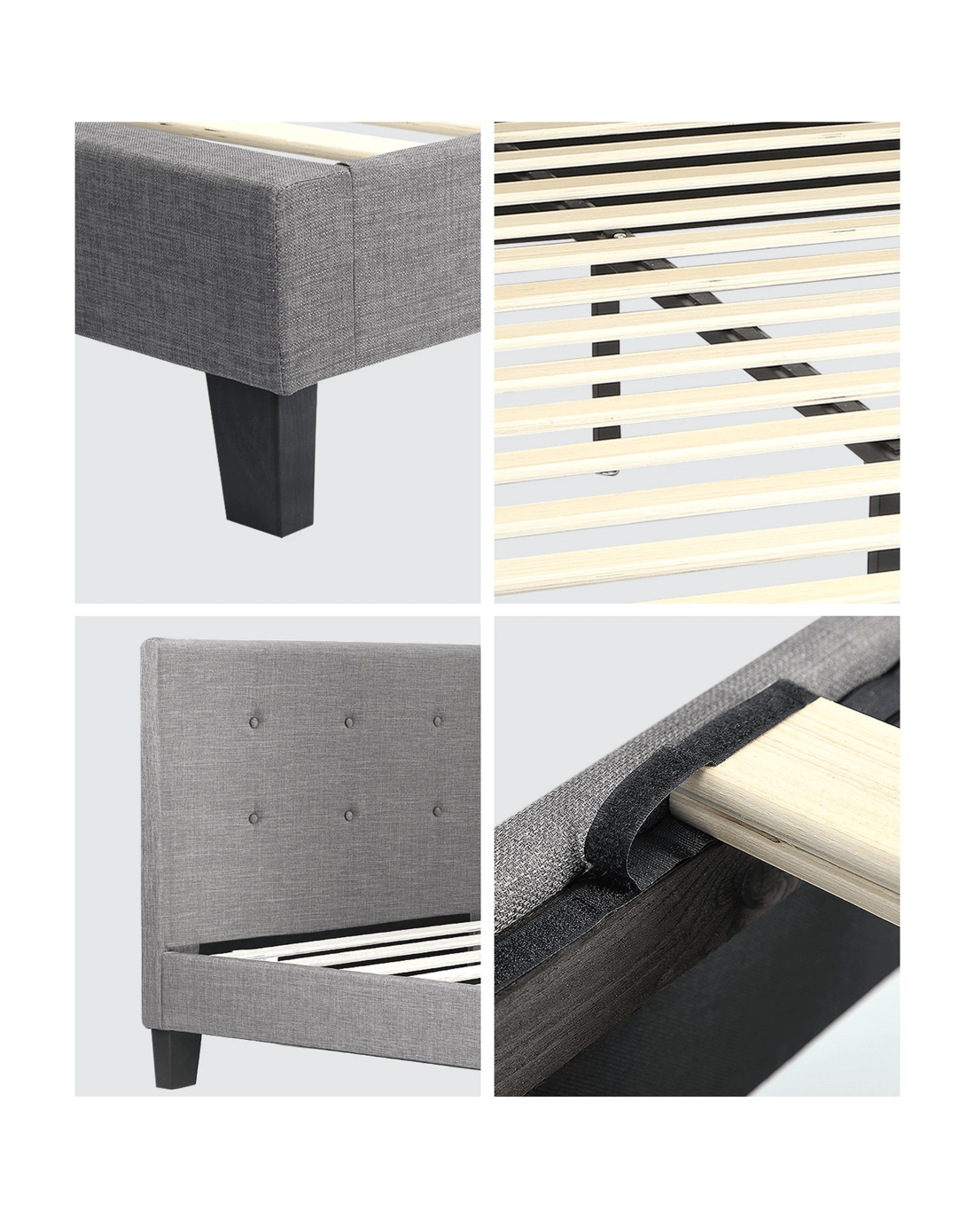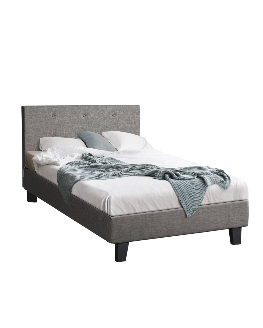 Oikiture Bed Frame Single Size Bed Platform Wooden Fabric - Grey