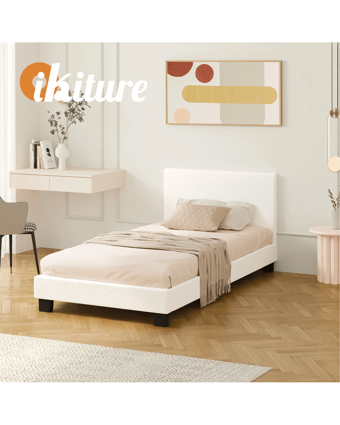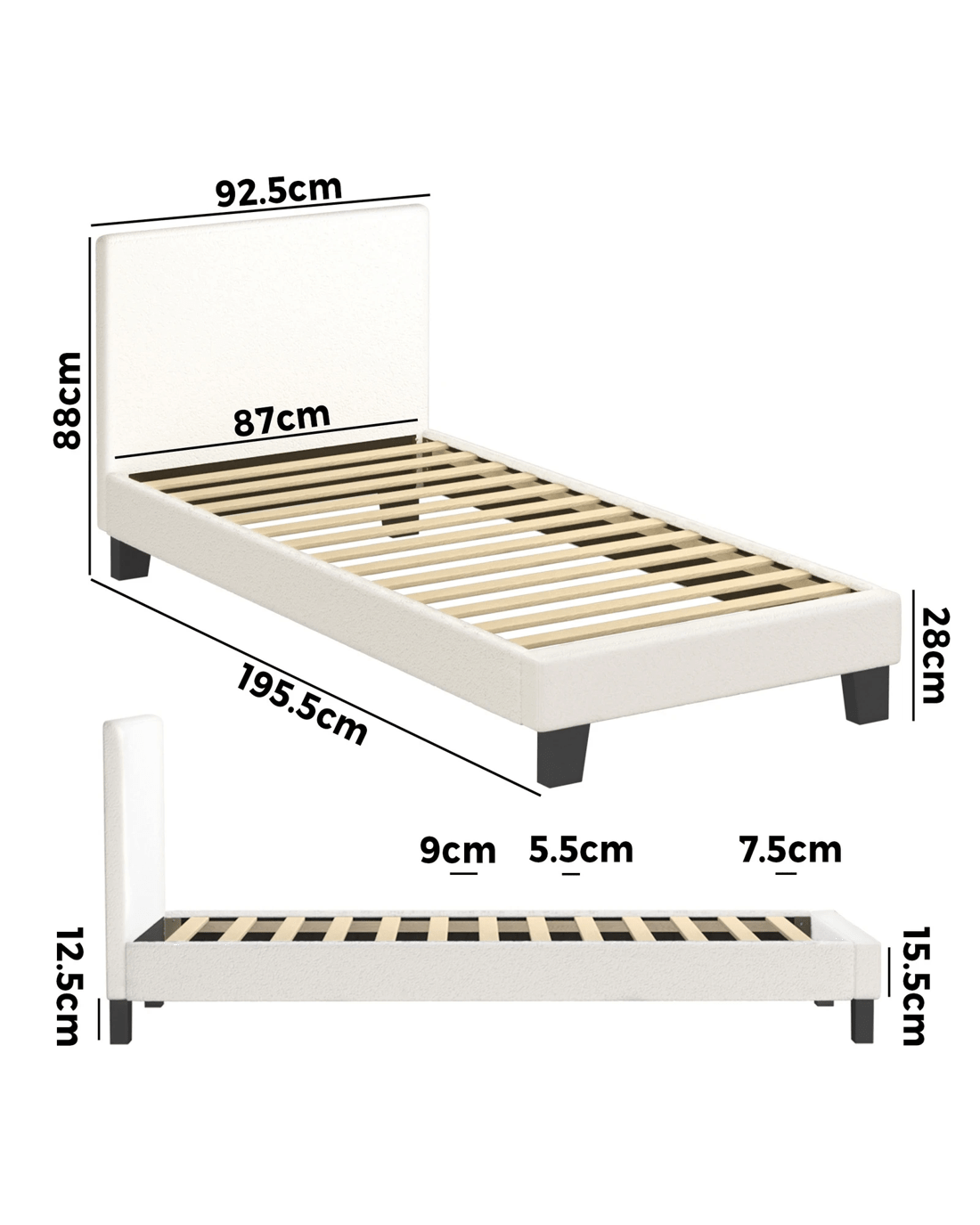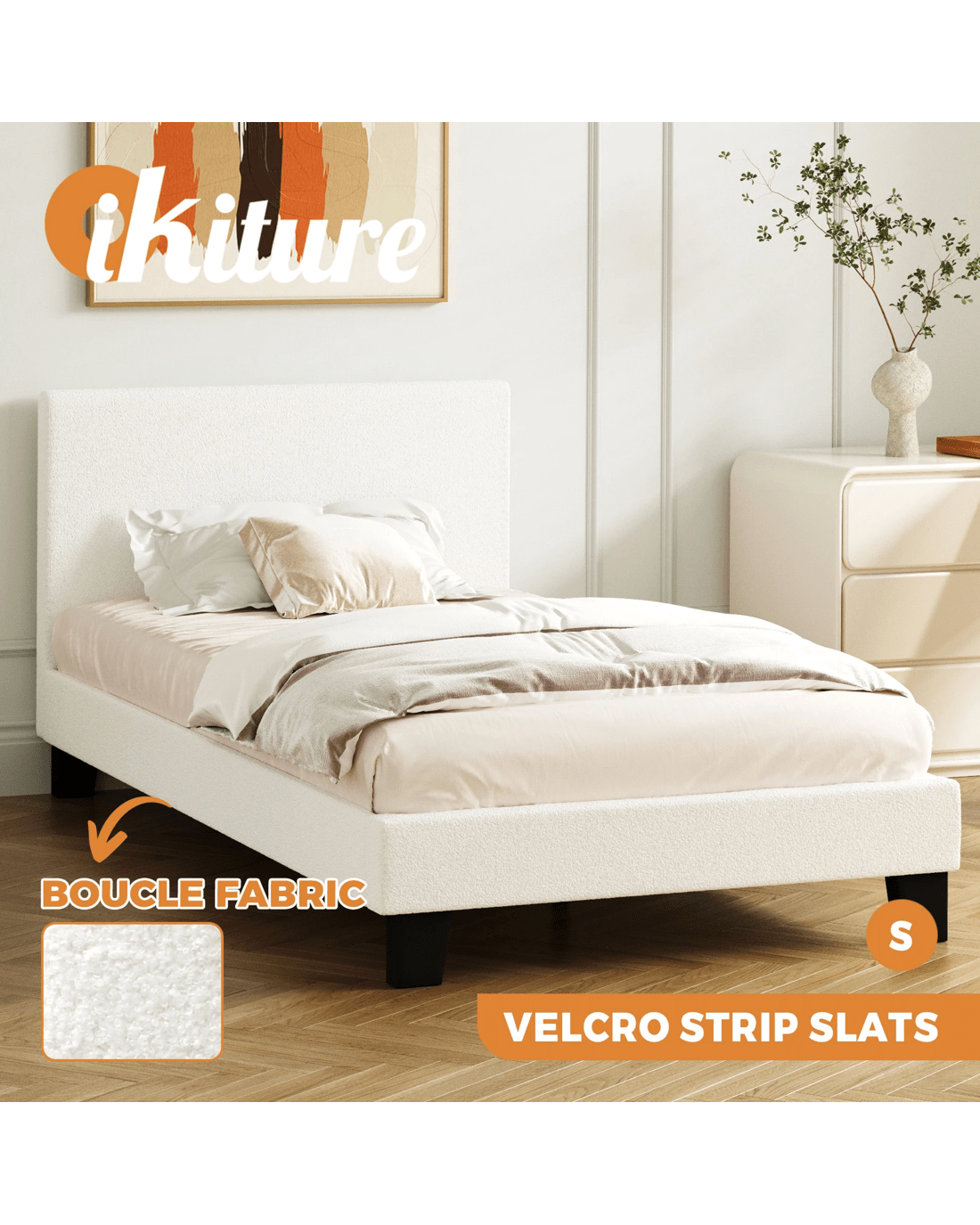 Sold by Kamprad's Oikos 1943Oikiture Bed Frame Single Size Boucle - White