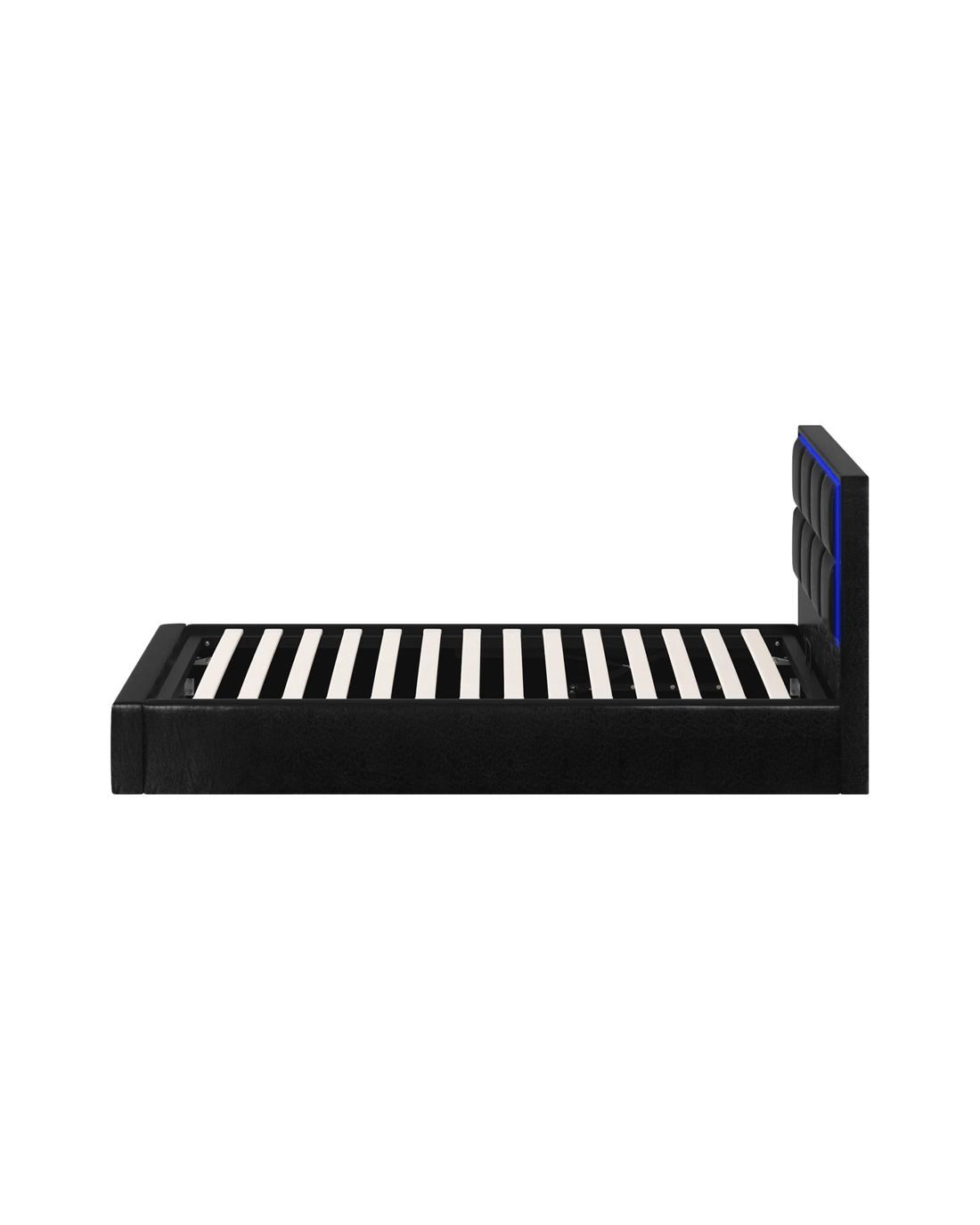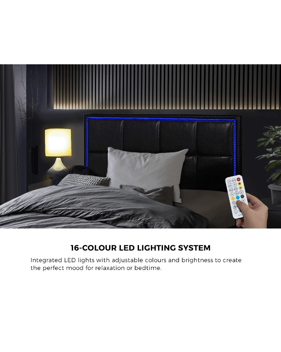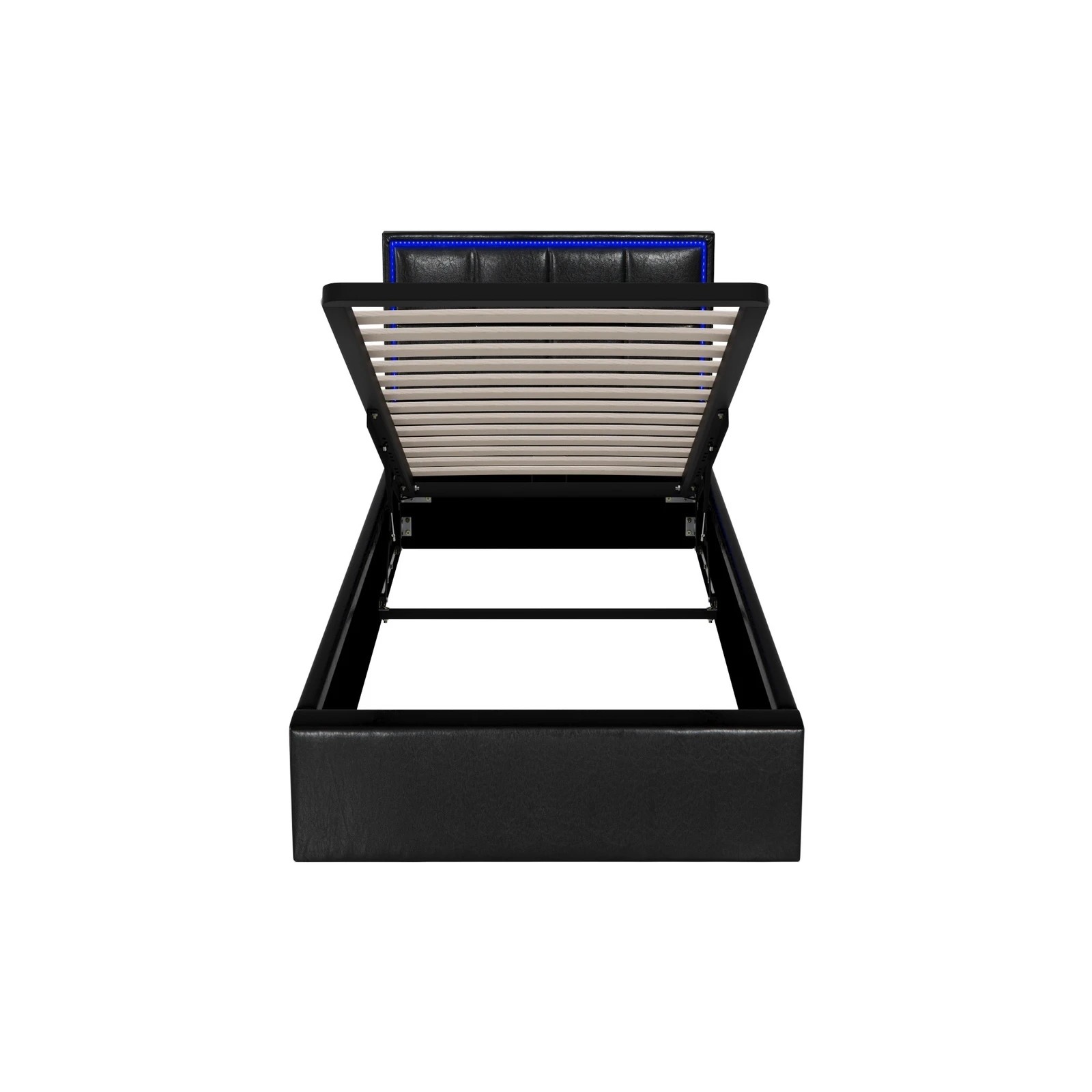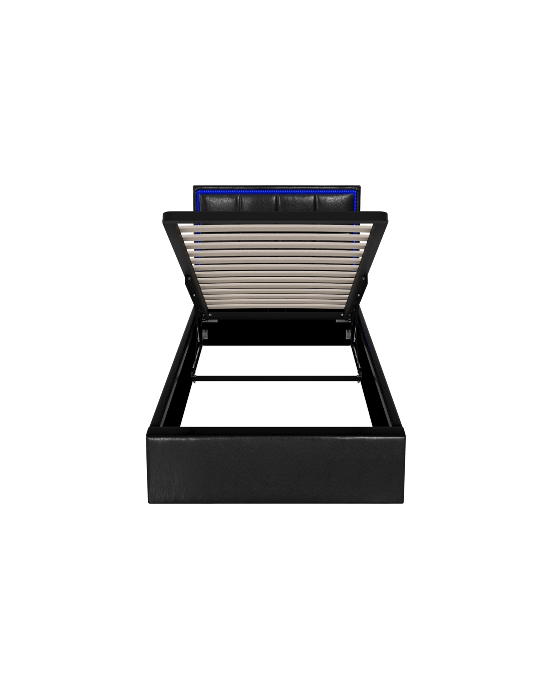 Oikiture Bed Frame Single Size RGB LED Gas Lift Storage Base Leather - Black