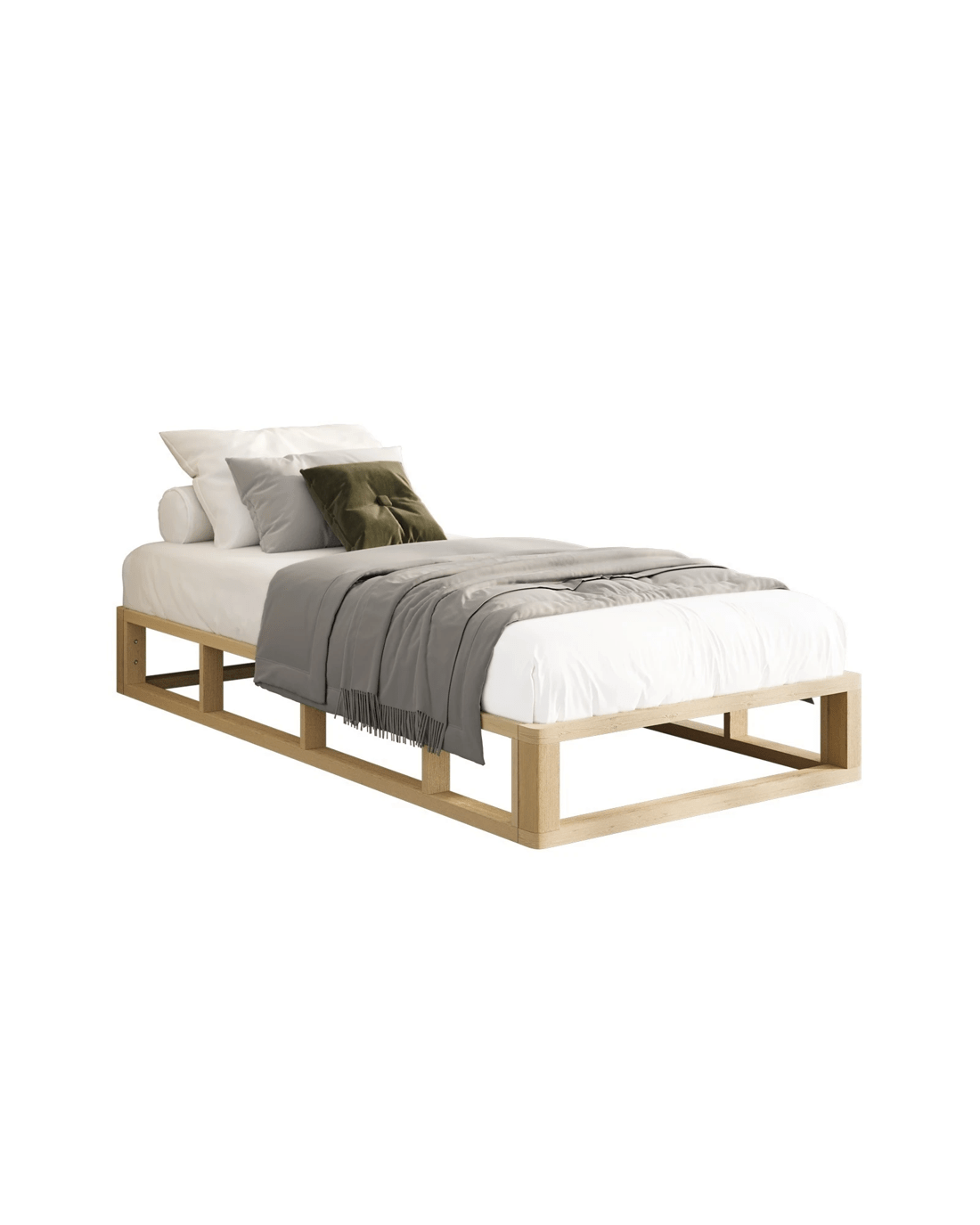 Sold by Kamprad's Oikos 1943Oikiture Bed Frame Single Size Wooden Bed Base Platform Cage-like Base - Natural