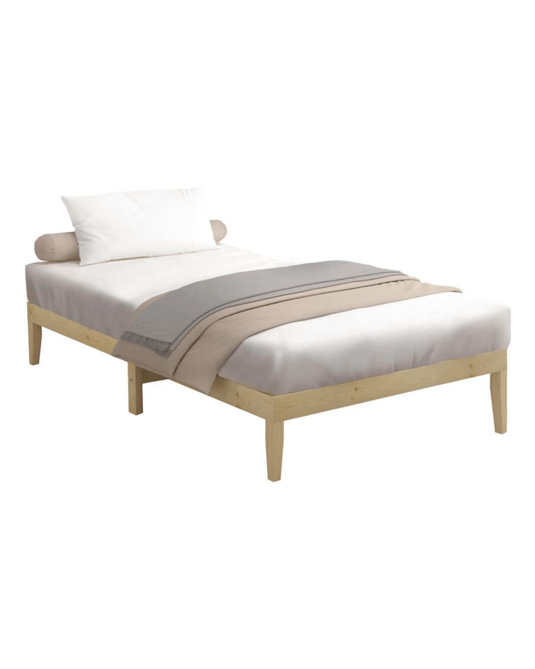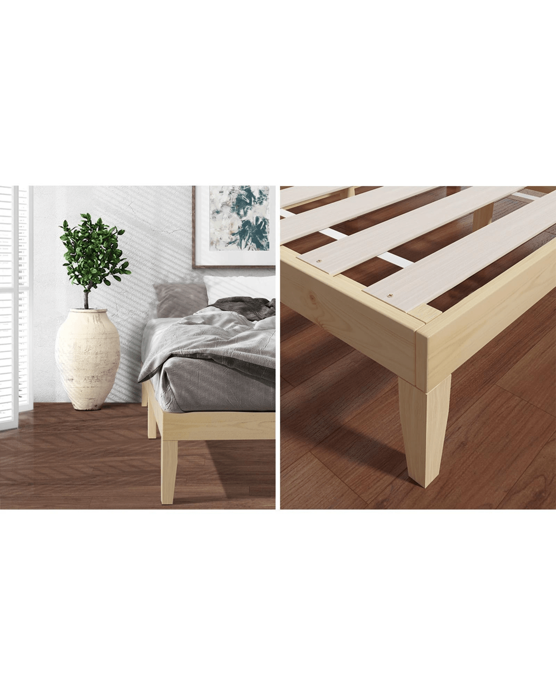 Oikiture Bed Frame Single Size Wooden Pine Timber Bedroom Furniture - Natural
