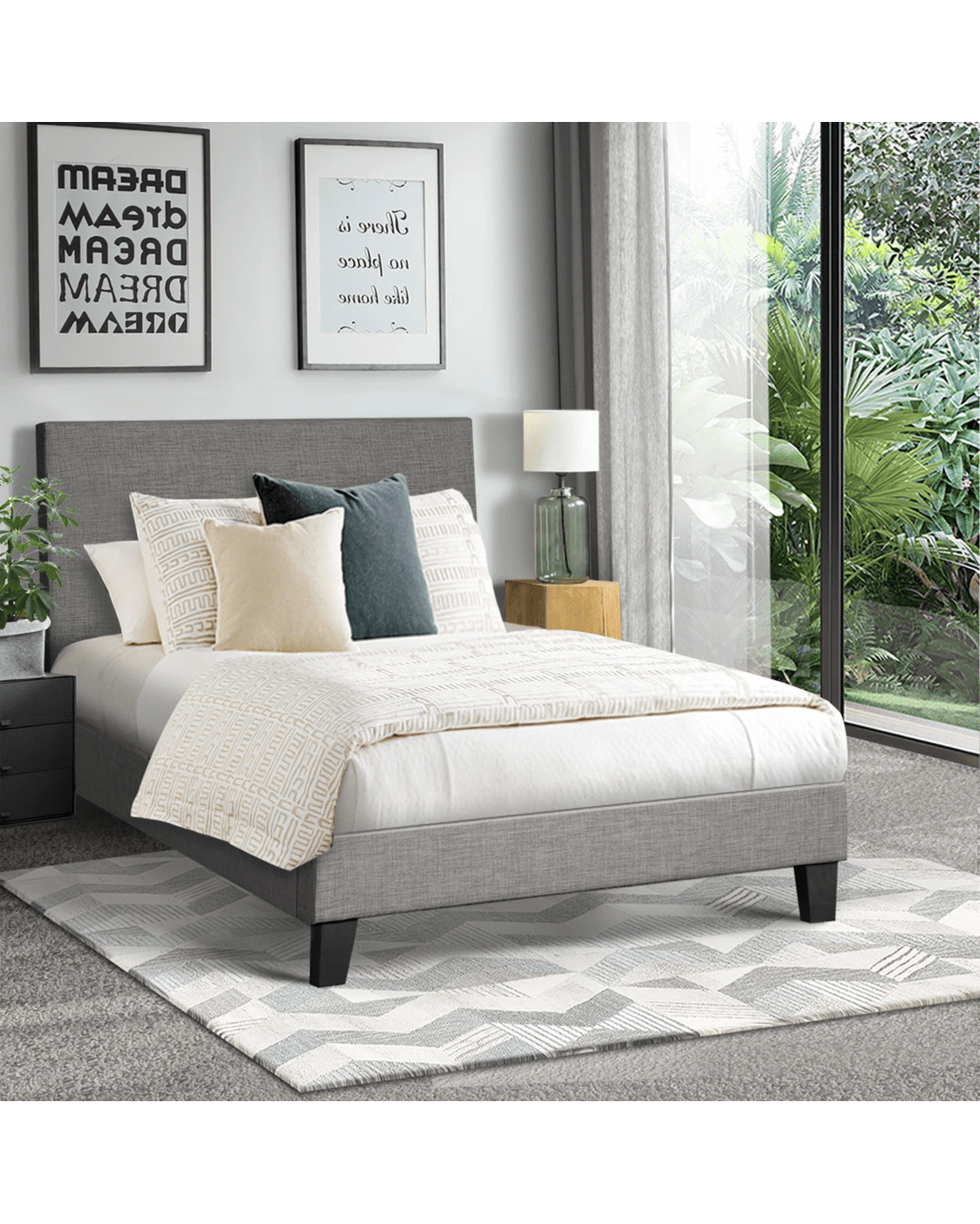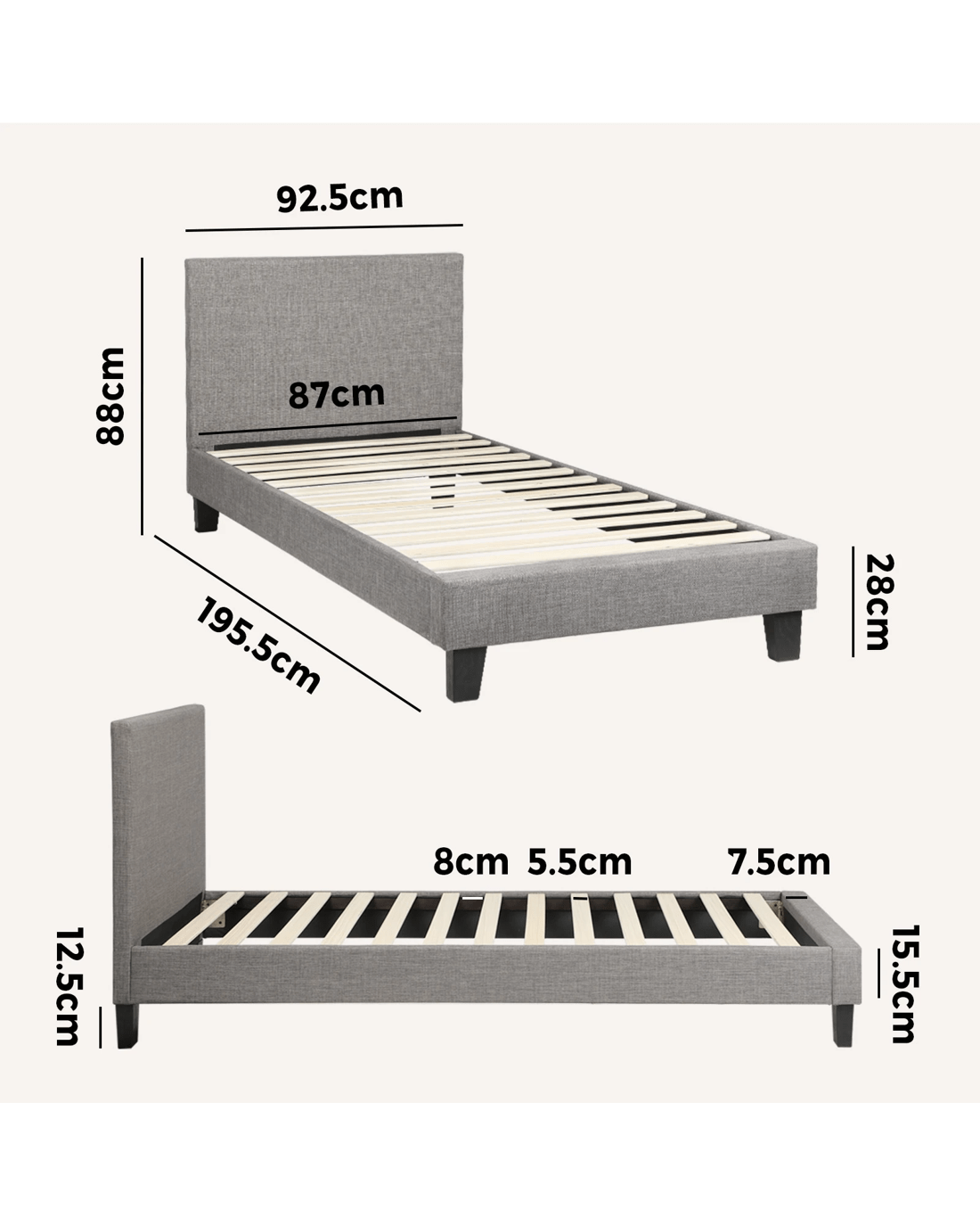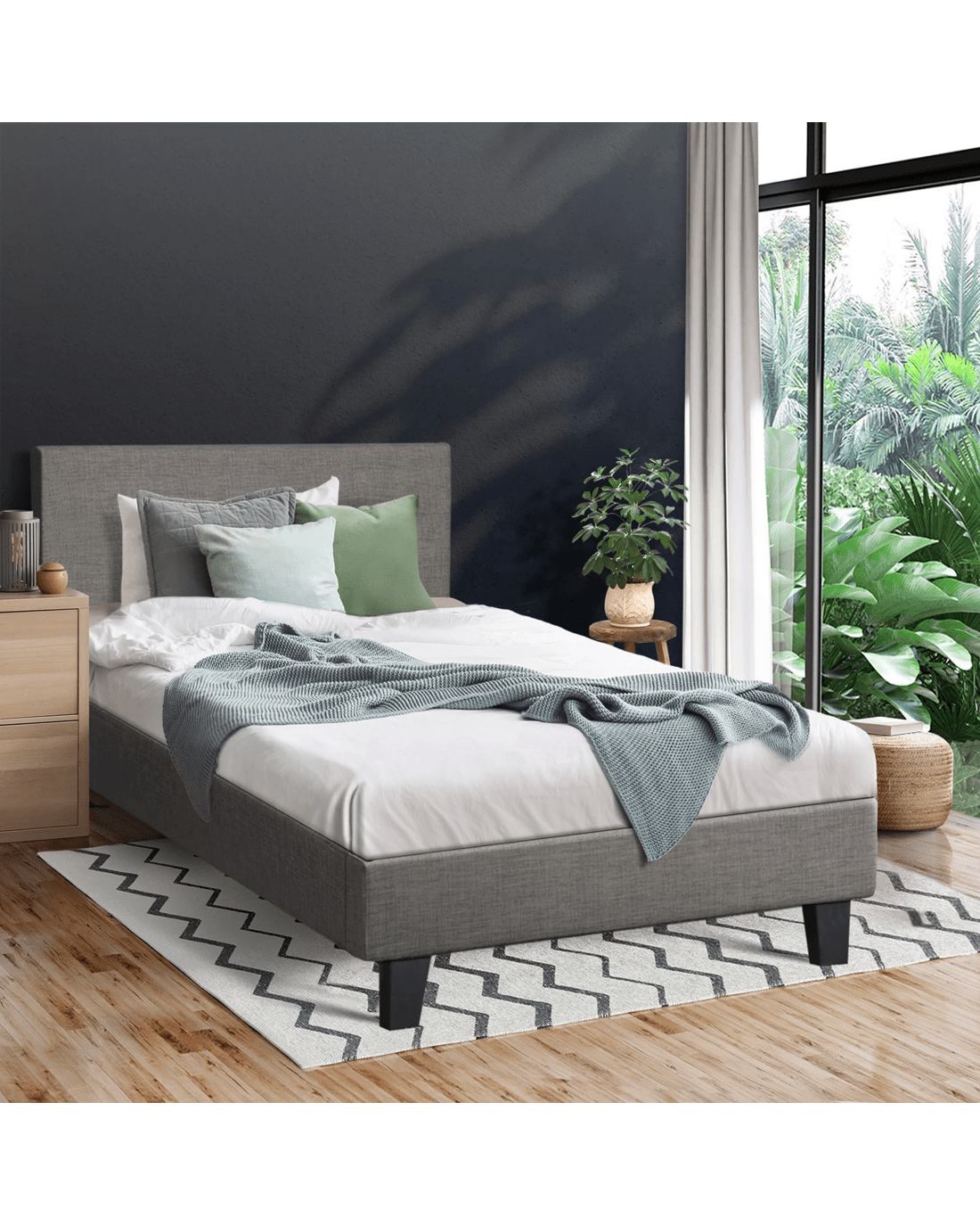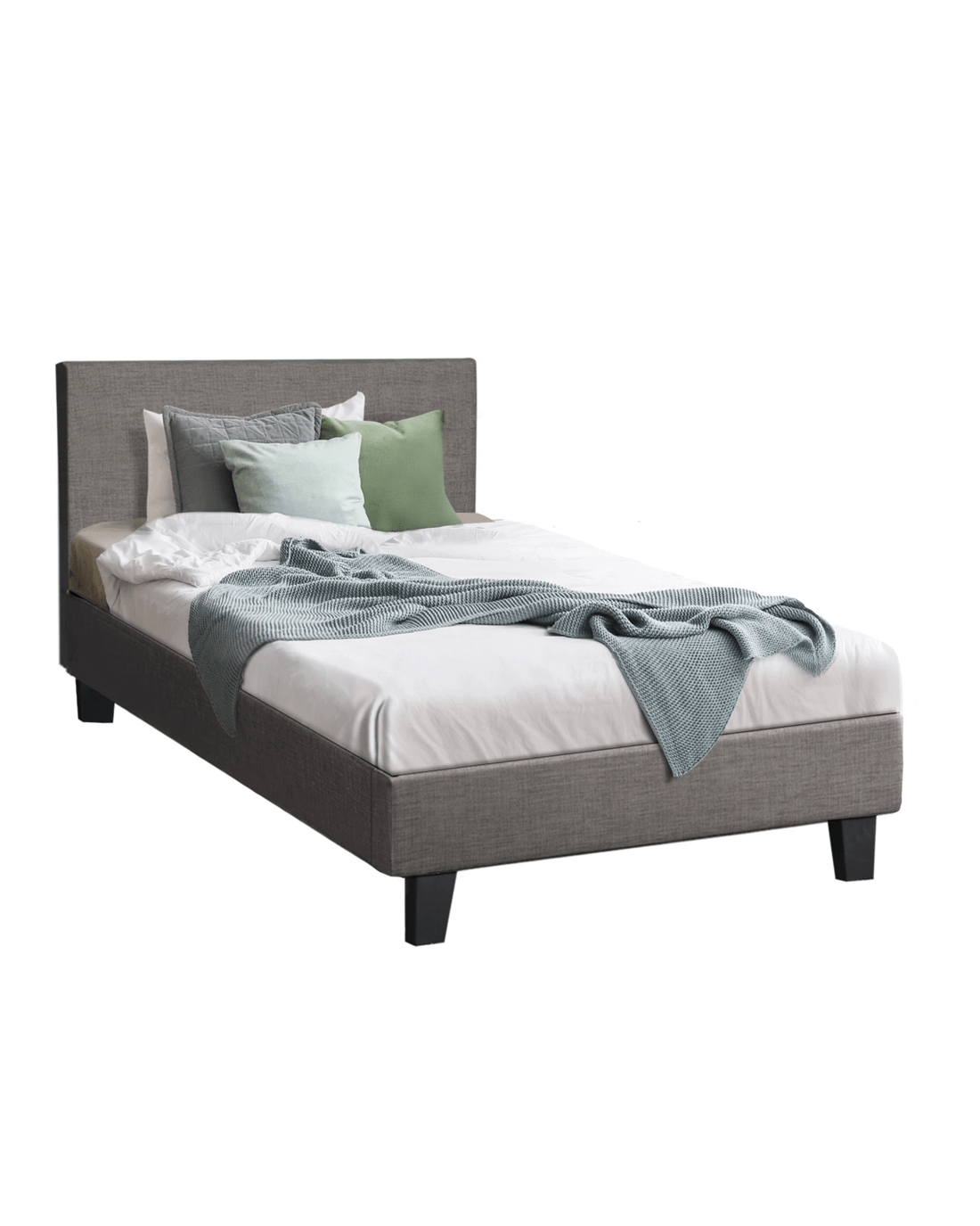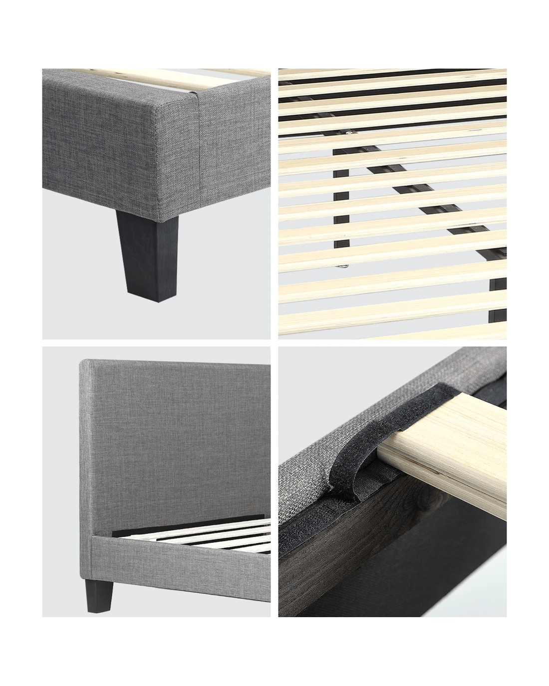 Sold by Kamprad's Oikos 1943Oikiture Bed Frame Single Size Wooden Slats Fabric - Grey