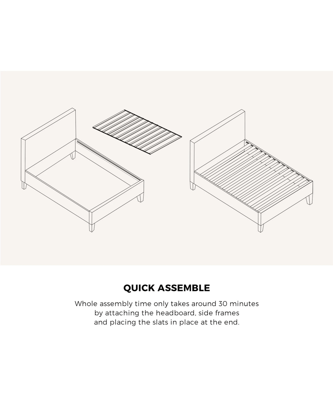 Create a calming bedroom with our Vank bed frame. Fitted with solid legs and plywood slats that designed with Velcro to hold it on the platform bed in place, this bed brings you the extra security that you need to get a good sleep throughout the night.