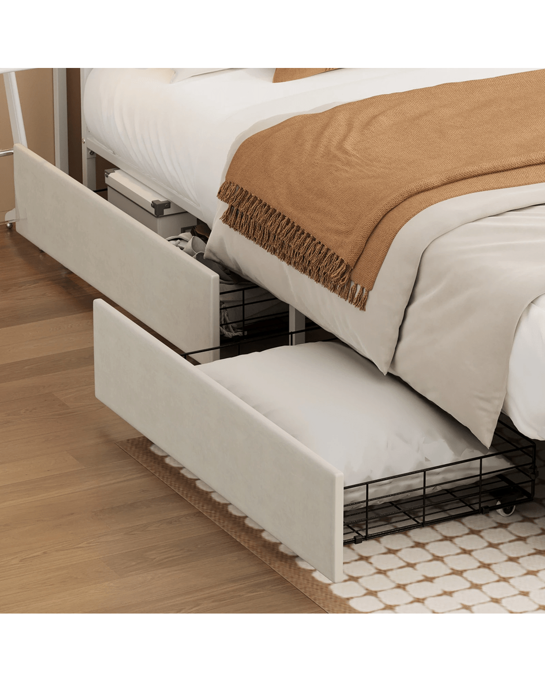 Compatible for use with a variety of beds that has a minimum height clearance of 50cm, the set of 2 or 4 under-bed drawers easily slides beneath the bed via its smooth castors. Hidden and kept away, neat and tidy.