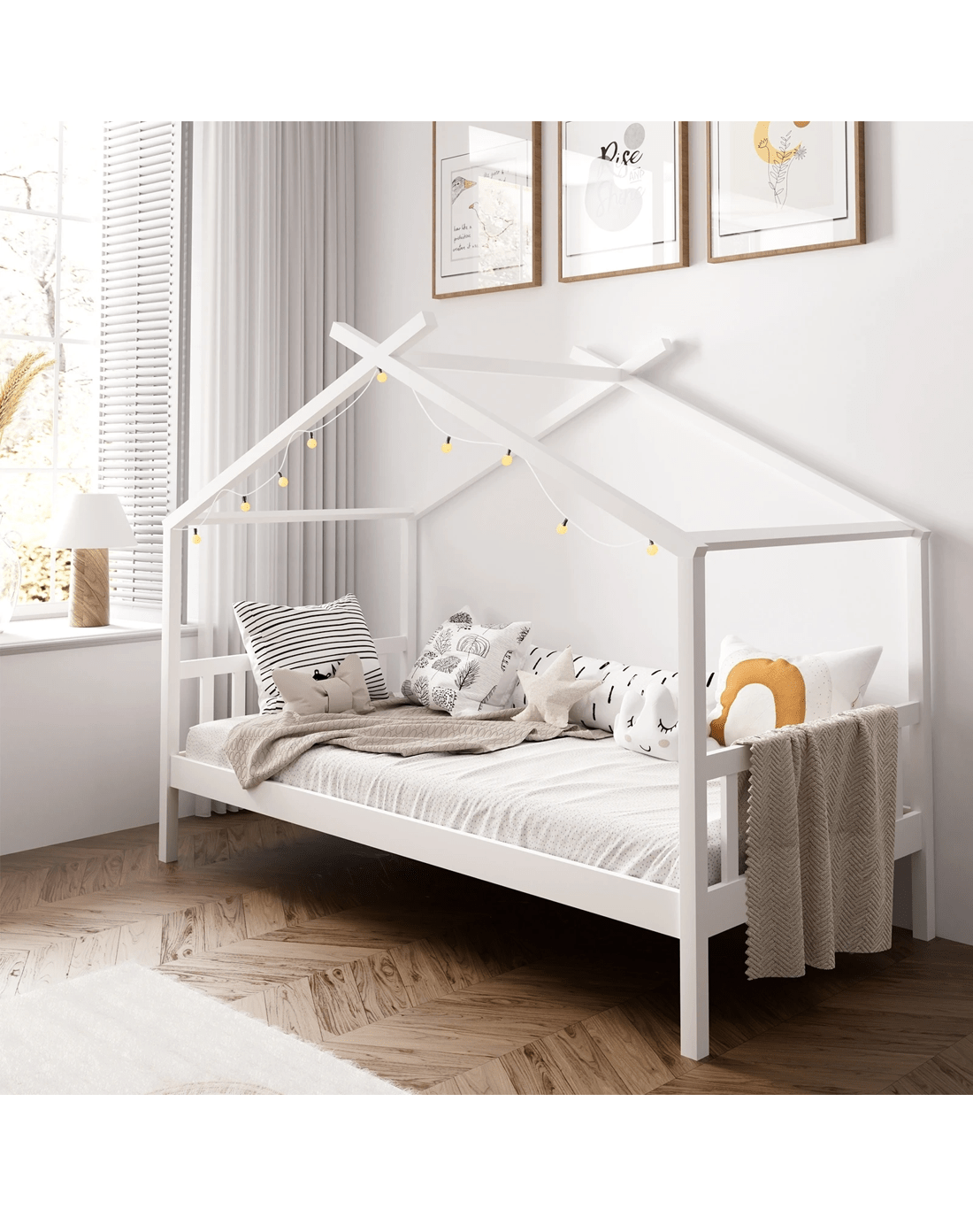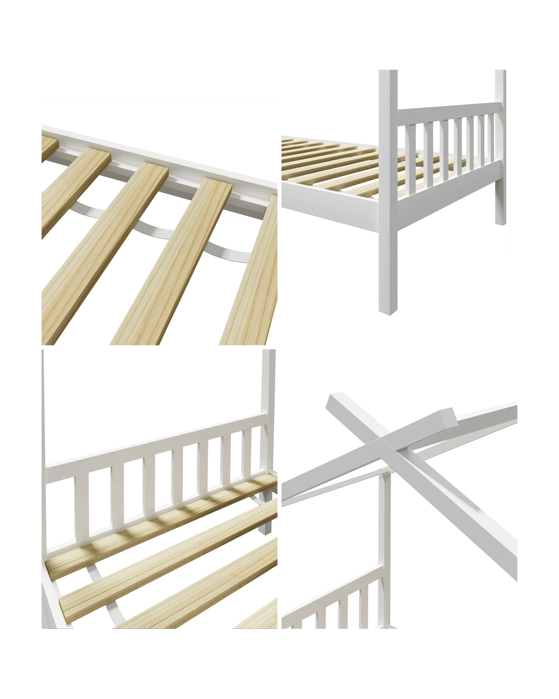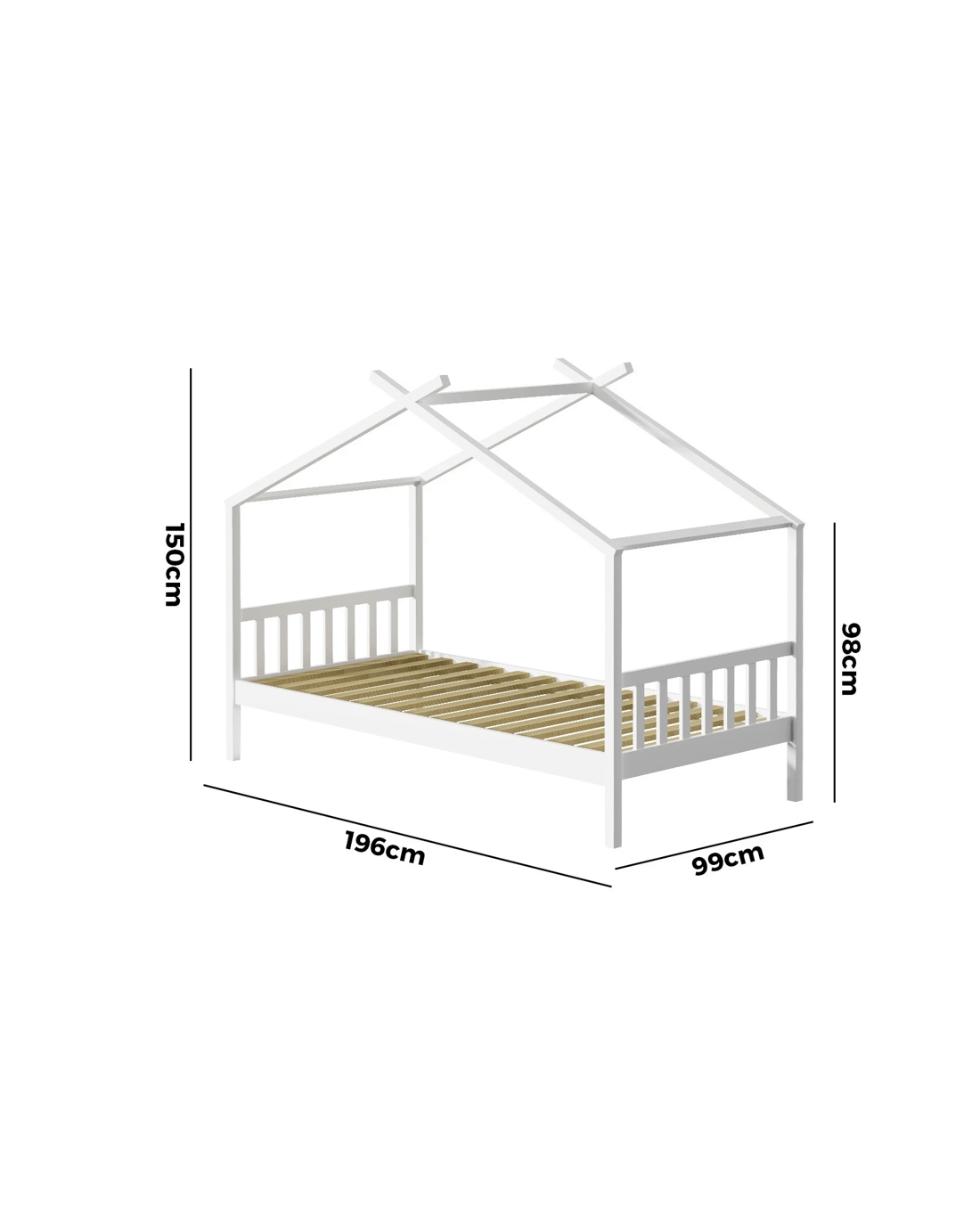 Sold by Kamprad's Oikos 1943Oikiture Bed Frame Wooden Base Kids Single Timber House Beds - White