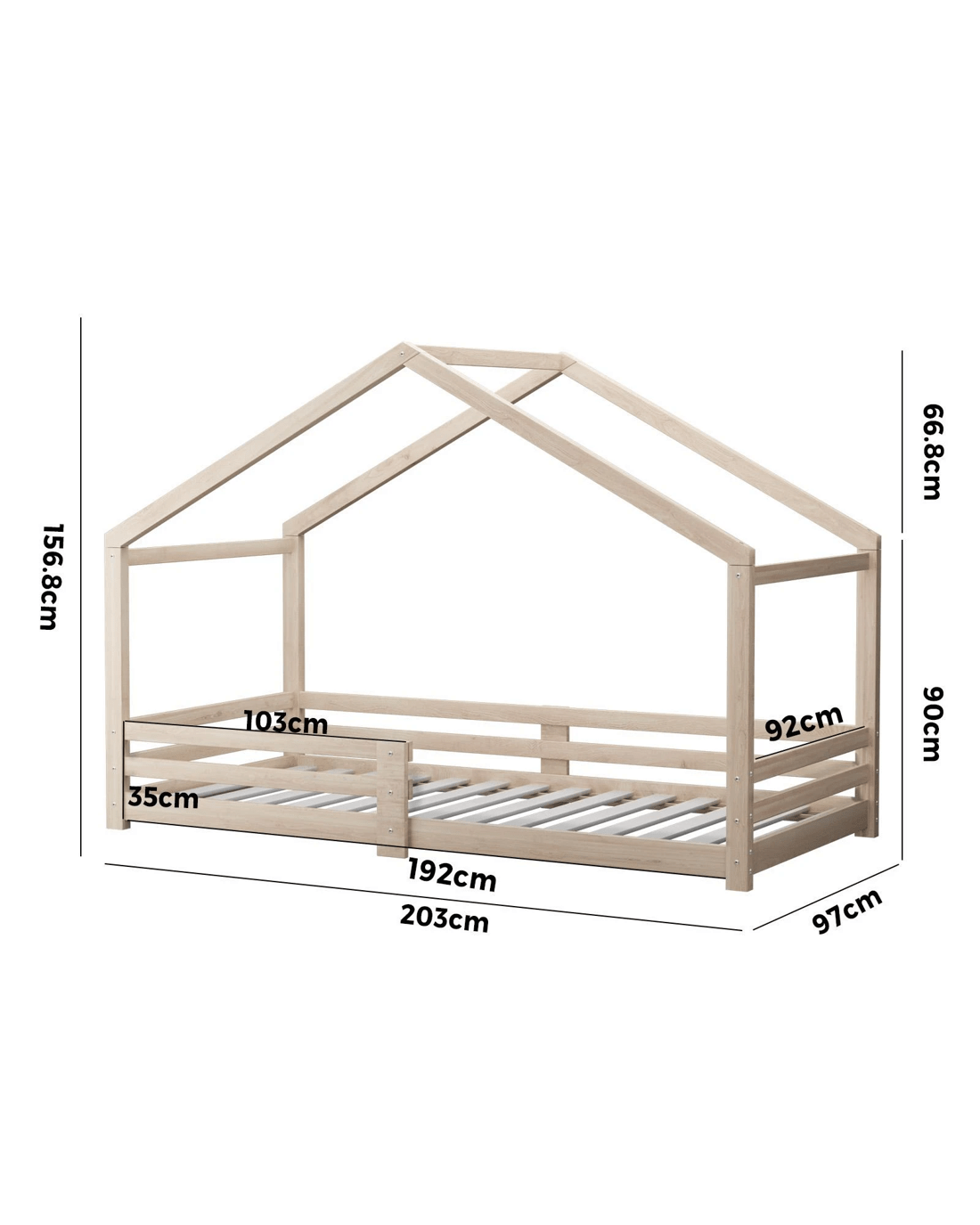 Oikiture Bed Frame Wooden Single Size Timber House Frame - Natural